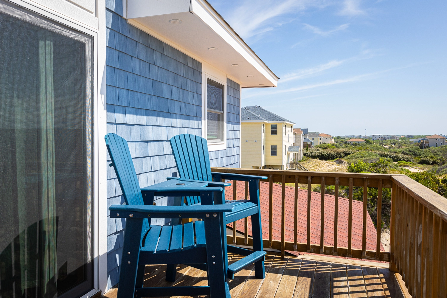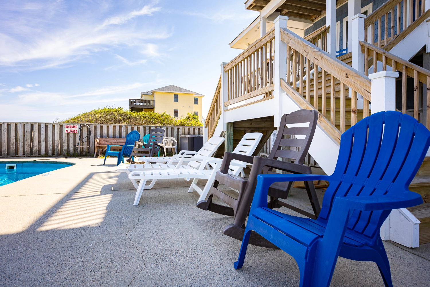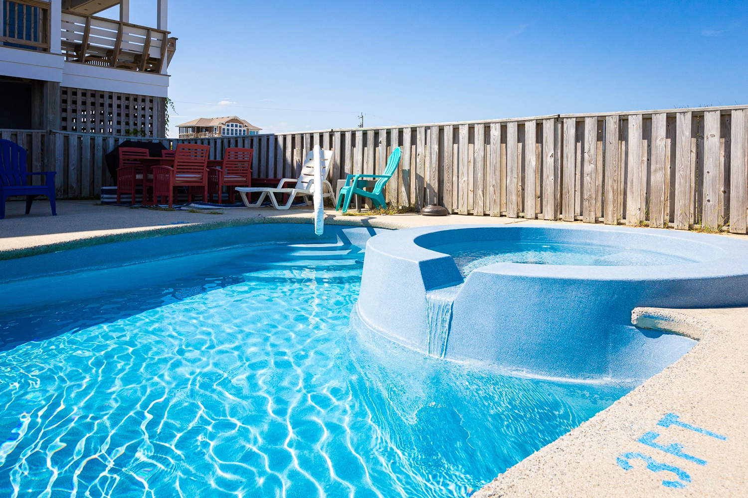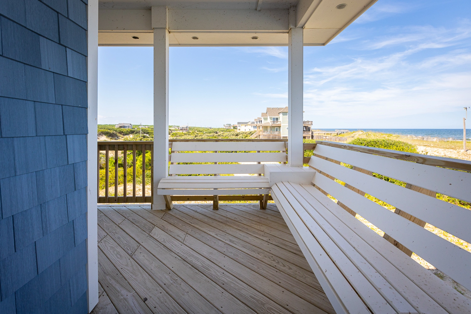 "Spectacular oceanfront views from the unique “ship watch” area of the upper floor. Nicely equipped, new refrigerator. Spacious bedrooms and second kitchenette on first level that provides additional cooler capacity. Wild horses are a daily visitor. Location near NC/VA border means sparsely occupied beach great for setting up your “ beach camp” to enjoy before..or after..your dip in the private pool. Definitely requires 4x4 vehicle."