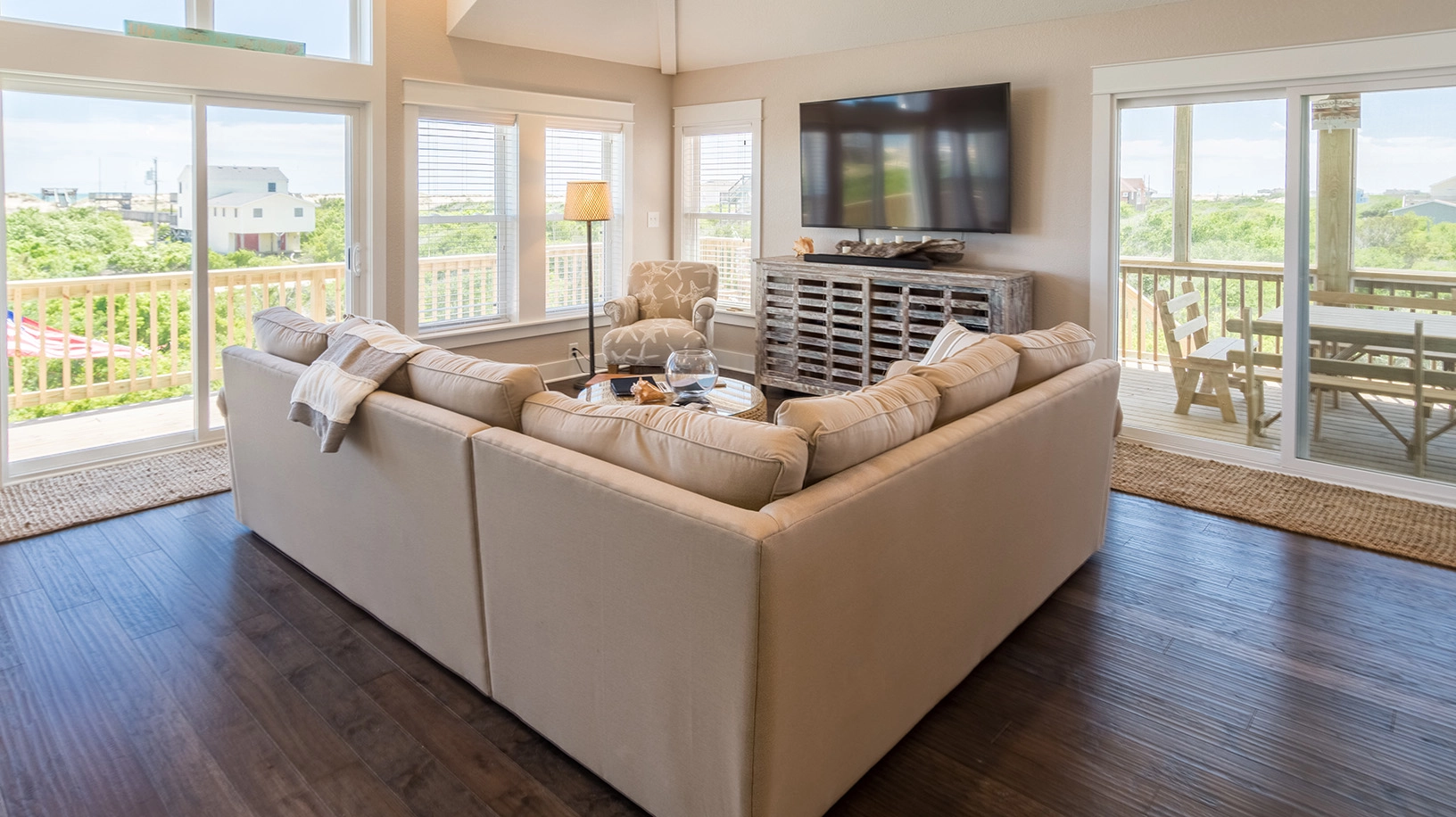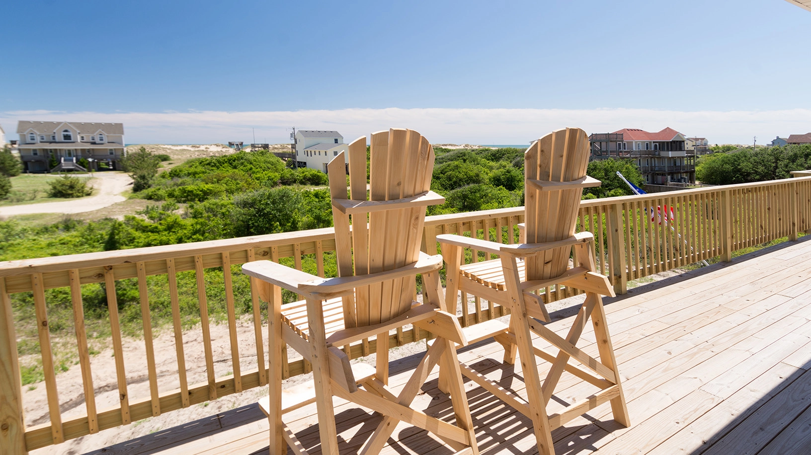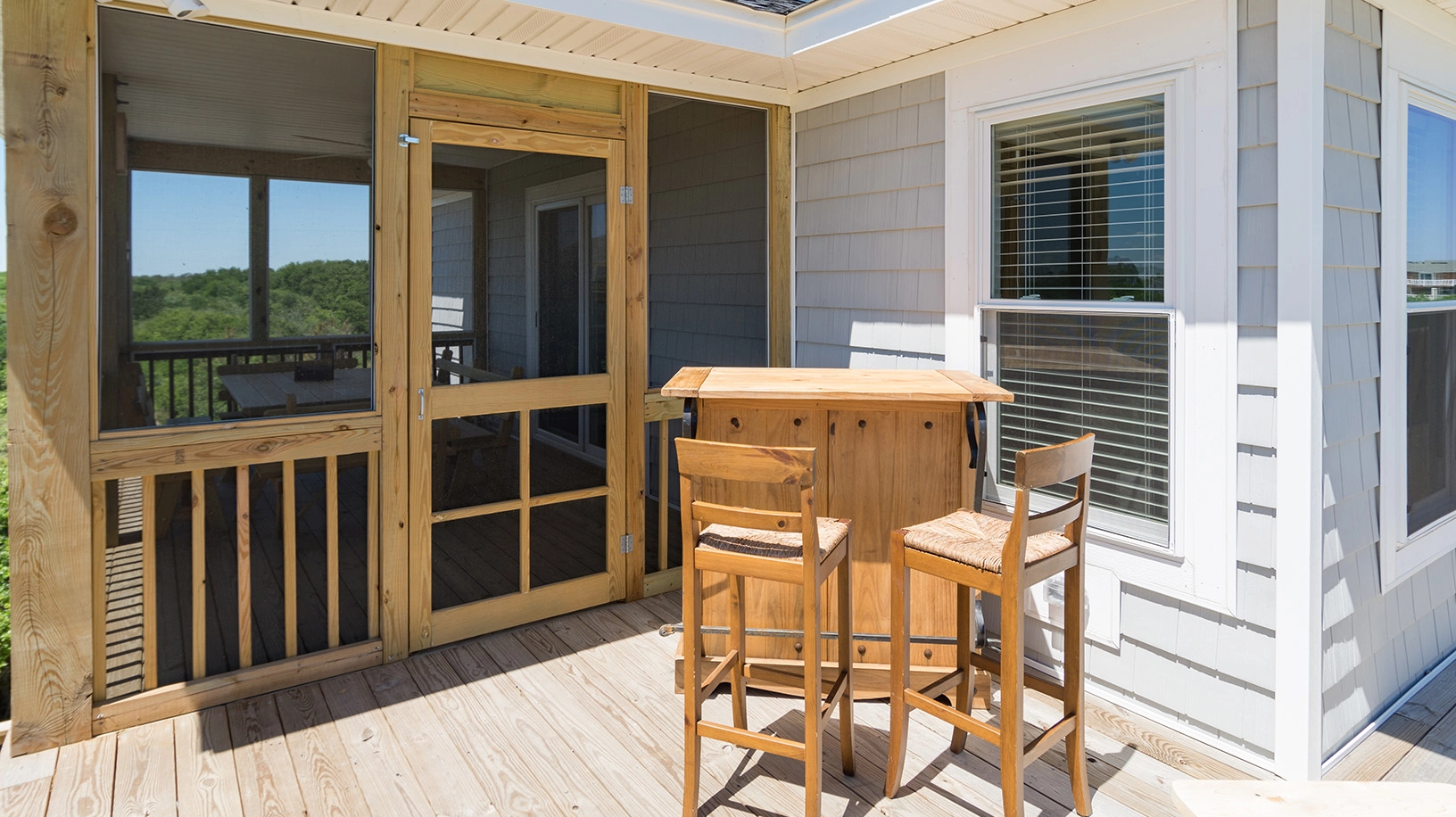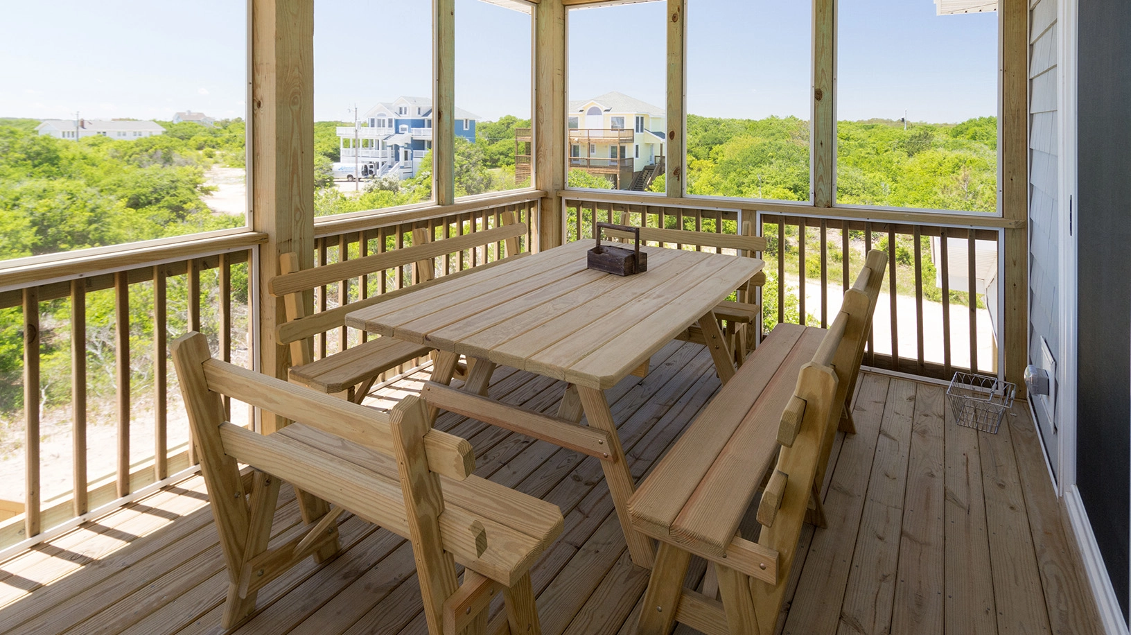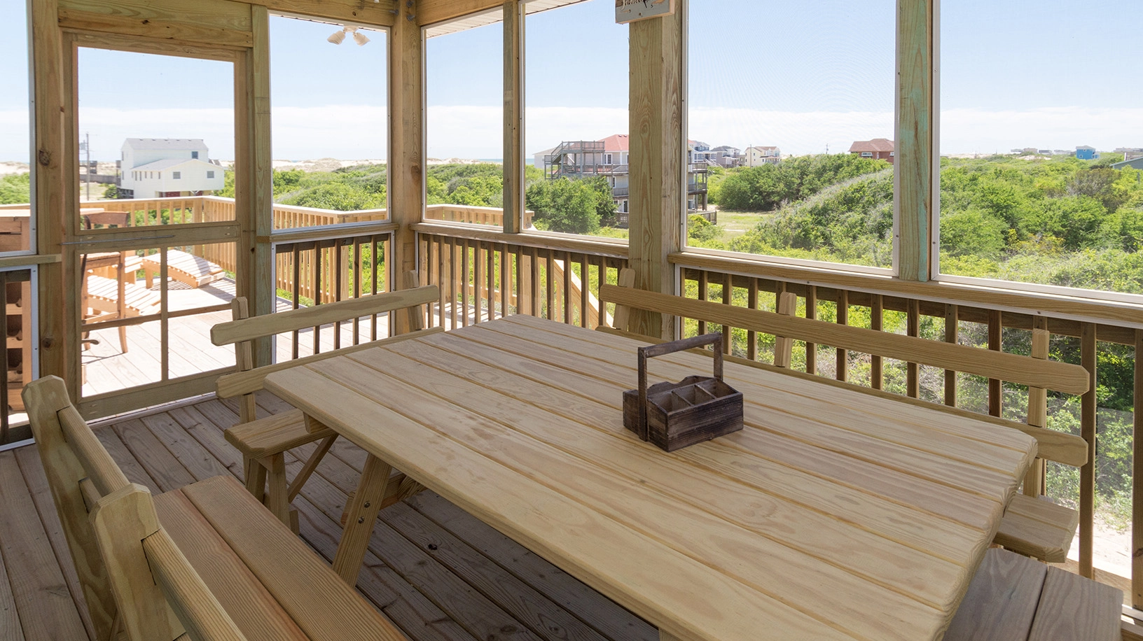 "Great home! Stocked kitchen, clean, good location. Minimal view of the ocean. Screens on screened in porch ripped (reported to Twiddy). Overall great home!"