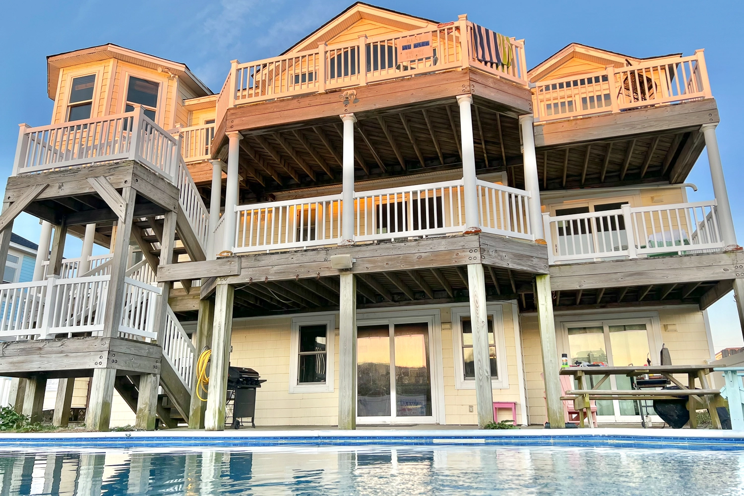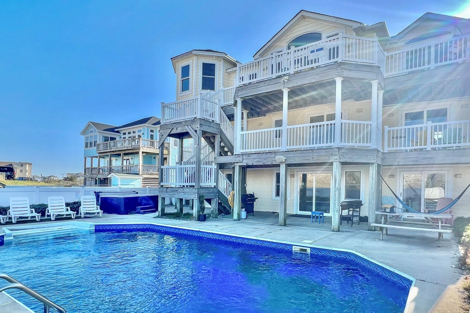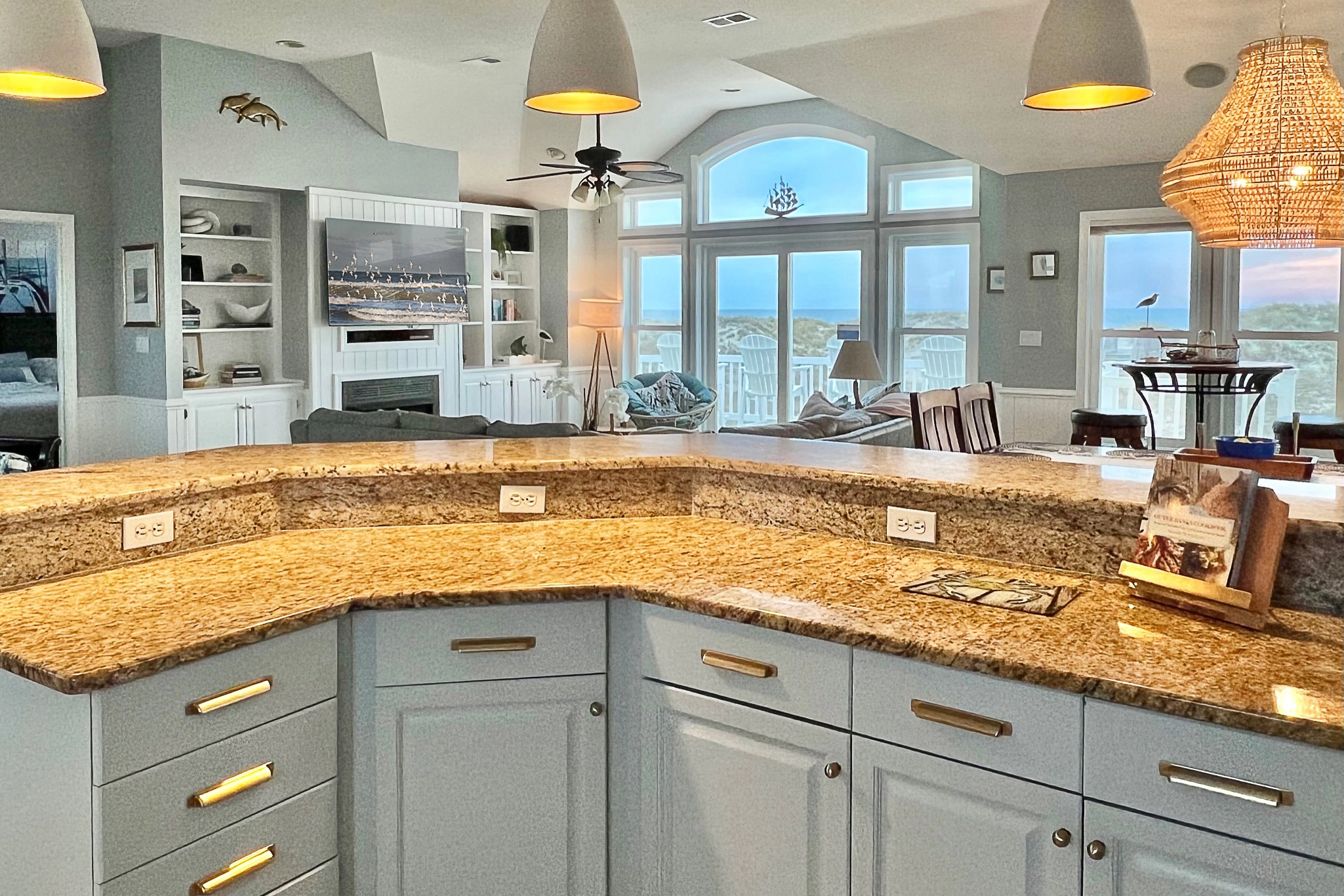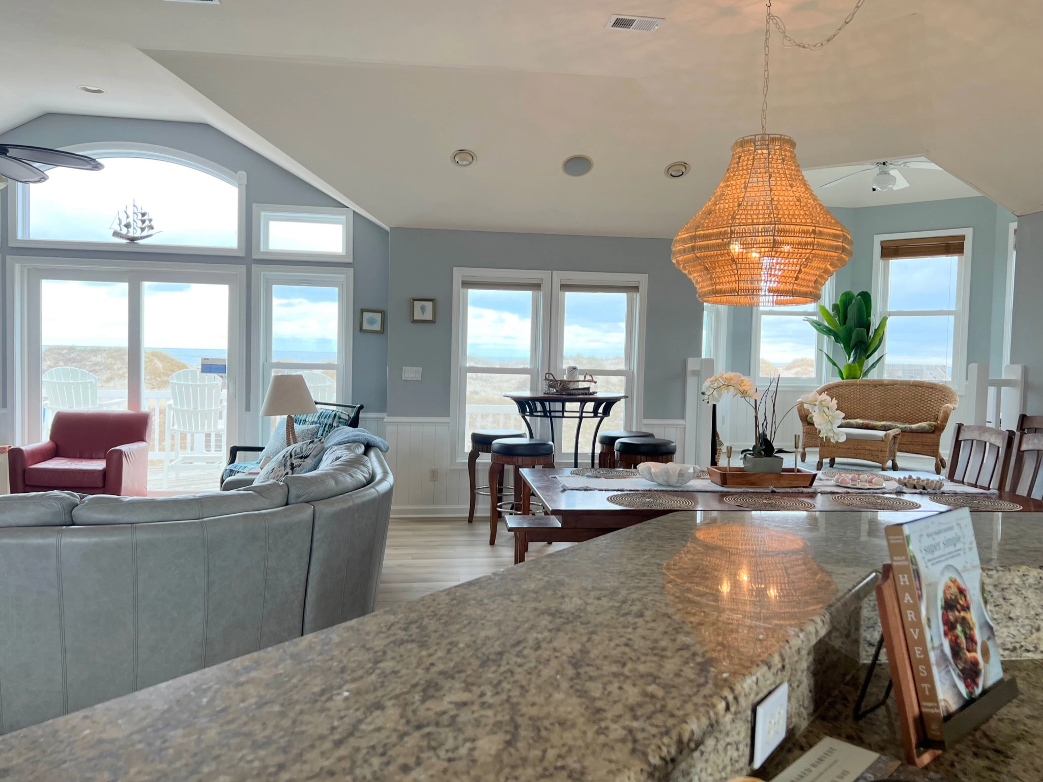 "the Ocean Front view is outstanding, the Kitchen is very nicely laid out to accomadate several people in the kitchen at one time - the Blackstone was a very nice amenity - we used it for most of our meals to cook on. Multiple TV's to satisfy all the kids that we had with us. Overall a very lovely home."