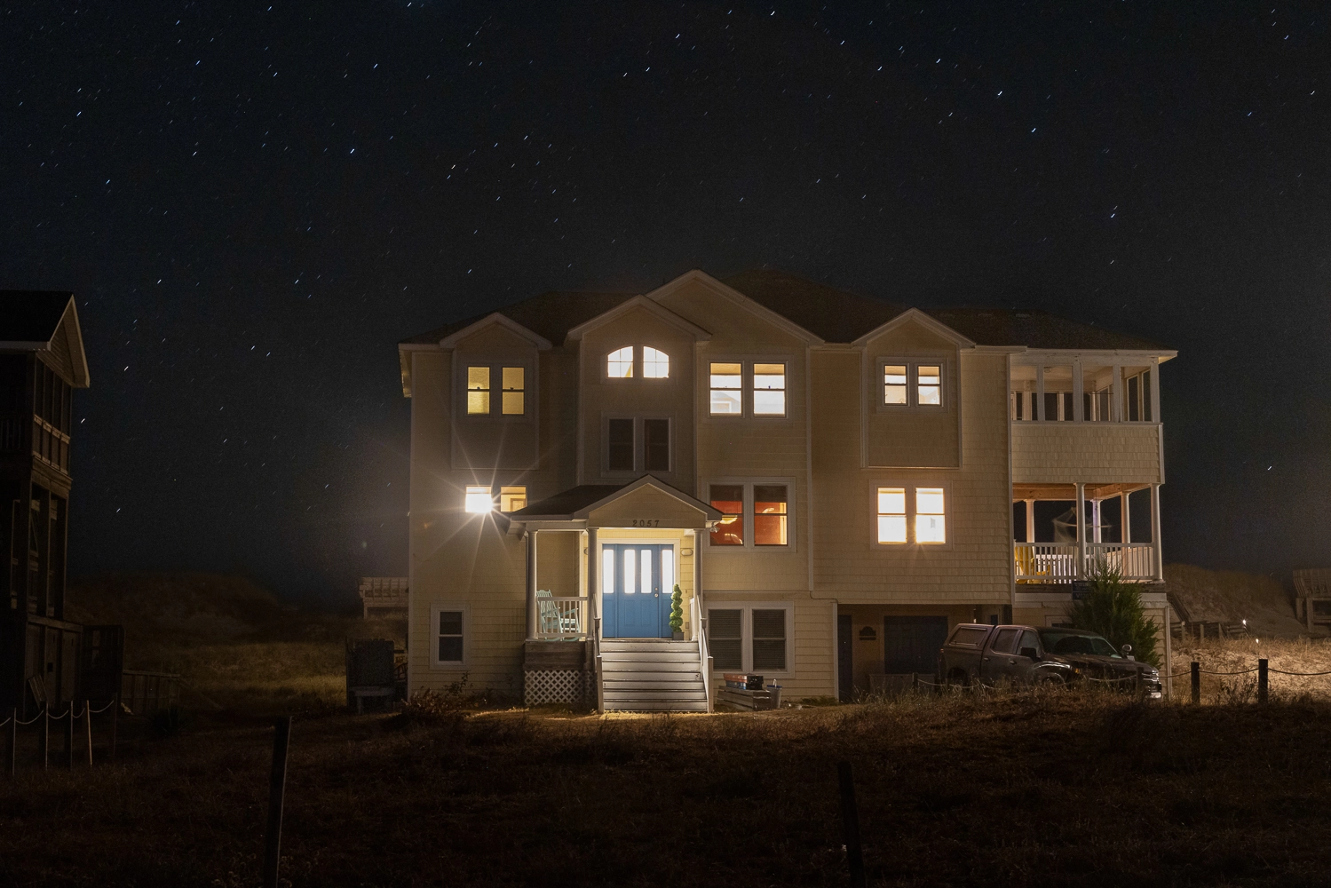 "We thought the home was very well appointed, especially in the area of kitchen supplies. The location on the beach was also quite appealing with lots of wide space in which to spread out and set up our daily camp. We wish we had cracked the code on being able to turn the dune deck lights on and off at will, but they seemed to have a mind of their own. All in all a great visit and a nice house that many in our party are considering coming back to."