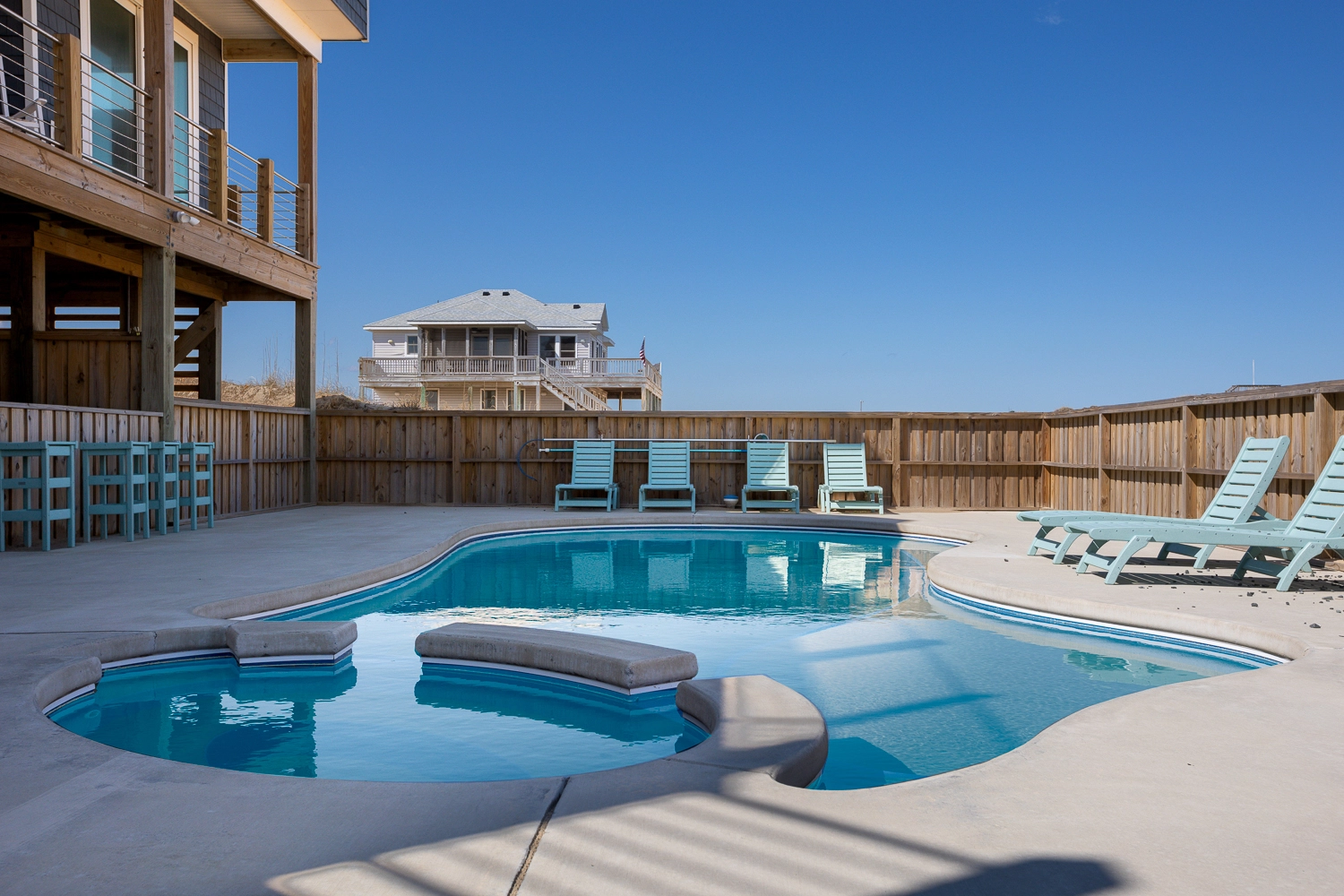 "The location of the home is perfect, easily see the beach from the decks, and it's a quick walk to the water if you don't want to drive down! Beds were comfortable, kitchen had everything we needed during our time there, and there were plenty of towels and linens for everyone. Pool was big enough for us all, and was in great shape during our time, as well as the hot tub, which was clean and in perfect working order."