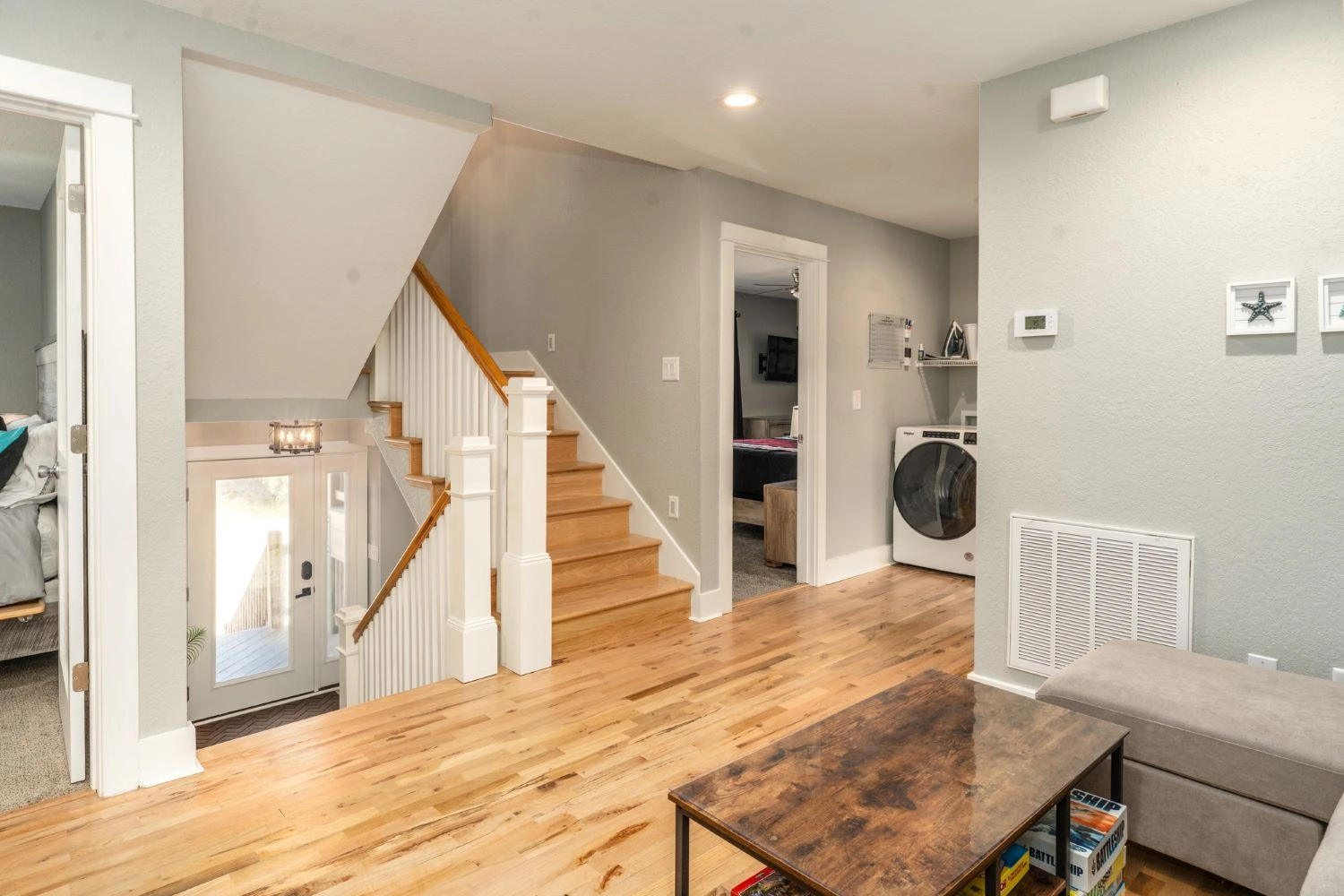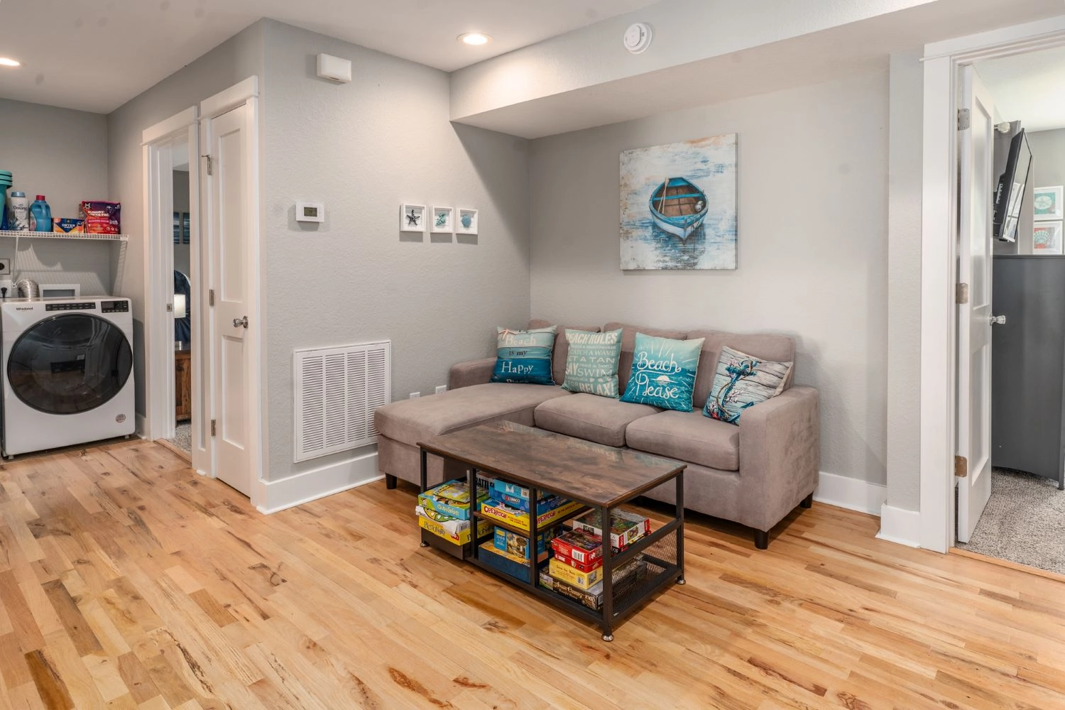 Sitting area; laundry.