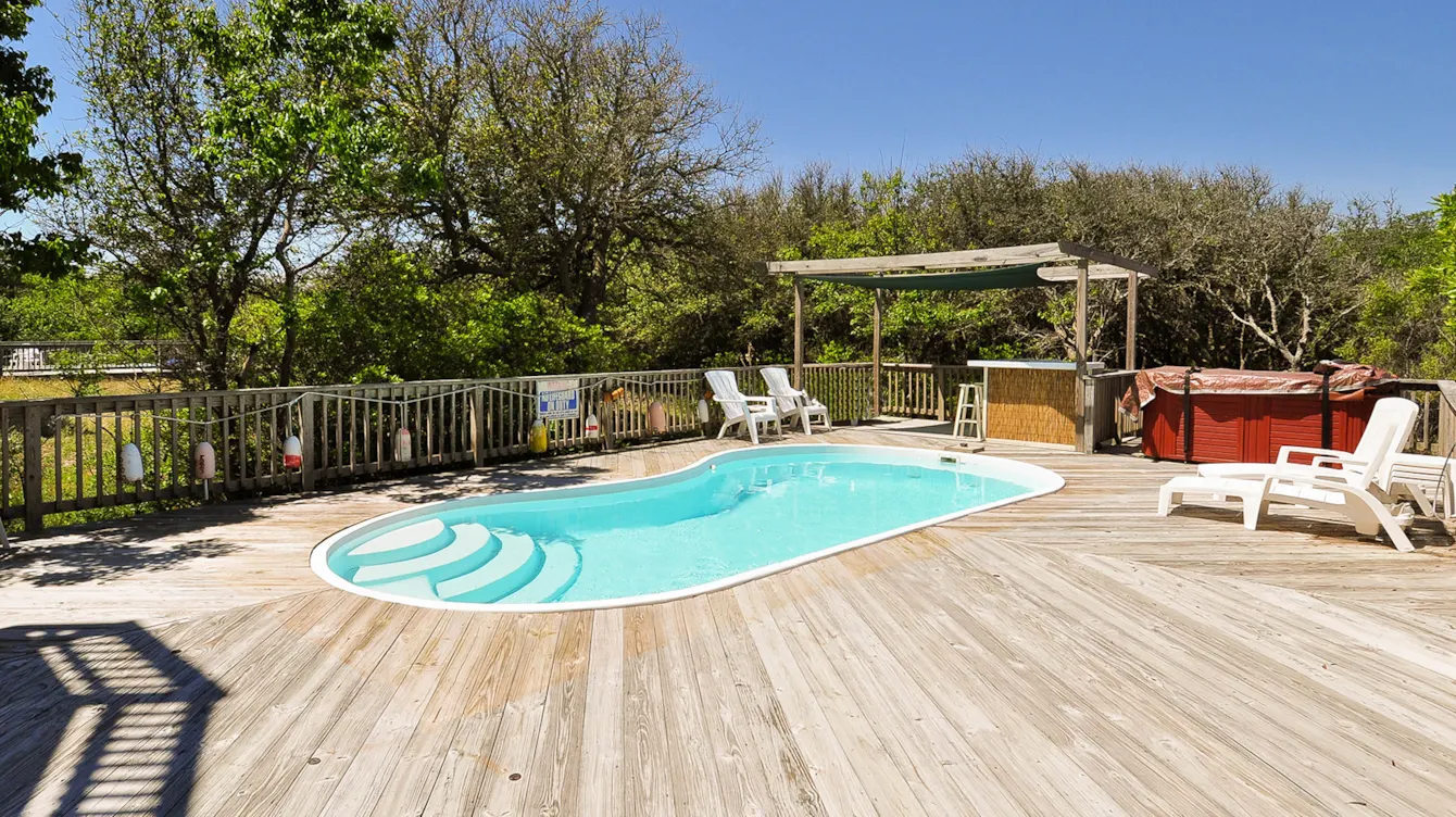 "This was a great home for our needs. We loved the location. A long drive north but no crowds on the beach on the busiest week of the year. If only you could drive north through Virginia to leave the island would save hours of drive time. The outdoor deck chairs made of poly wood were wonderful. The kitchen was stocked well. The pool was small and the pool cleaning company never returned midweek as promised. We loved our stay."