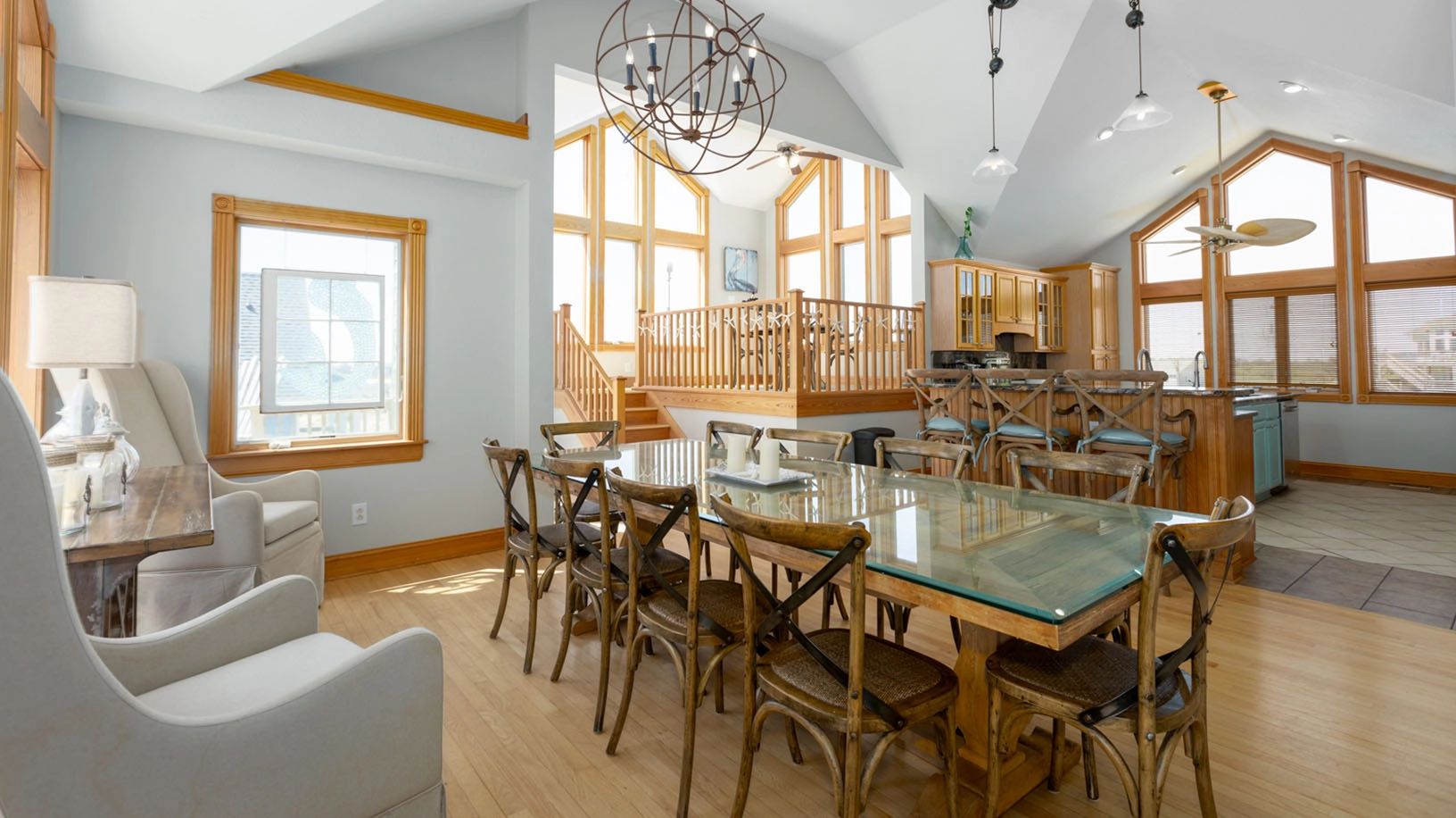 Great room; kitchen; dining area; loft.