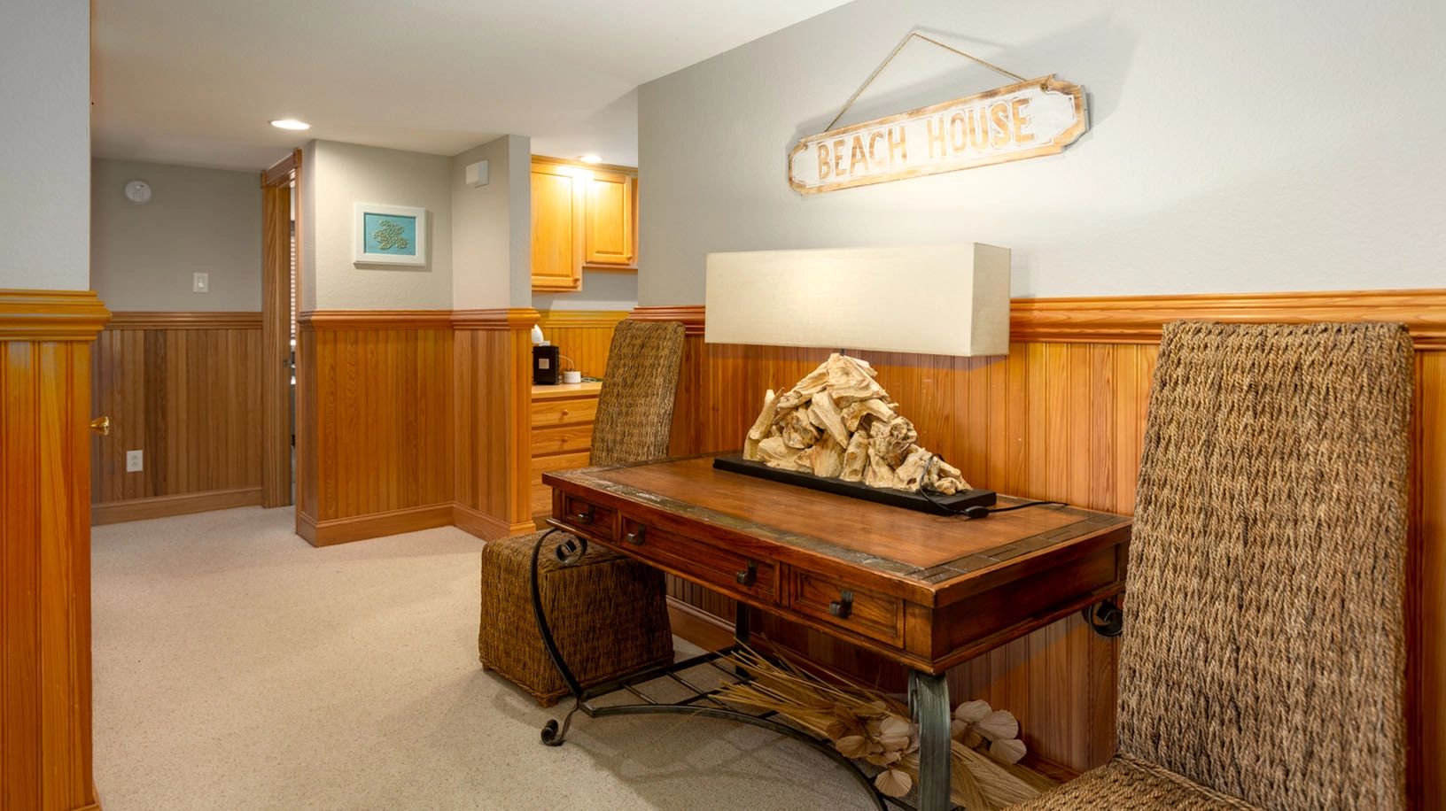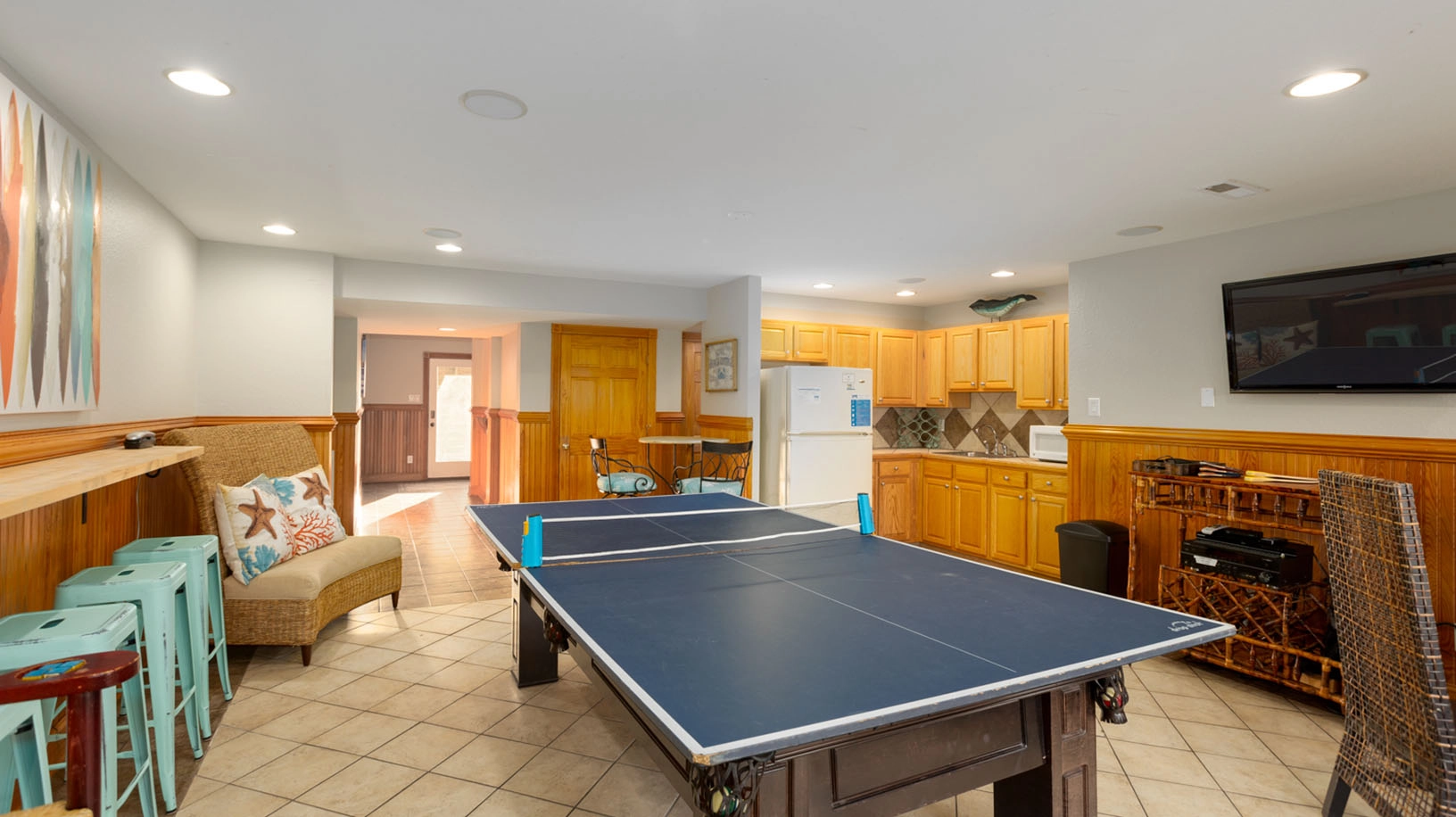 Rec room with pool table and wet bar; laundry.