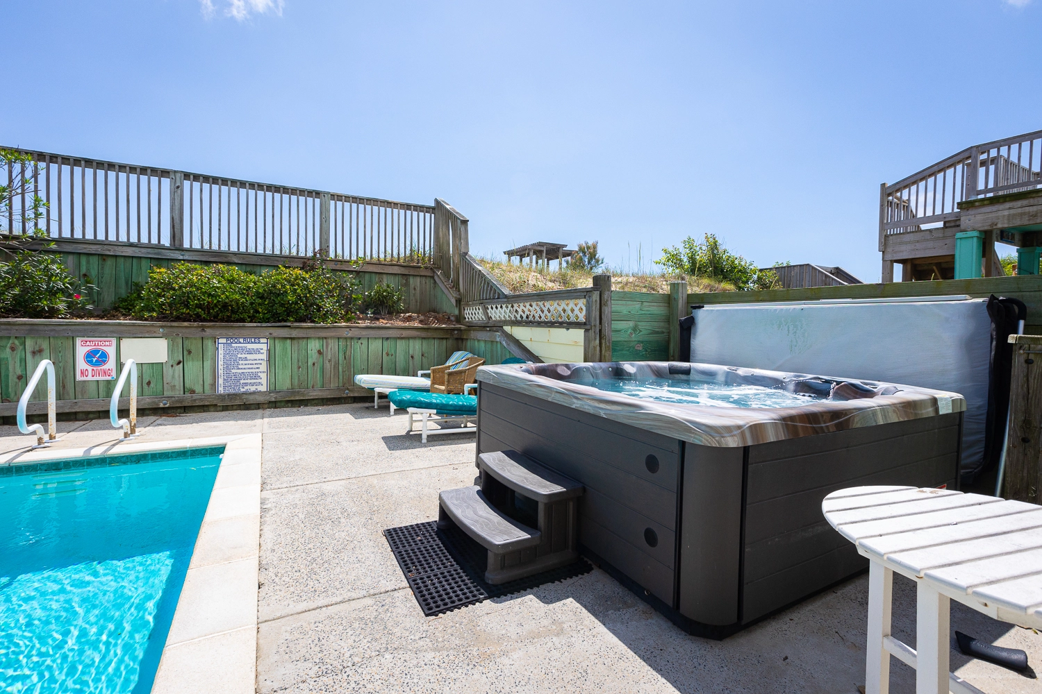 "I really liked this home. The rooms were a great size. The pool and hot tub were nice. The board walk was great especially for the older people. It was a great view and close to the ocean. Communication with the owner was good. This was a great vacation!!!"