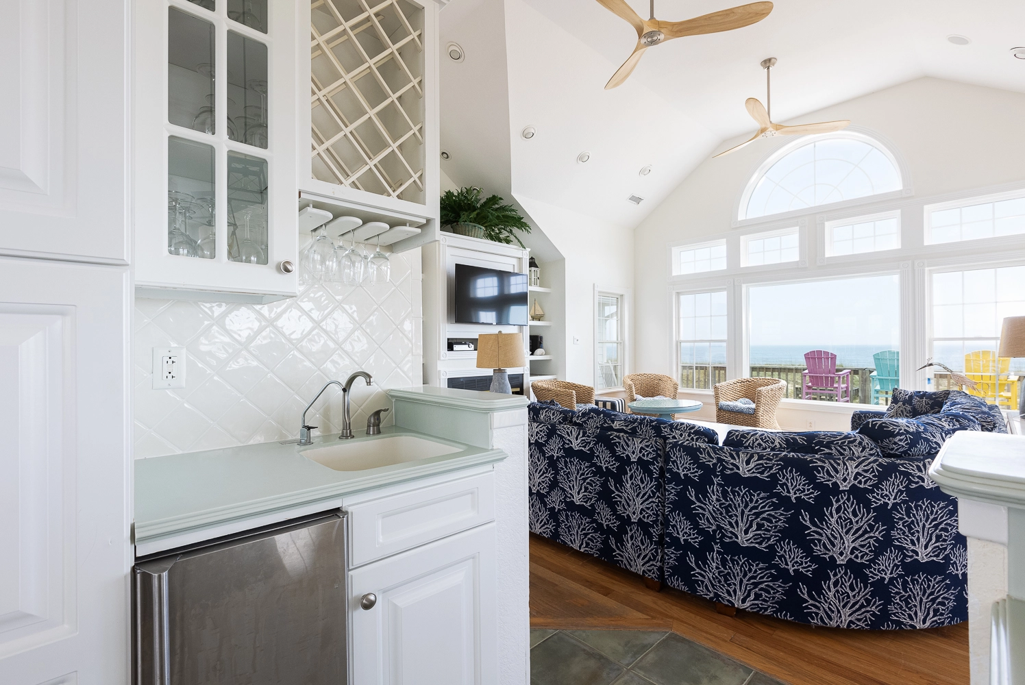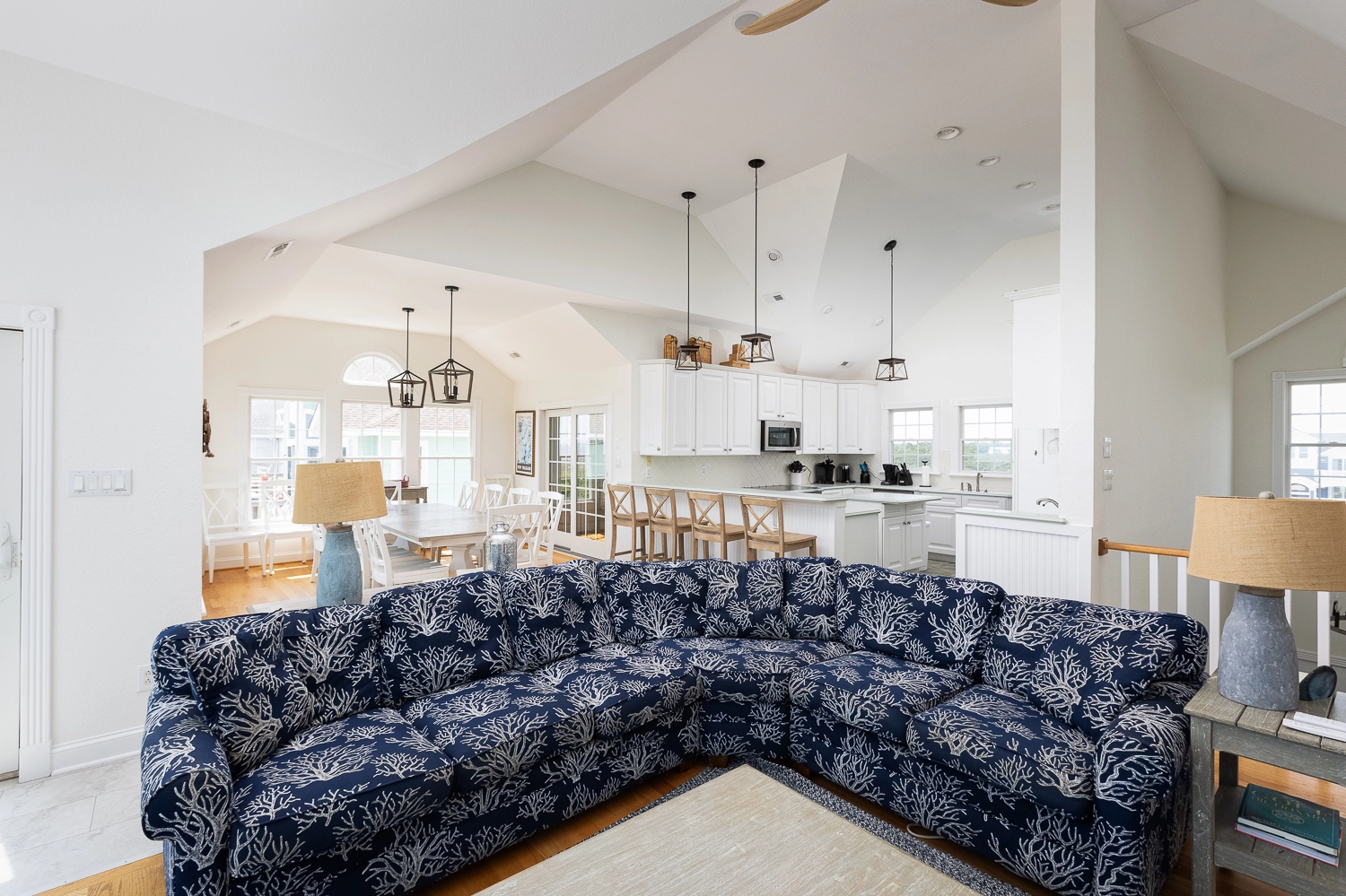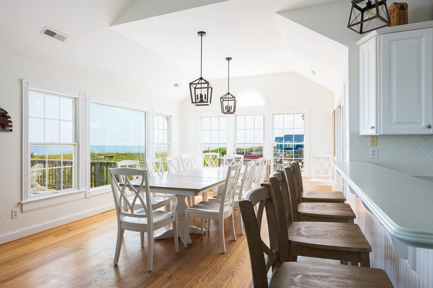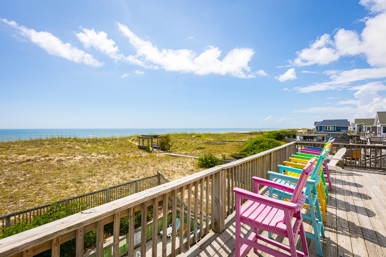 "Phenomenal view of the ocean and sunsets on the sound side! Lots of room in the kitchen cabinets for everything we needed. Easy access to the beach over the dunes. Pool area (pool wasn't open) was relaxing and always love the hot tub after late night fishing. Home is well appointed and very comfortable. Deck views provide lovely sunrises."