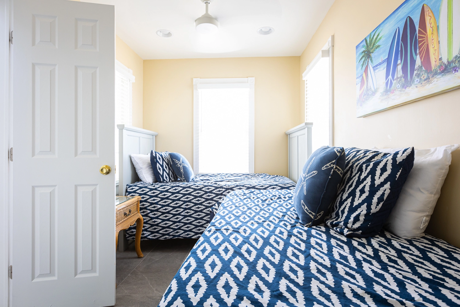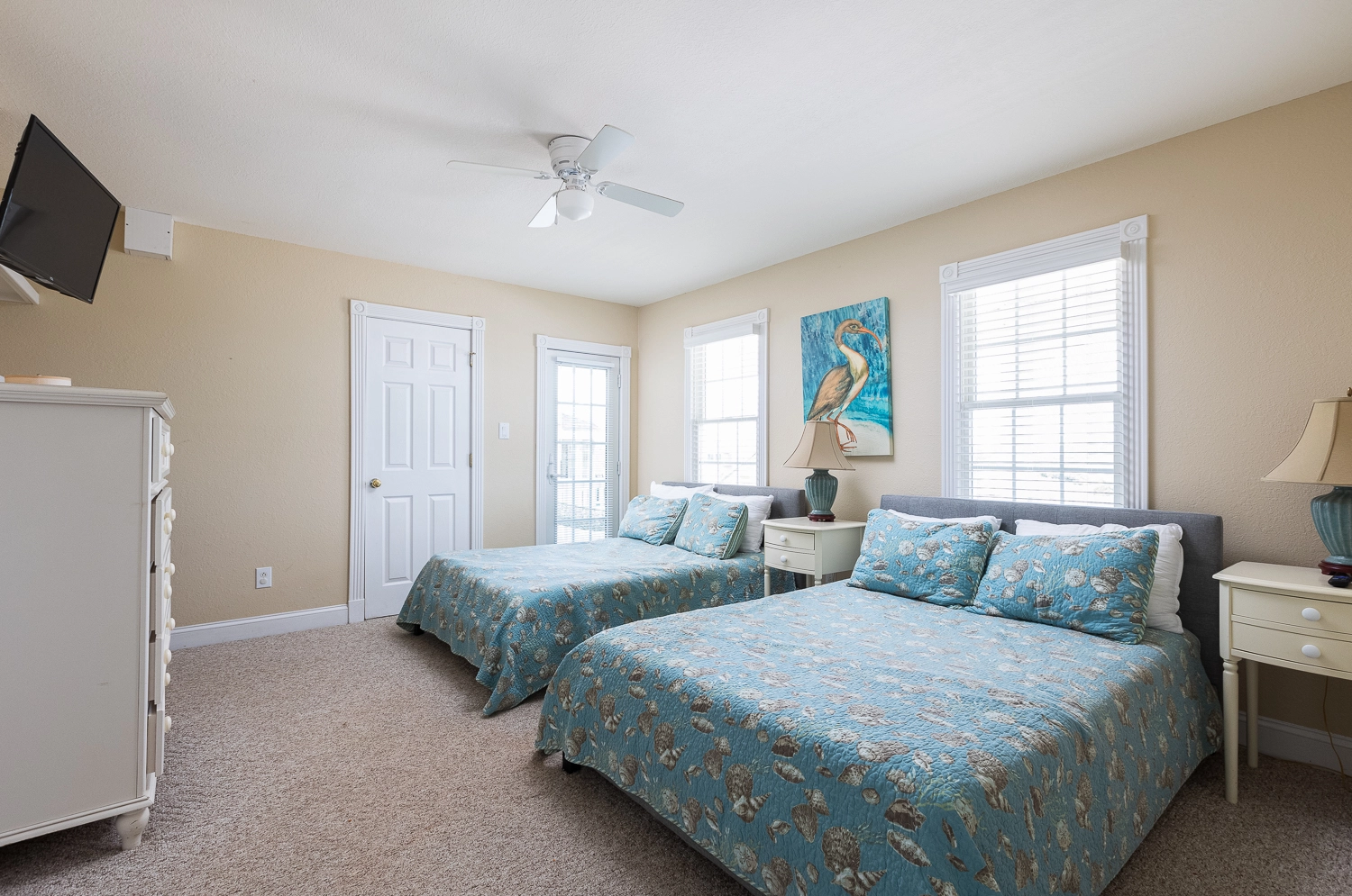 2 Doubles, Shared bath with room 2, Standing shower, Deck access