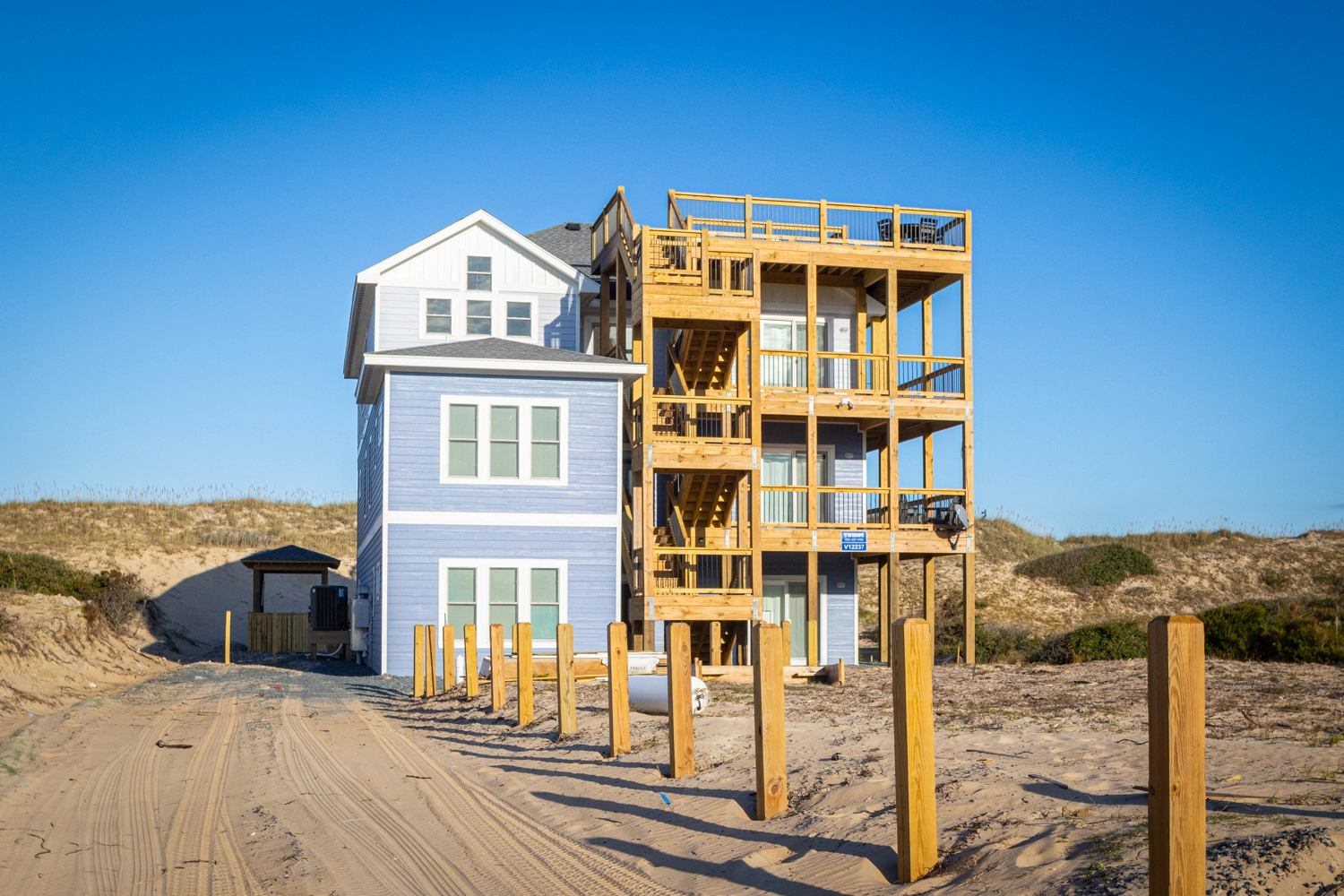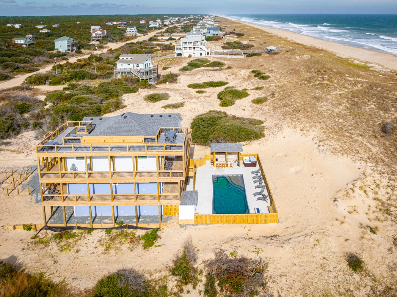 "Twelve bedrooms and 12 bathrooms provided plenty of room for our group. The pool, hot tub, theater room, pool table, and poker table were extras that the kids got a lot of use out of. The ice maker was very useful, as well as multiple refrigerators, dishwashers and ovens. The house was extremely clean. The views from the rooftop were extraordinary! The area was quiet, without a lot of traffic because we were so far North. And driving on the beach was a bonus. We vacation with our kids and grandkids every other year, and we will definitely book through Twiddy again. We have traveled to numerous beaches over the years, but I think we found our forever beach. I would say our forever house, but I suspect our family will be growing in the next two years, as some of our granddaughters may be married by then. But Twiddy offers some larger houses that I already checked out during our stay at Sunset Dune. There are a few things that need some attention. We could not figure out where to turn on the pool lights. The outdoor refrigerator, TV, and fire pit did not work. And although there were plenty of dishes, silverware, pots,etc., there were very few large bowls for serving food."