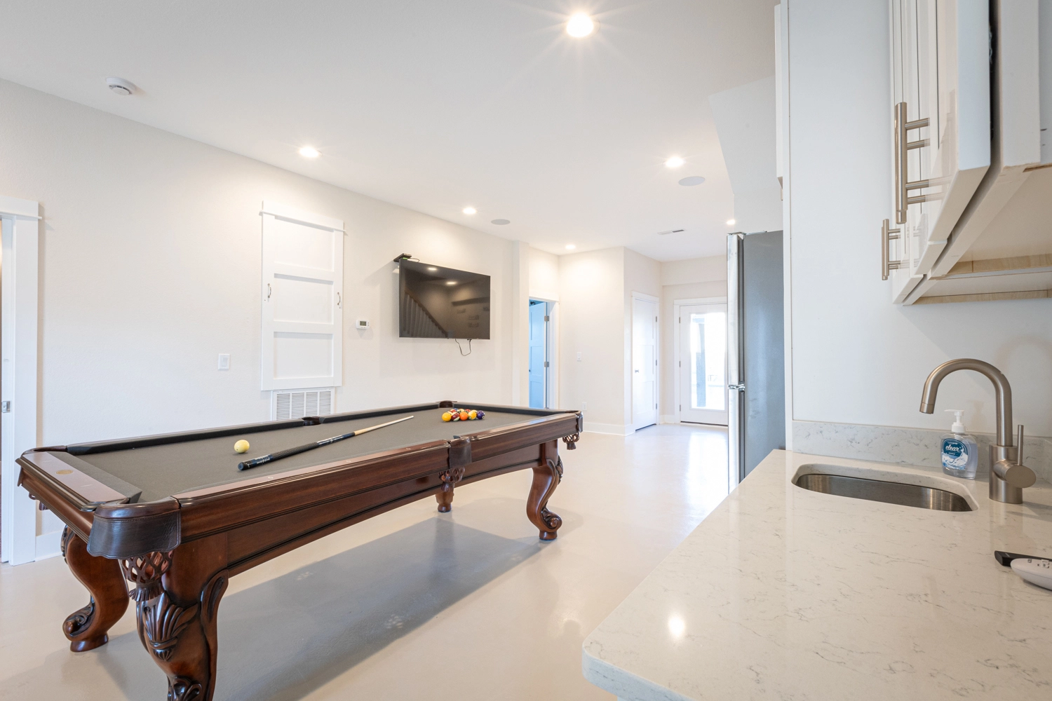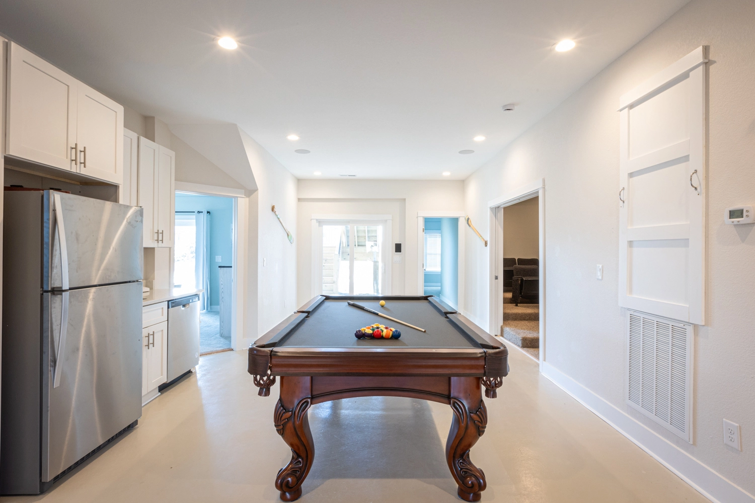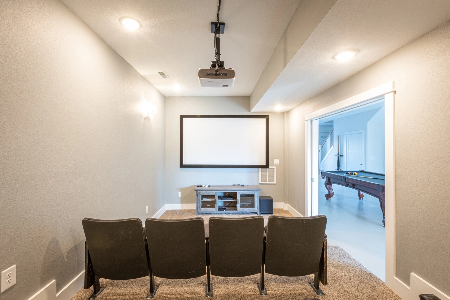 Theater room; rec room with pool table.
