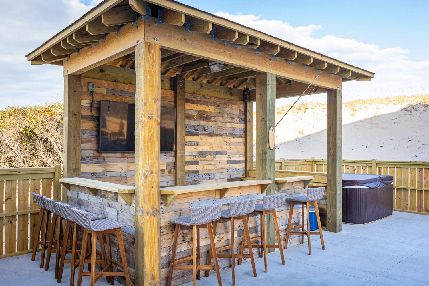 Private pool, poolside cabana, hot tub, outdoor fire pit (available year around), Peloton bike, and Sonos indoor and outdoor speaker system.