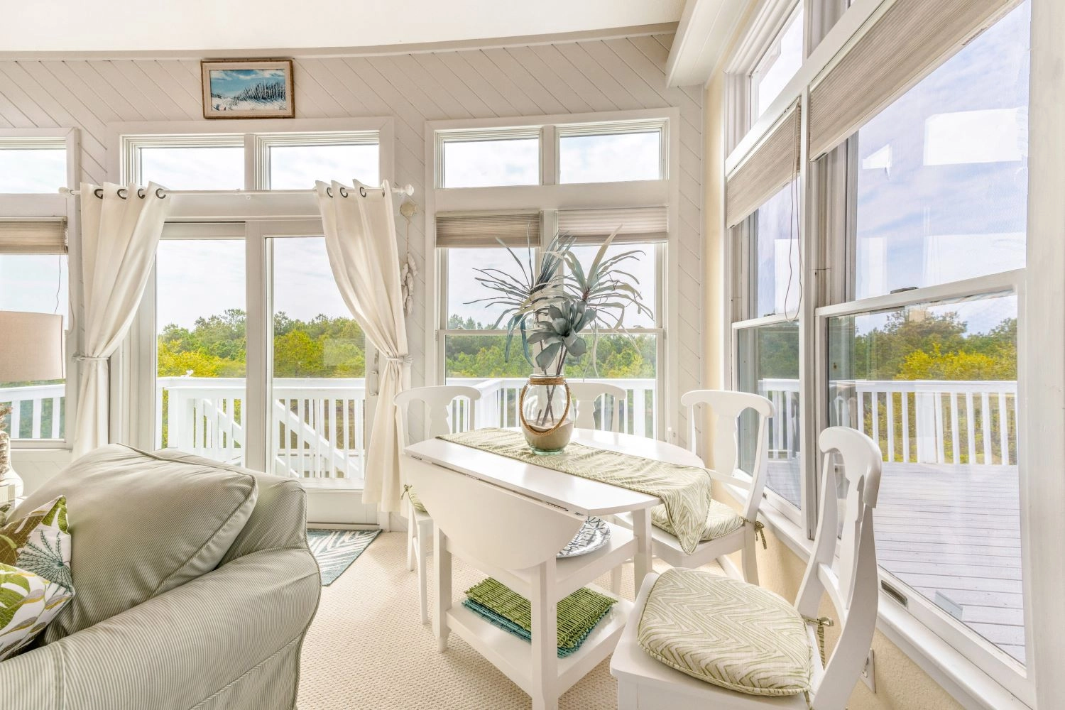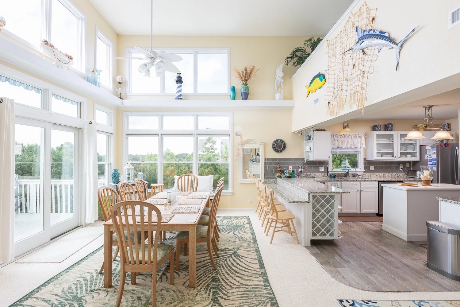 Great room; kitchen; dining area; sun room.