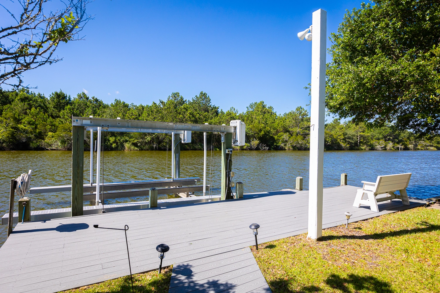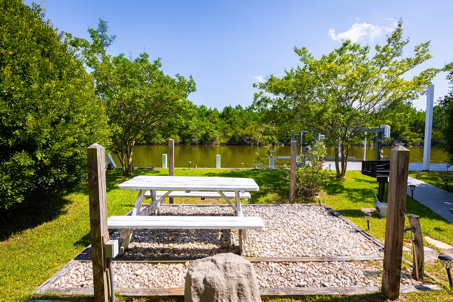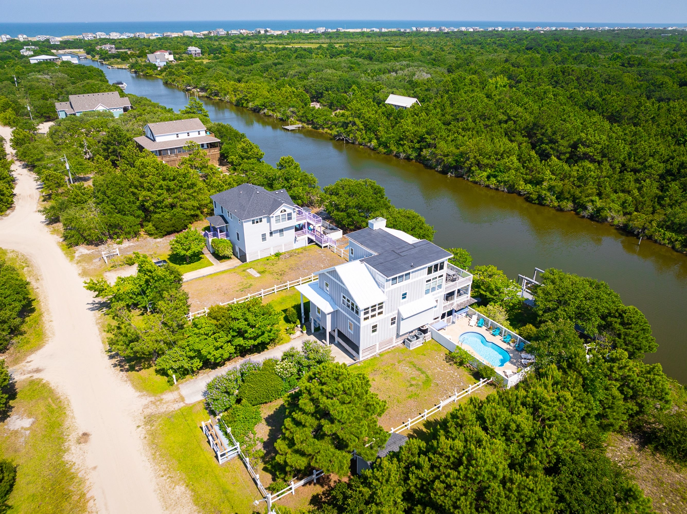 Gated heated private pool, hot tub, tiki bar, kayak launch, 2 kayaks (one 2-seater, one 1-seater), charcoal grill, reverse-osmosis water filtration system.