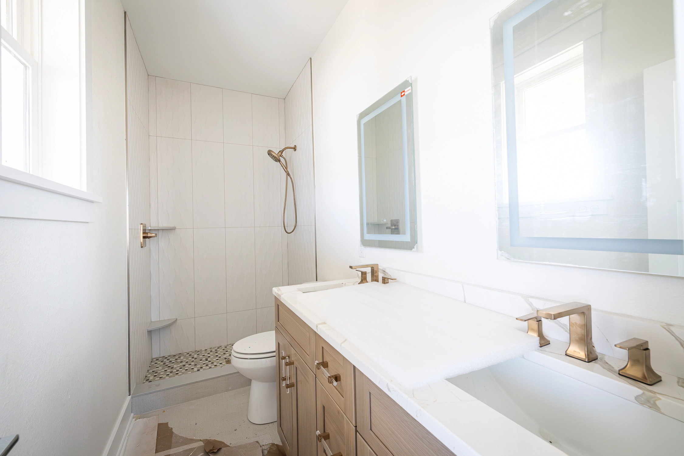 2 Bunk Sets, Semi-private bath, Shower/tub combo