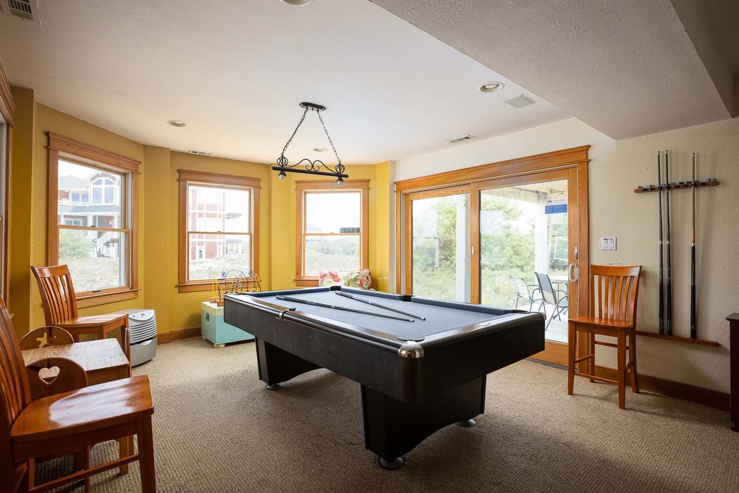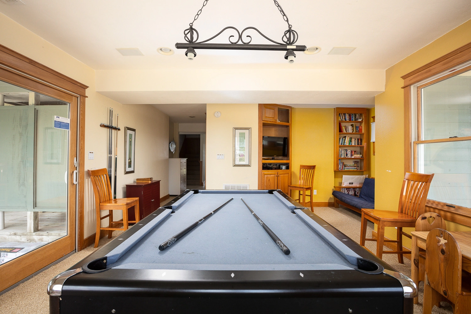 Rec room (Futon) with pool table, air hocky, 2 arcade games and kitchenette. Outside ping pong table.