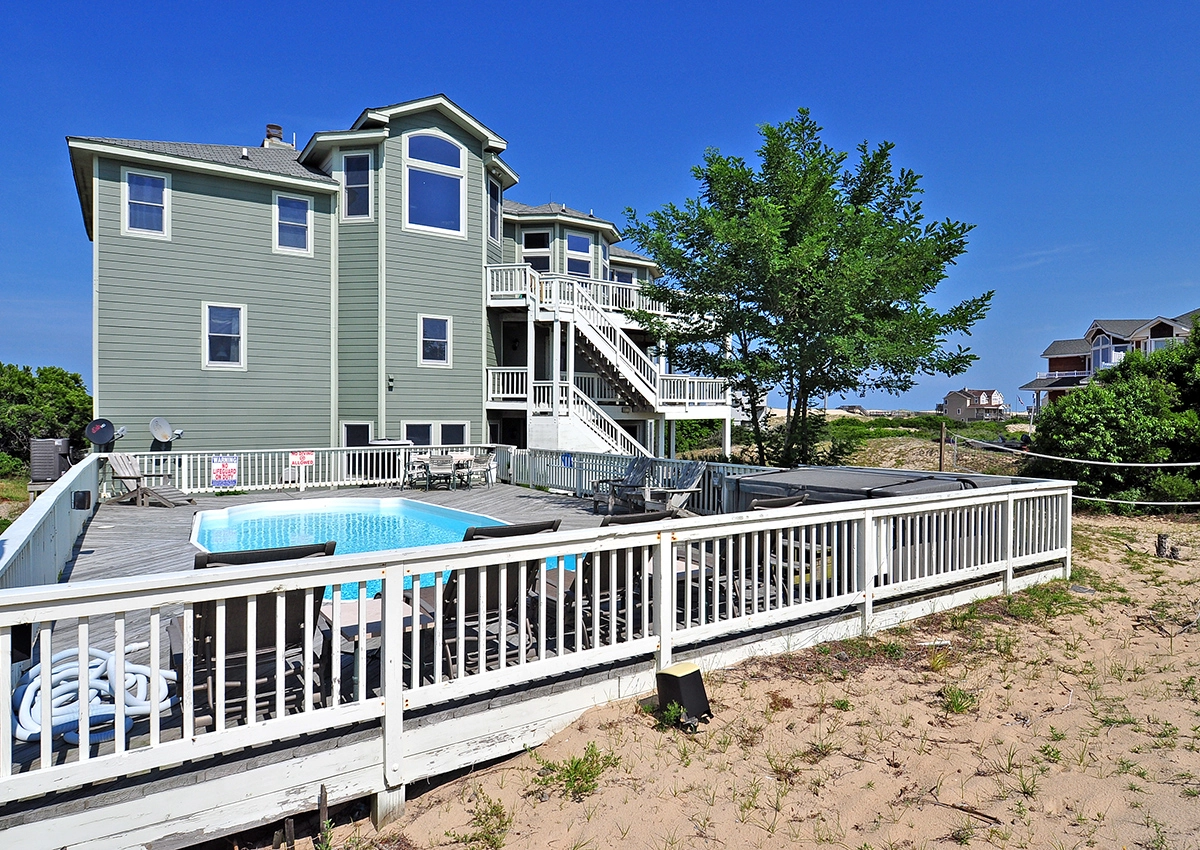 "Wonderful Vacation House!! Has everything that you need! We took beach chairs and sand and pool toys...we didn't need to, because they had them there. The kitchen has all the pots and pans and dishes that you need. And the huge refrigerator is great! The bedrooms and bathrooms are very roomy and nice. The main living room and dining areas are also great! The pool and hot tub are very nice. They really have thought of everything needed...including games, toys, & booster seats. We had 11 adults and 3 toddlers...we never ran out of hot water, and the water pressure was great. The house has many Beach Theme decorations, which is nice. All linens are provided. It also has a washer and 2 dryers...which is nice for wet towels. The house has nice big windows, with great views! And The Twiddy Company was great to work with!! The Outdoor Shower is really great to have!!"
