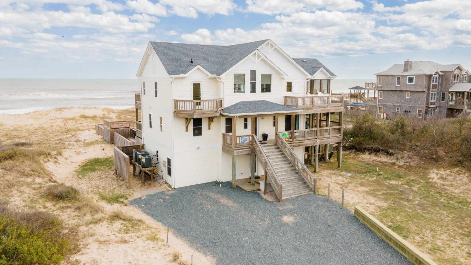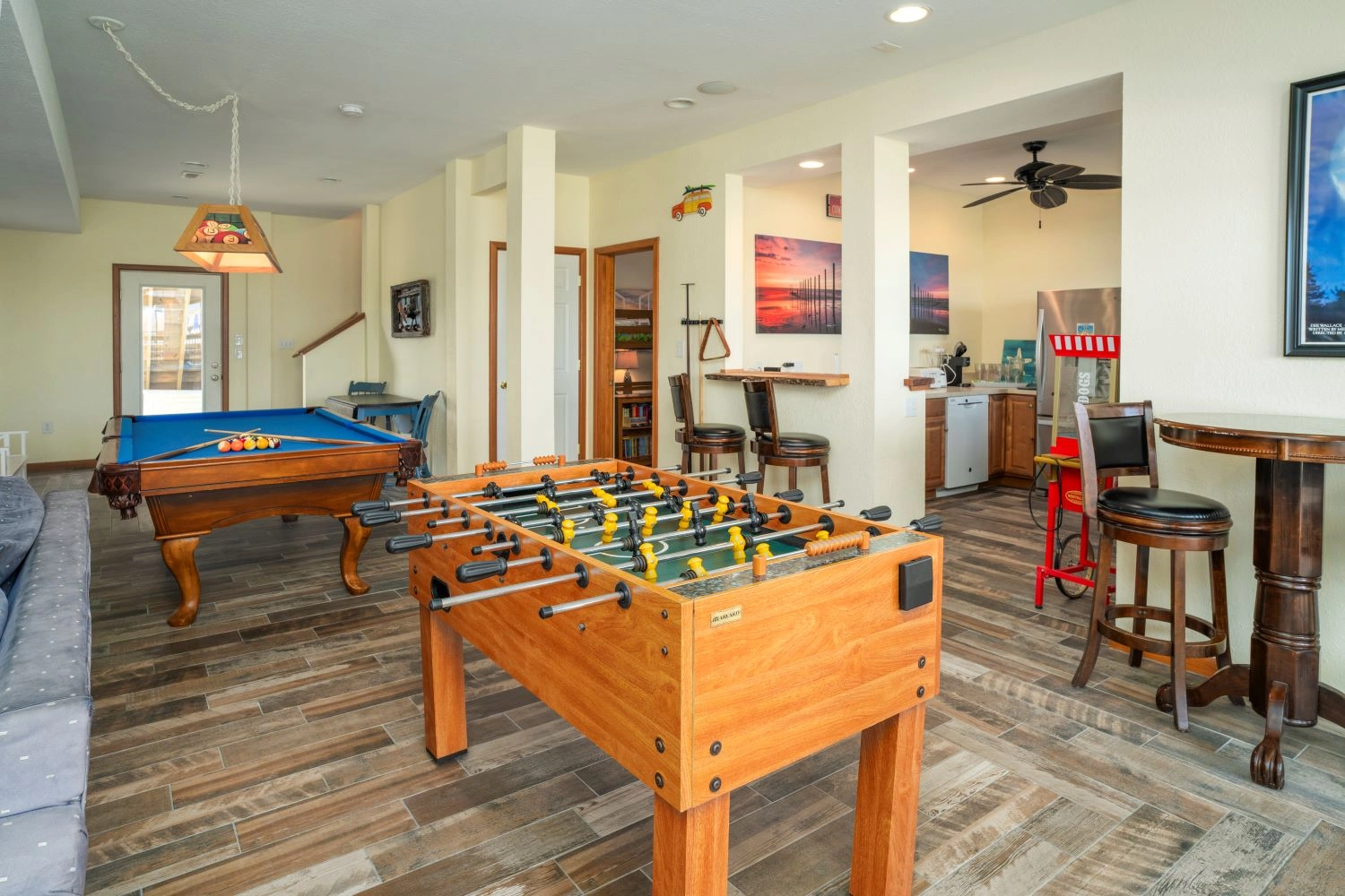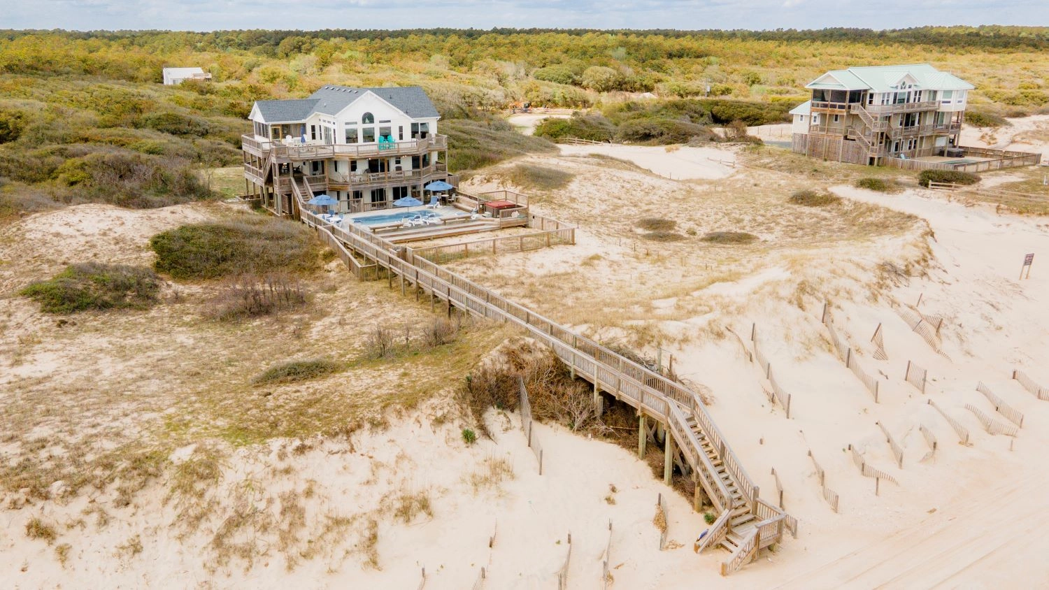 Rec room (QSS) with pool table, foosball, and second kitchen with full-size refrigerator and dishwasher; patio with access to newly expanded gated private pool and hot tub and outside bar; walkway to the beach.
