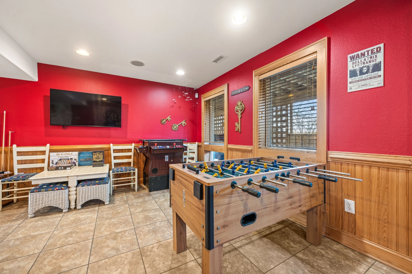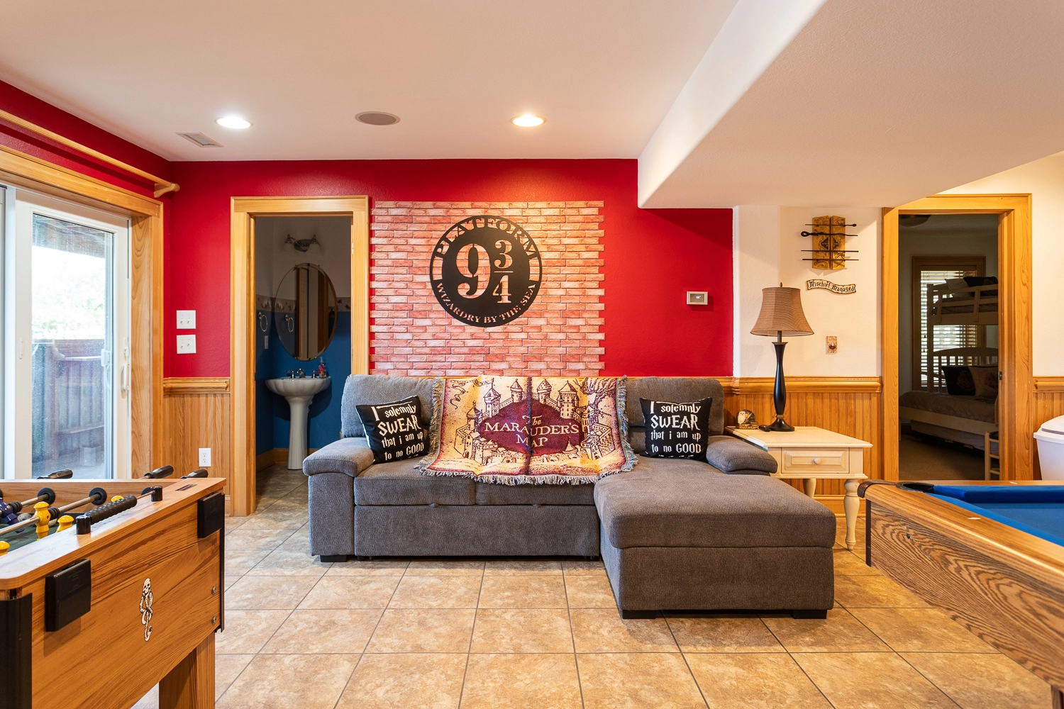 "The home is amazing. If you are a Harry potter lover omg!!! You will get a kick out of this home. From the phone booth to the arcade machine everything was perfect!!"