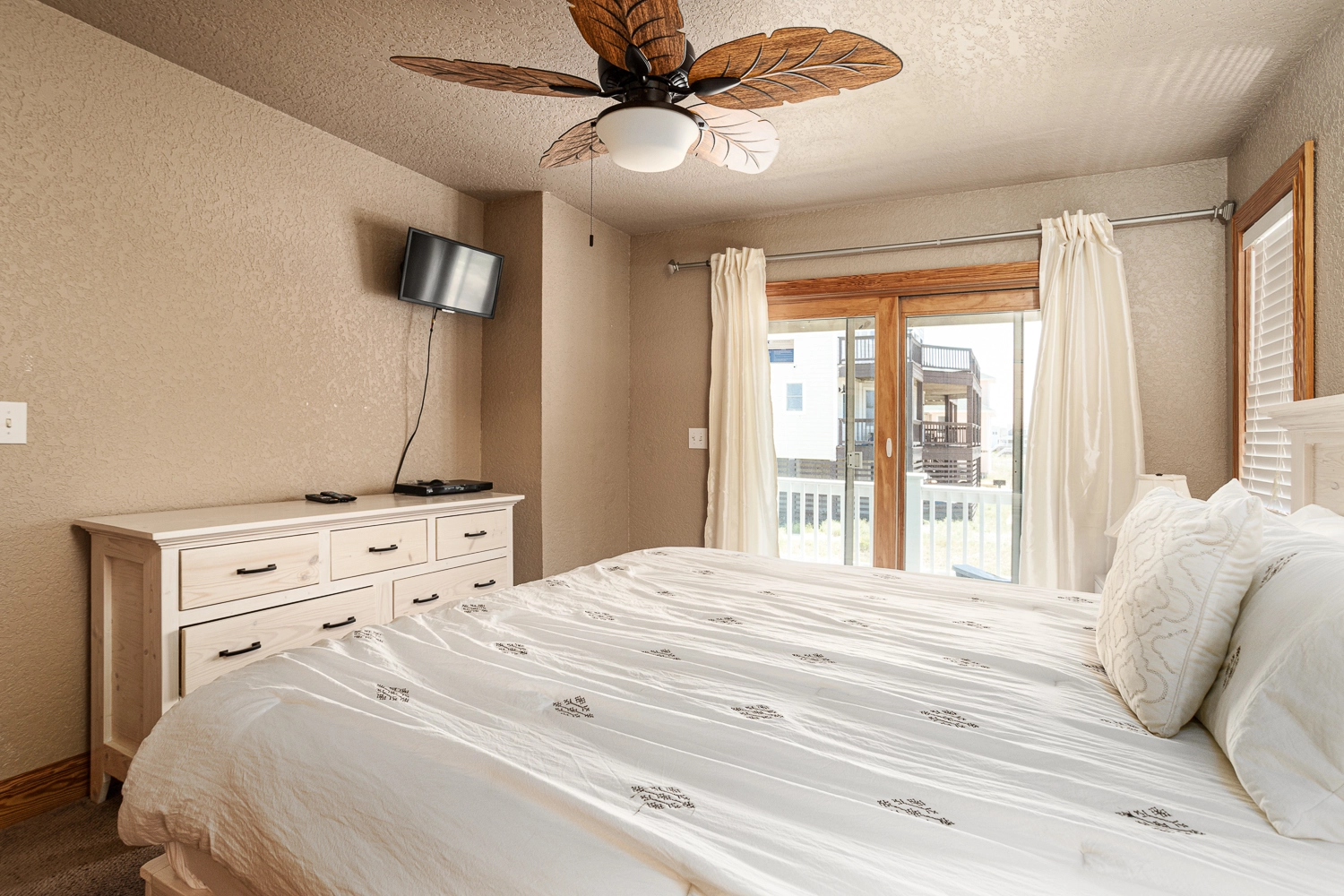 "This was an awesome location. You can see the ocean but are not paying ocean front prices. It is at the entrance to the beach. You are away from everything but not too far to go into town if you want to. The bedrooms were spacious and really nice."