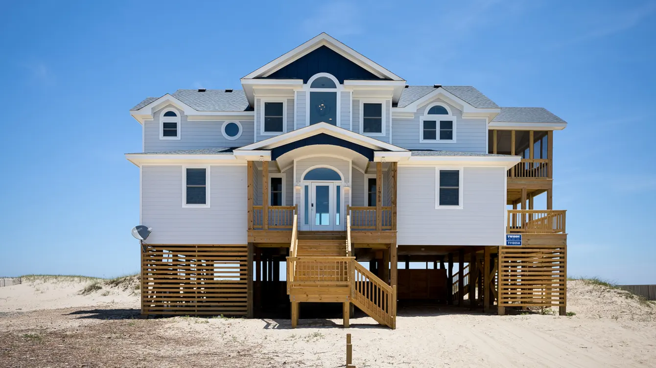 "This home was just built so it was extremely clean, updated and gorgeous overall. The location and view absolutely provided the "best of both worlds". We will definitely consider this home in the future! Twiddy was also great to work with, they were very responsive and polite. One thing to note- Being a new home the construction materials leftover seemed to be buried under the sand- some not so much. Be careful walking around outside for nails, wood debris etc. We were disheartened to see the previous renters dogs had scarred up the master bedroom door and tore the screen on the porch. I do hope they were charged for it as this home was brand new- shame on them."