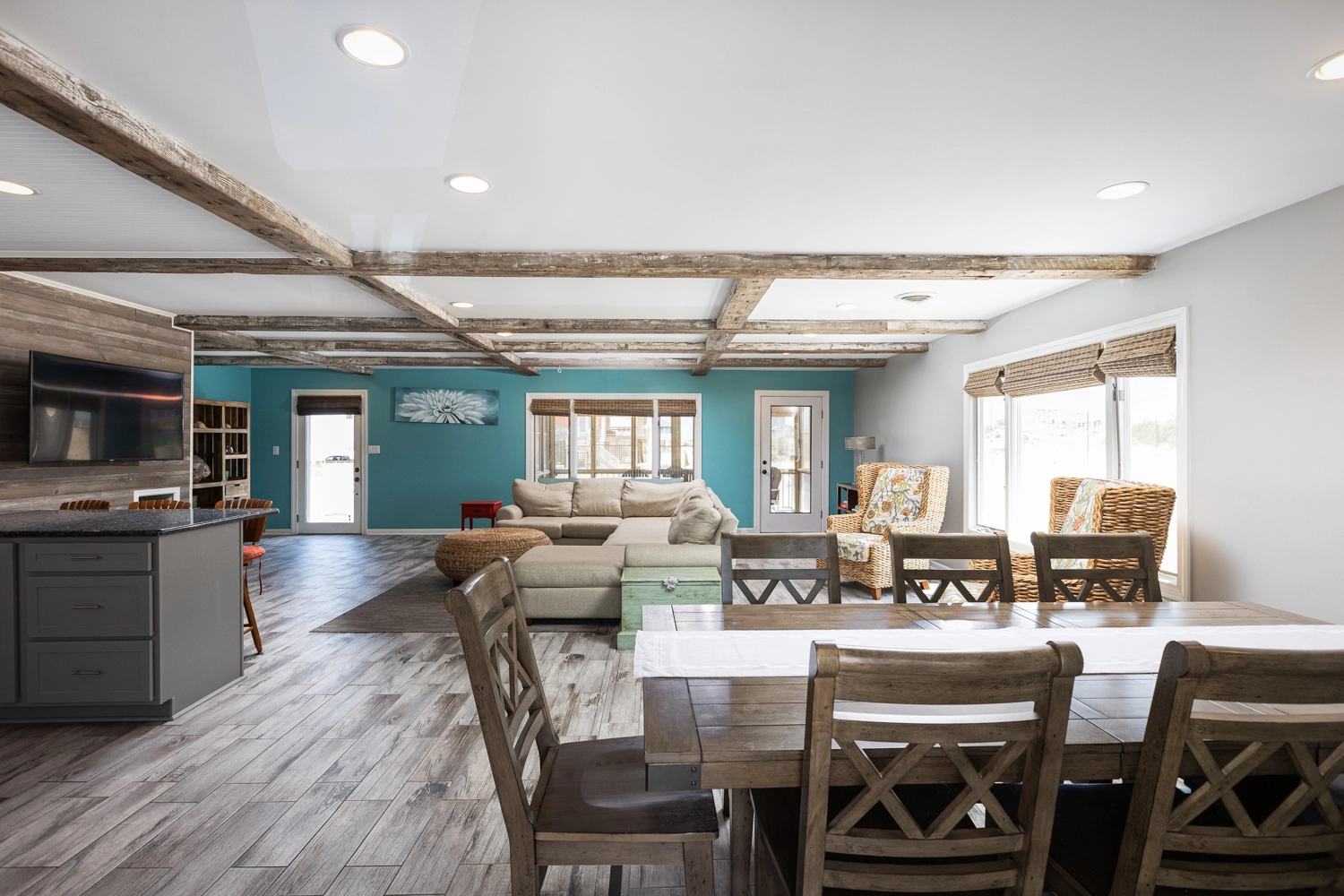 Great room; kitchen; dining area.