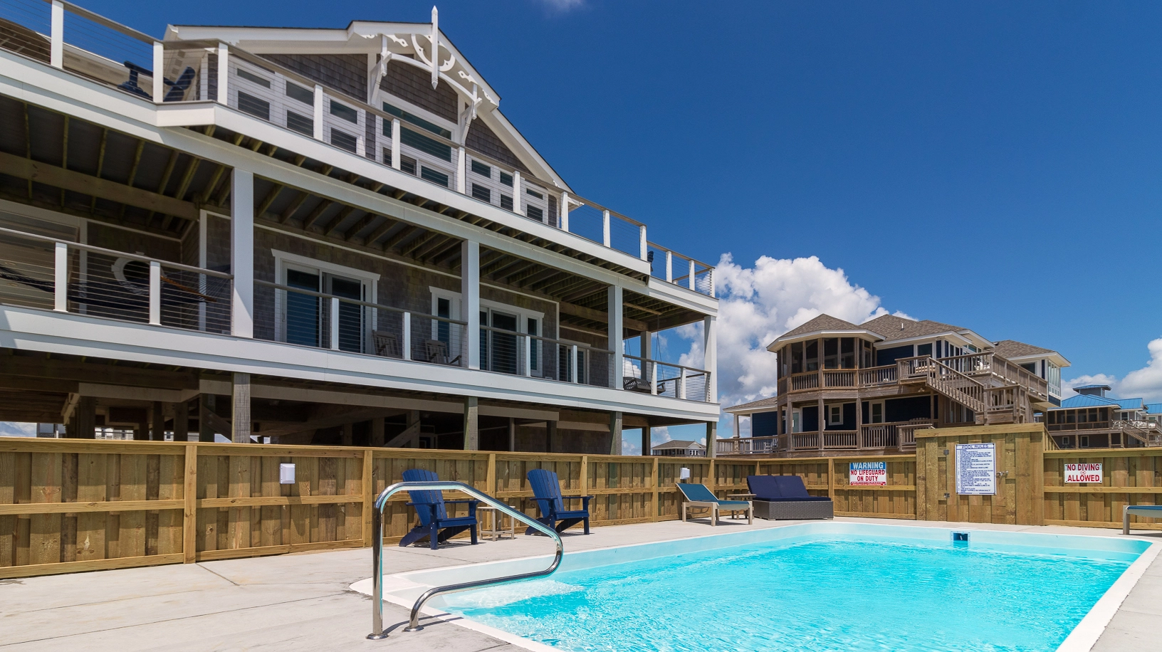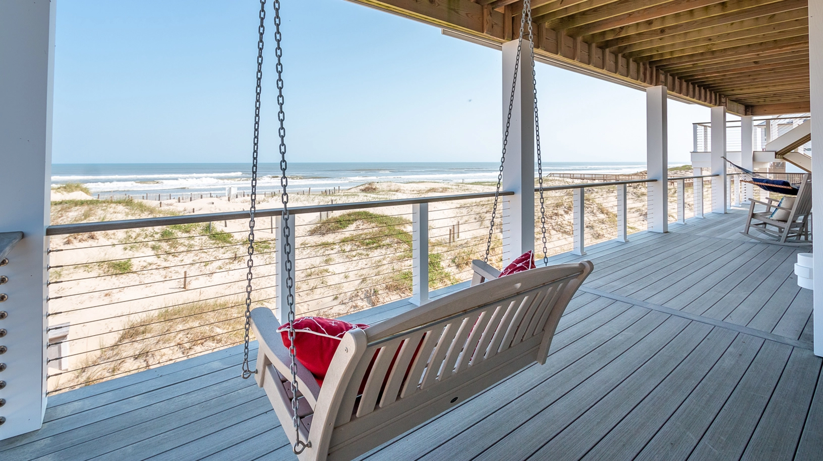 "Trex decking is awesome, lots of space, open living room and kitchen, lots of bathrooms, amazing views, very close to the beach, elevator"