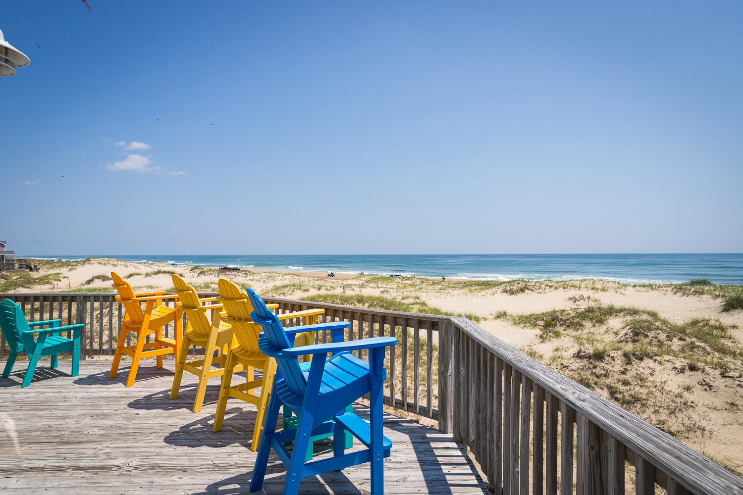 "LOCATION, LOCATION, LOCATION! This home was spotless; had everything we needed and more and is so well taken care of and maintained. The beds were so comfortable, the couches and living room furniture too. The deck furniture is priceless, both the middle deck, swinging hammock chairs, and the upper deck high Adirondak chairs made for stunning views & relaxation!! The decor was also great, highlighting the beach decor throughout the entire home!!"