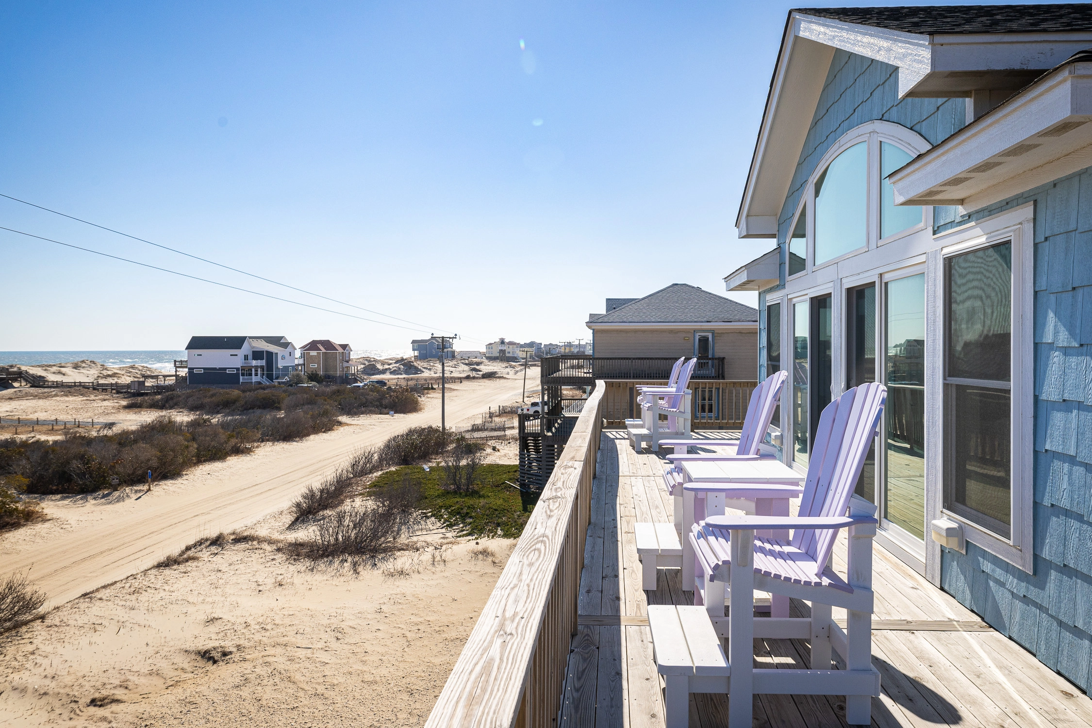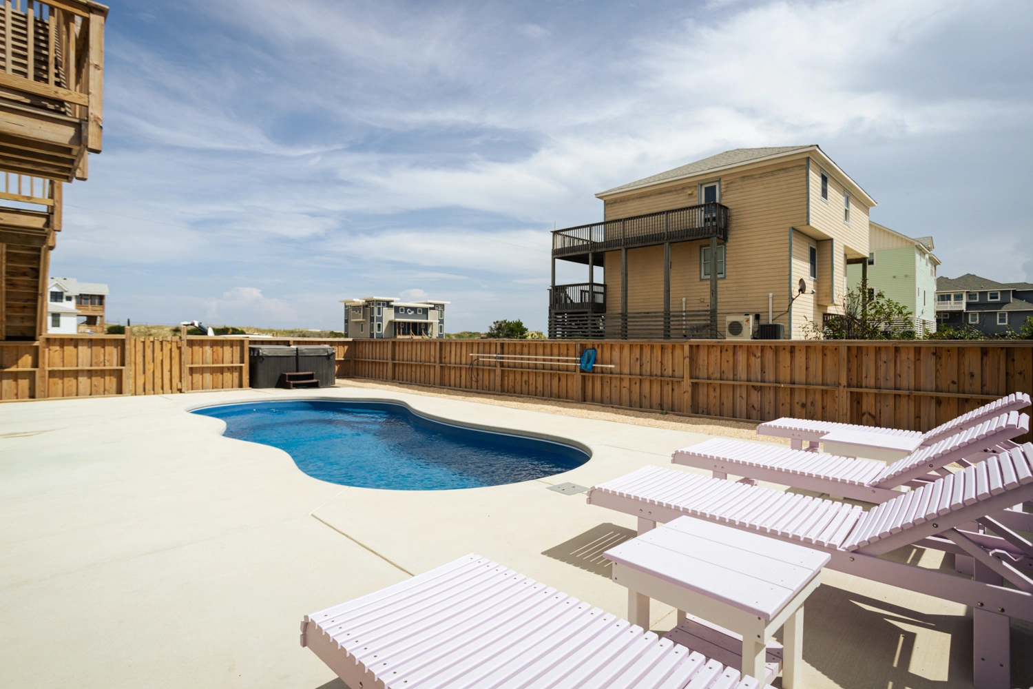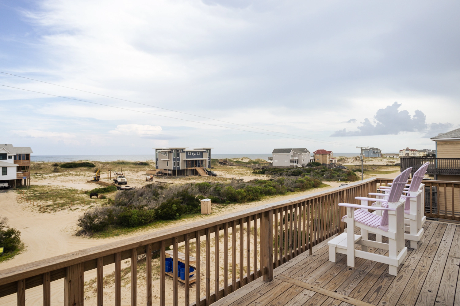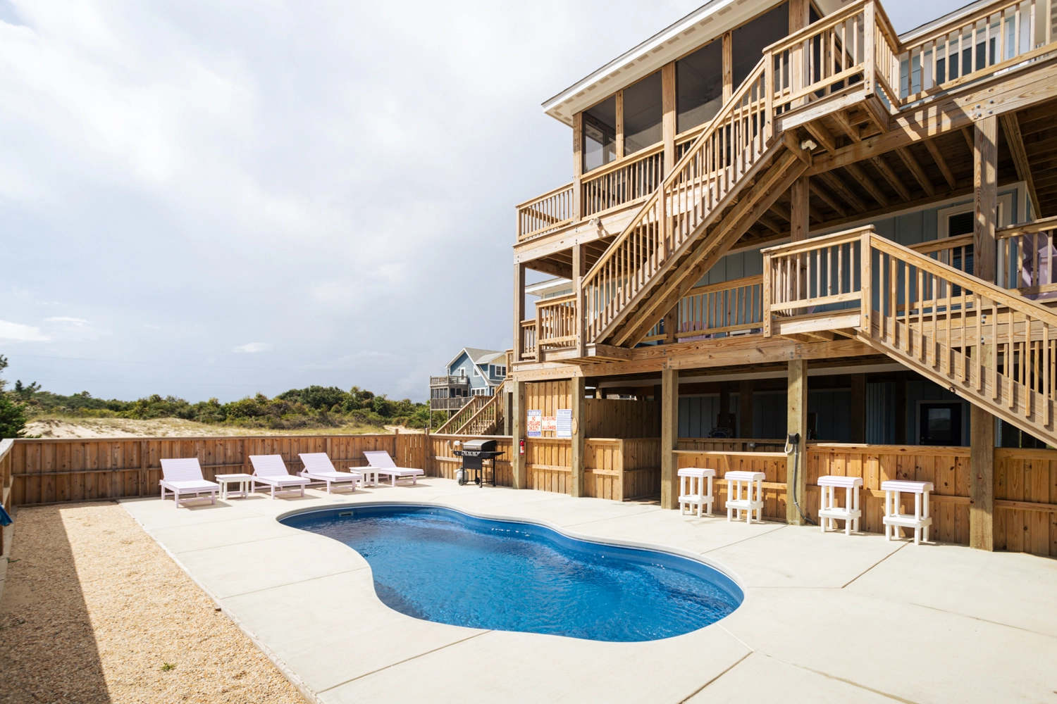 "The Kraken had everything as promised and we had an amazing 1st trip to the OBX. Because of recent storms and flooding we had to plan limited trips to town around low tide but that was just fine because we were there to enjoy the beach/pool/hot tub and for relaxation! The fully stocked kitchen and gas grill made it easy for us to enjoy our meals at the house. We also appreciated the bean bag boards and board game options. Horses visited every day, including once when they held up a beach walk for a bit as they were using the stair railings as a back scratcher!"
