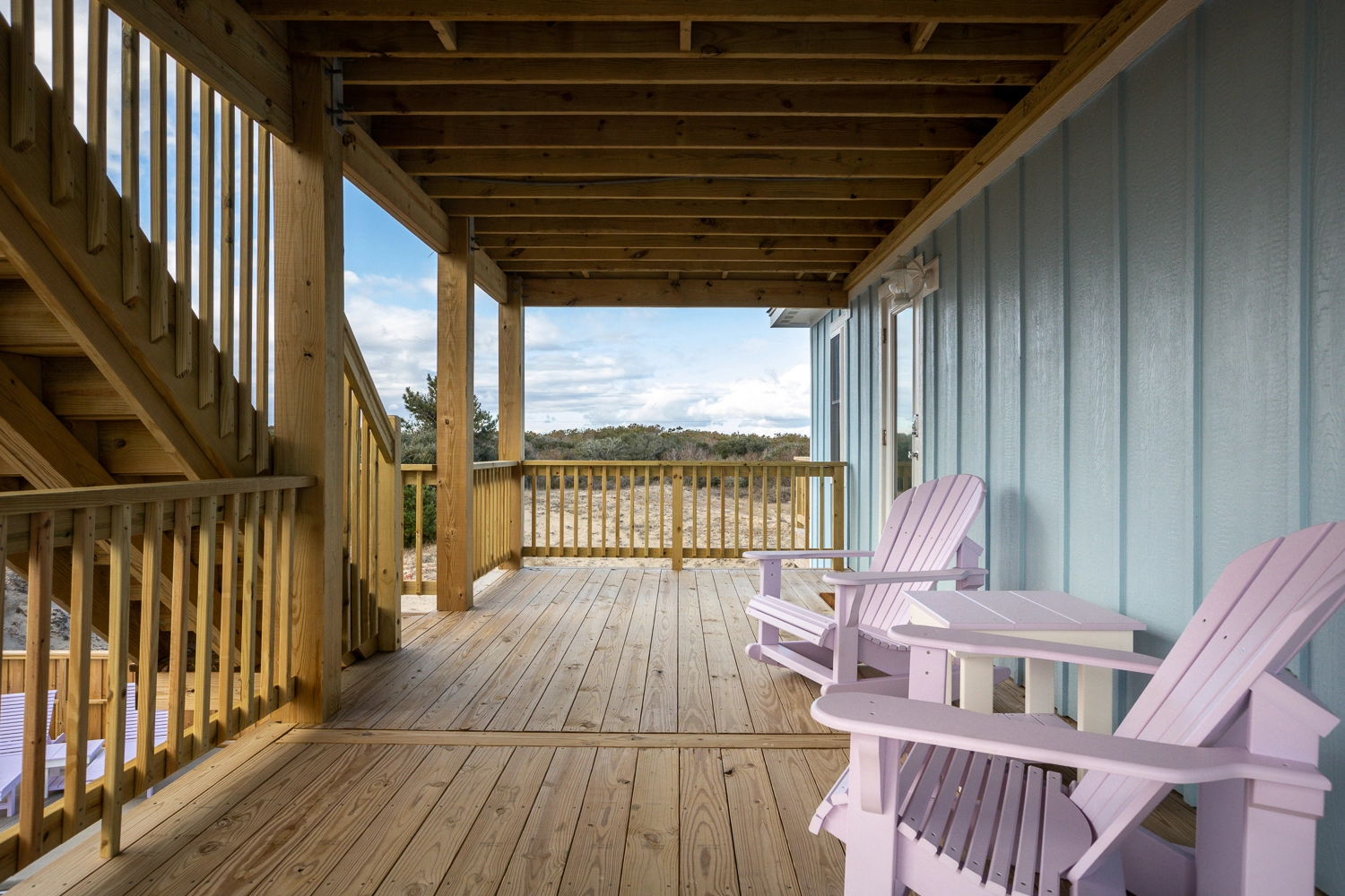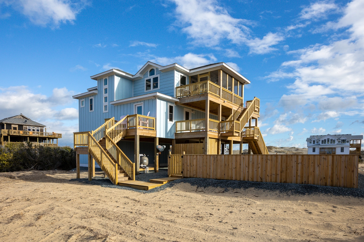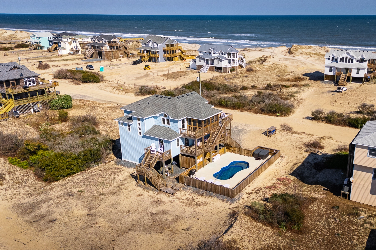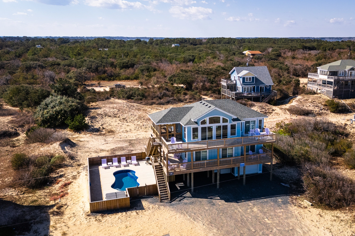 "The Kraken had everything as promised and we had an amazing 1st trip to the OBX. Because of recent storms and flooding we had to plan limited trips to town around low tide but that was just fine because we were there to enjoy the beach/pool/hot tub and for relaxation! The fully stocked kitchen and gas grill made it easy for us to enjoy our meals at the house. We also appreciated the bean bag boards and board game options. Horses visited every day, including once when they held up a beach walk for a bit as they were using the stair railings as a back scratcher!"