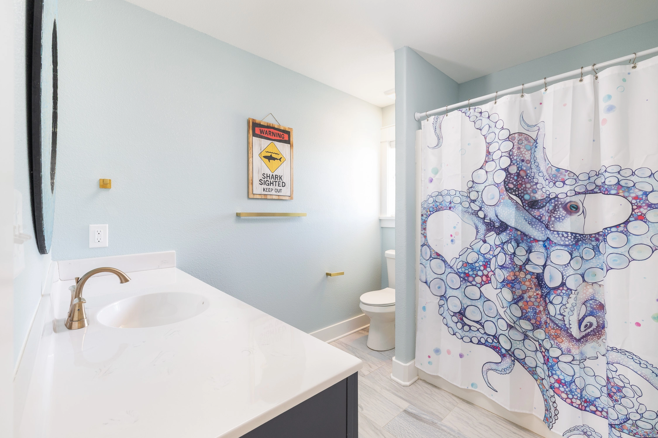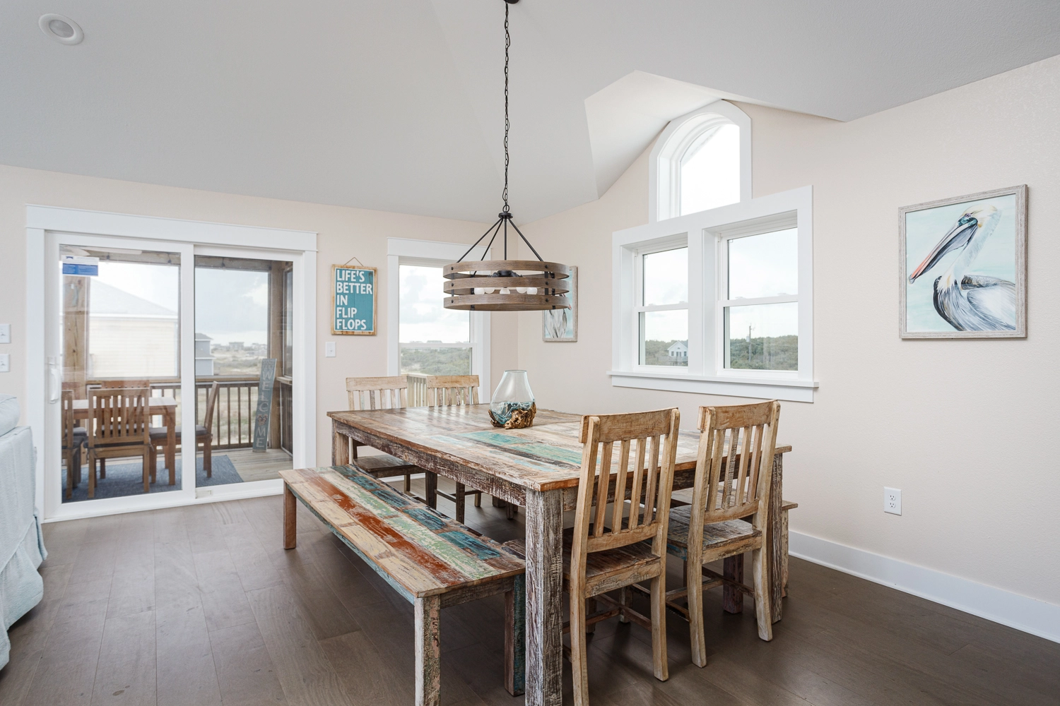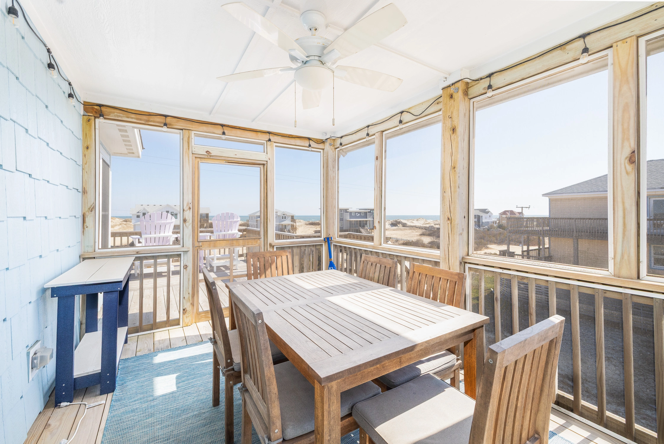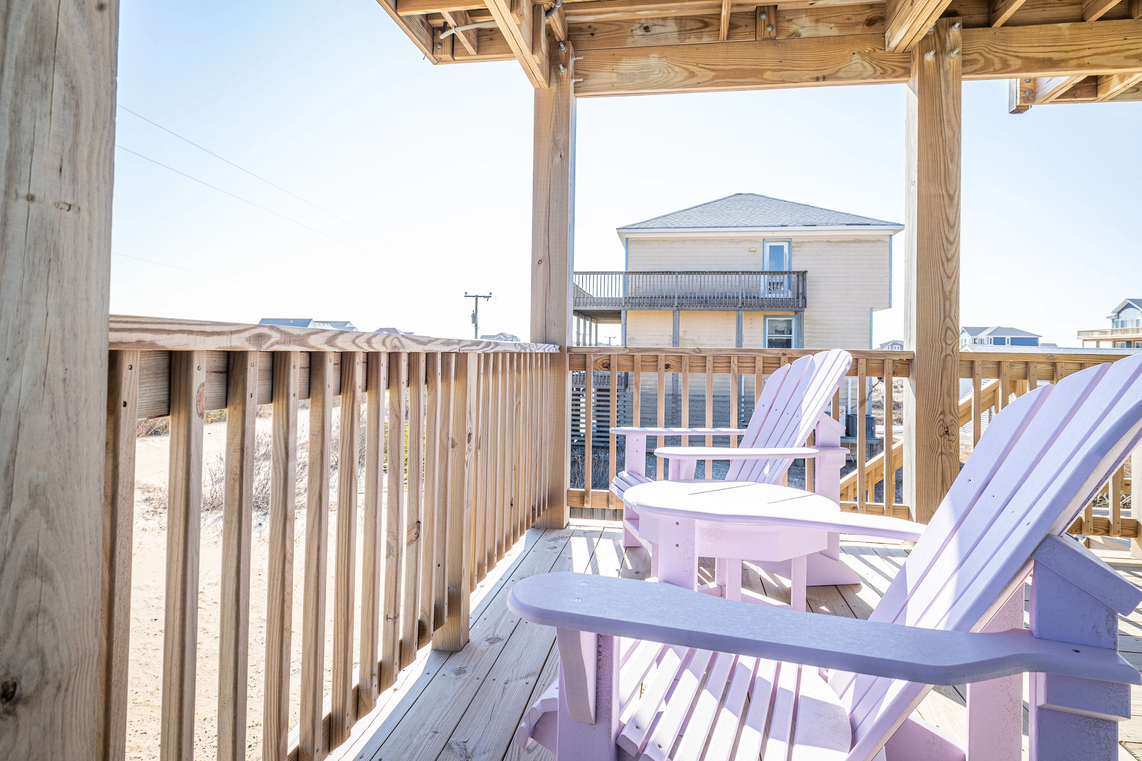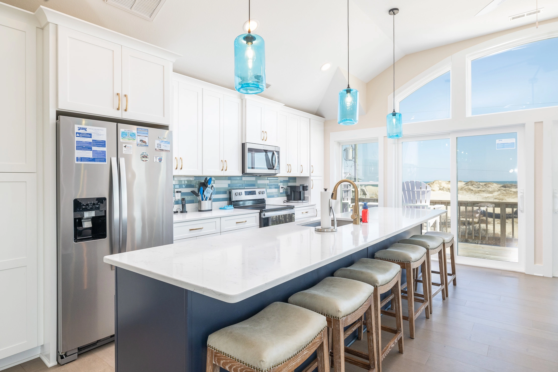 "The Kraken had everything as promised and we had an amazing 1st trip to the OBX. Because of recent storms and flooding we had to plan limited trips to town around low tide but that was just fine because we were there to enjoy the beach/pool/hot tub and for relaxation! The fully stocked kitchen and gas grill made it easy for us to enjoy our meals at the house. We also appreciated the bean bag boards and board game options. Horses visited every day, including once when they held up a beach walk for a bit as they were using the stair railings as a back scratcher!"
