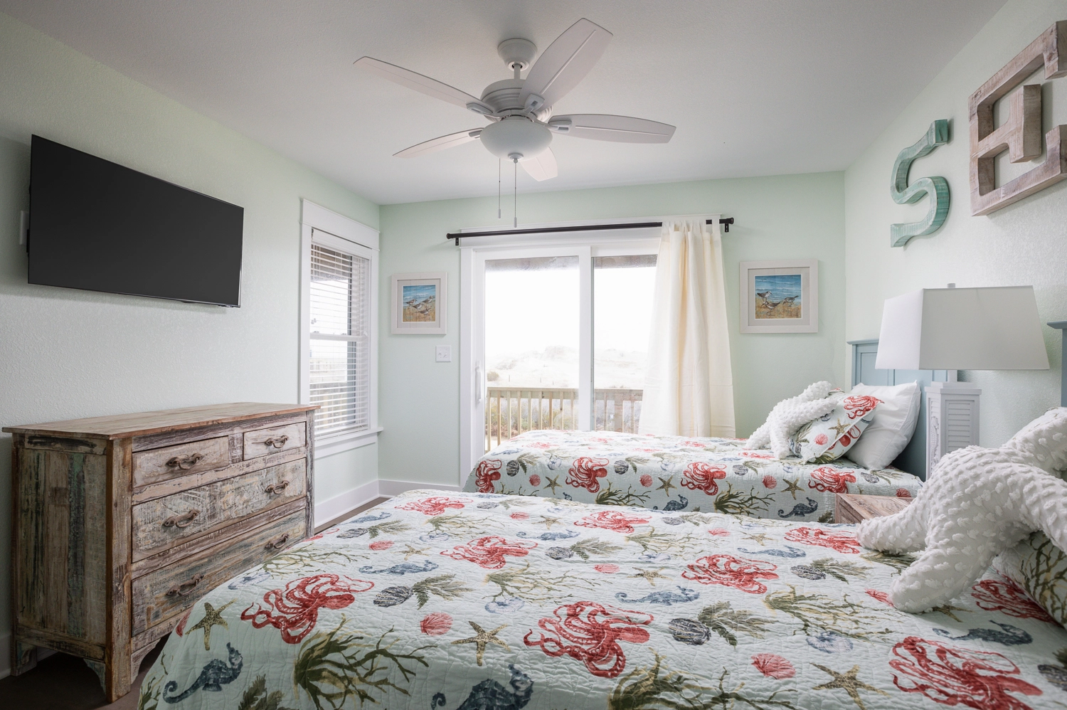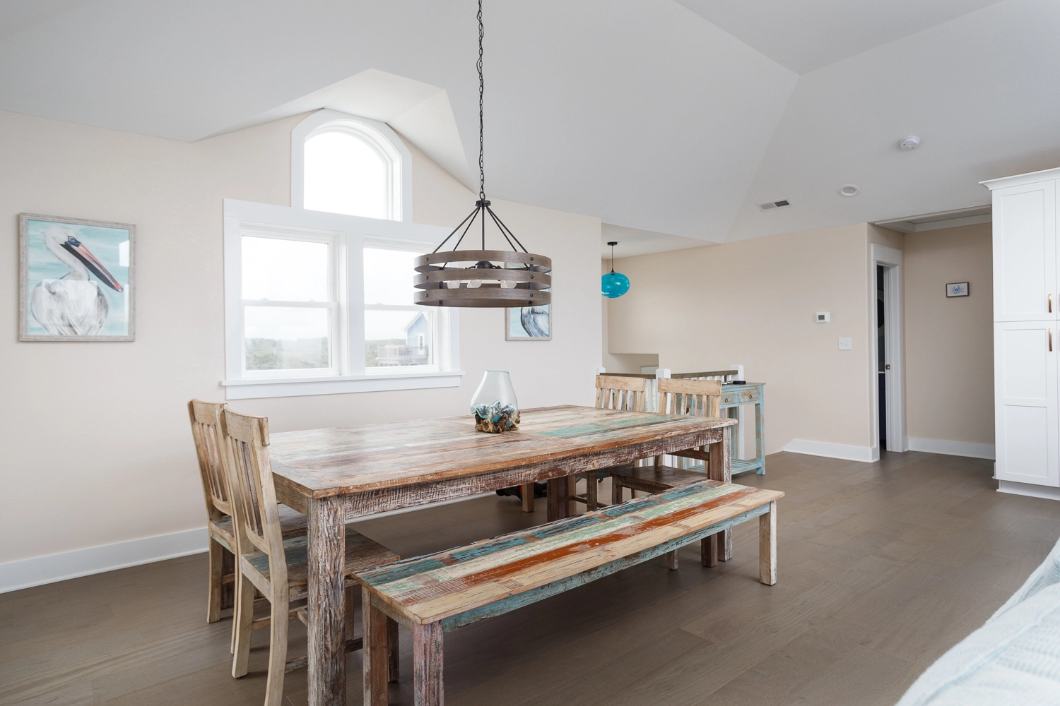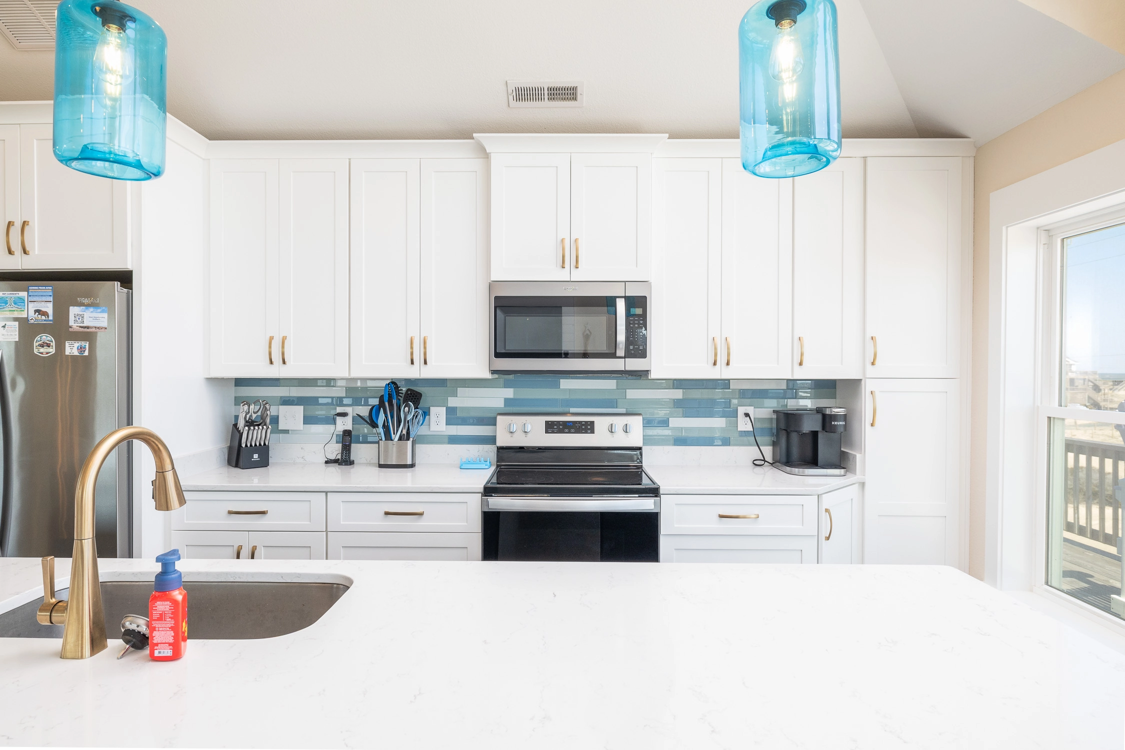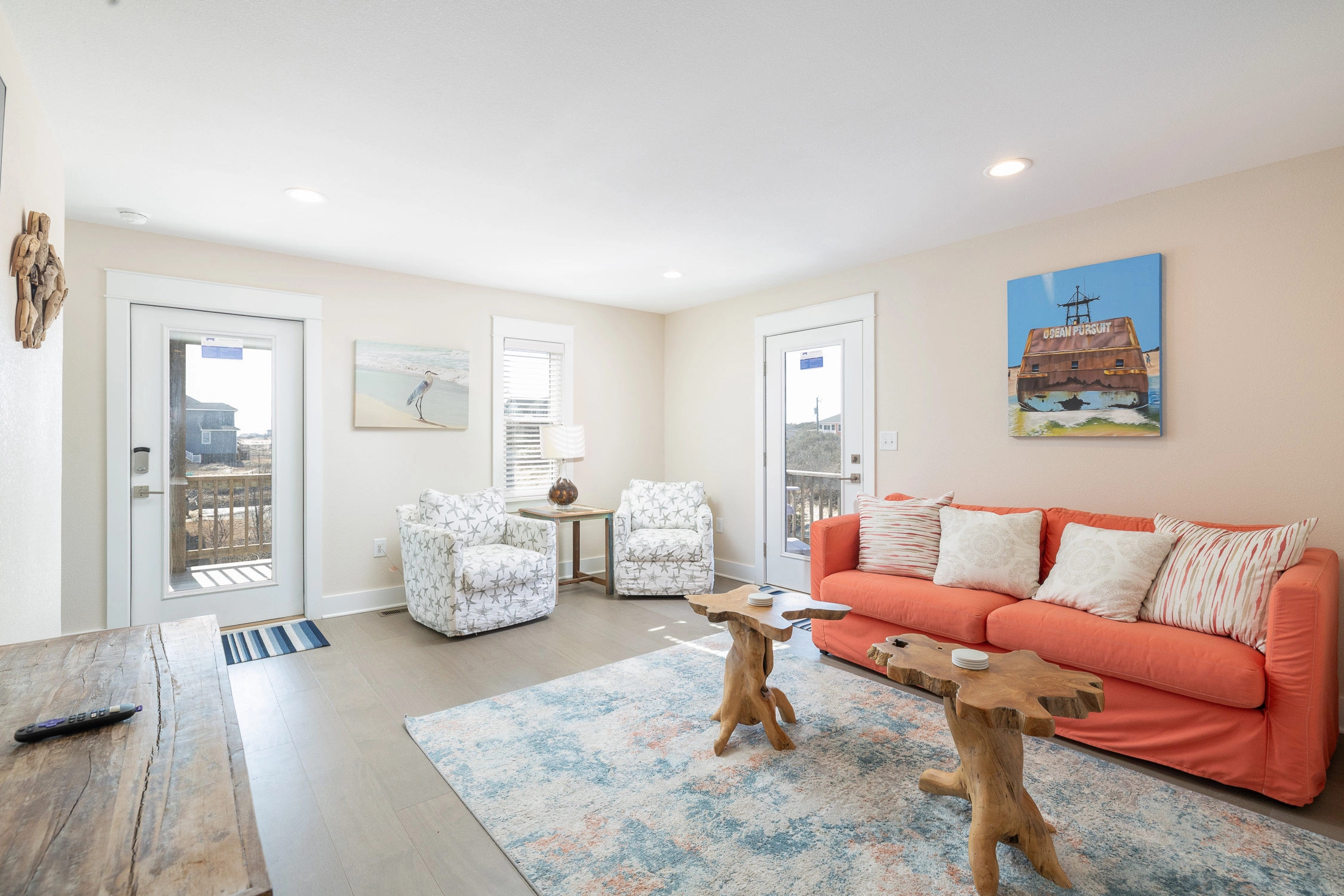 "The Kraken had everything as promised and we had an amazing 1st trip to the OBX. Because of recent storms and flooding we had to plan limited trips to town around low tide but that was just fine because we were there to enjoy the beach/pool/hot tub and for relaxation! The fully stocked kitchen and gas grill made it easy for us to enjoy our meals at the house. We also appreciated the bean bag boards and board game options. Horses visited every day, including once when they held up a beach walk for a bit as they were using the stair railings as a back scratcher!"