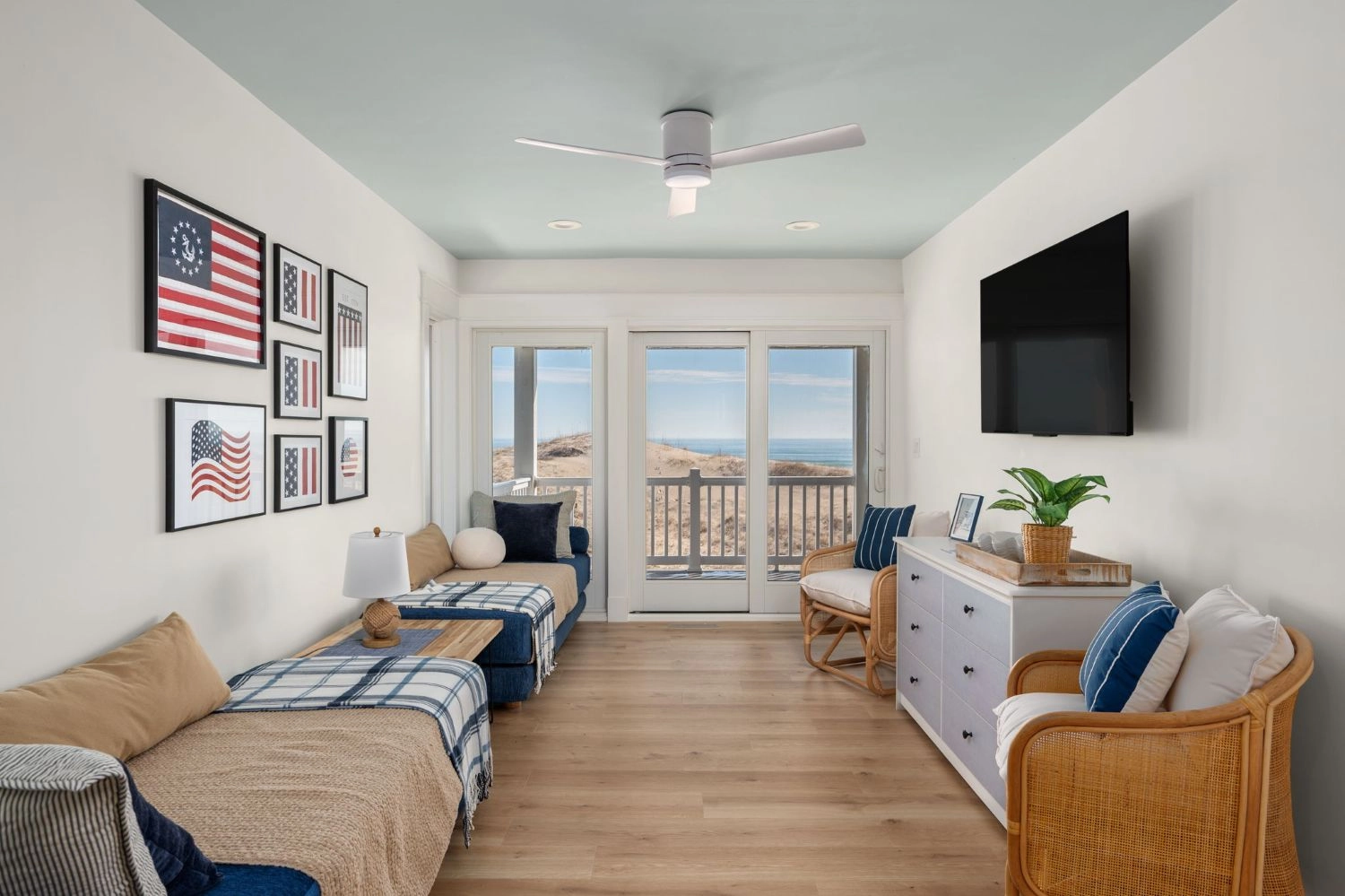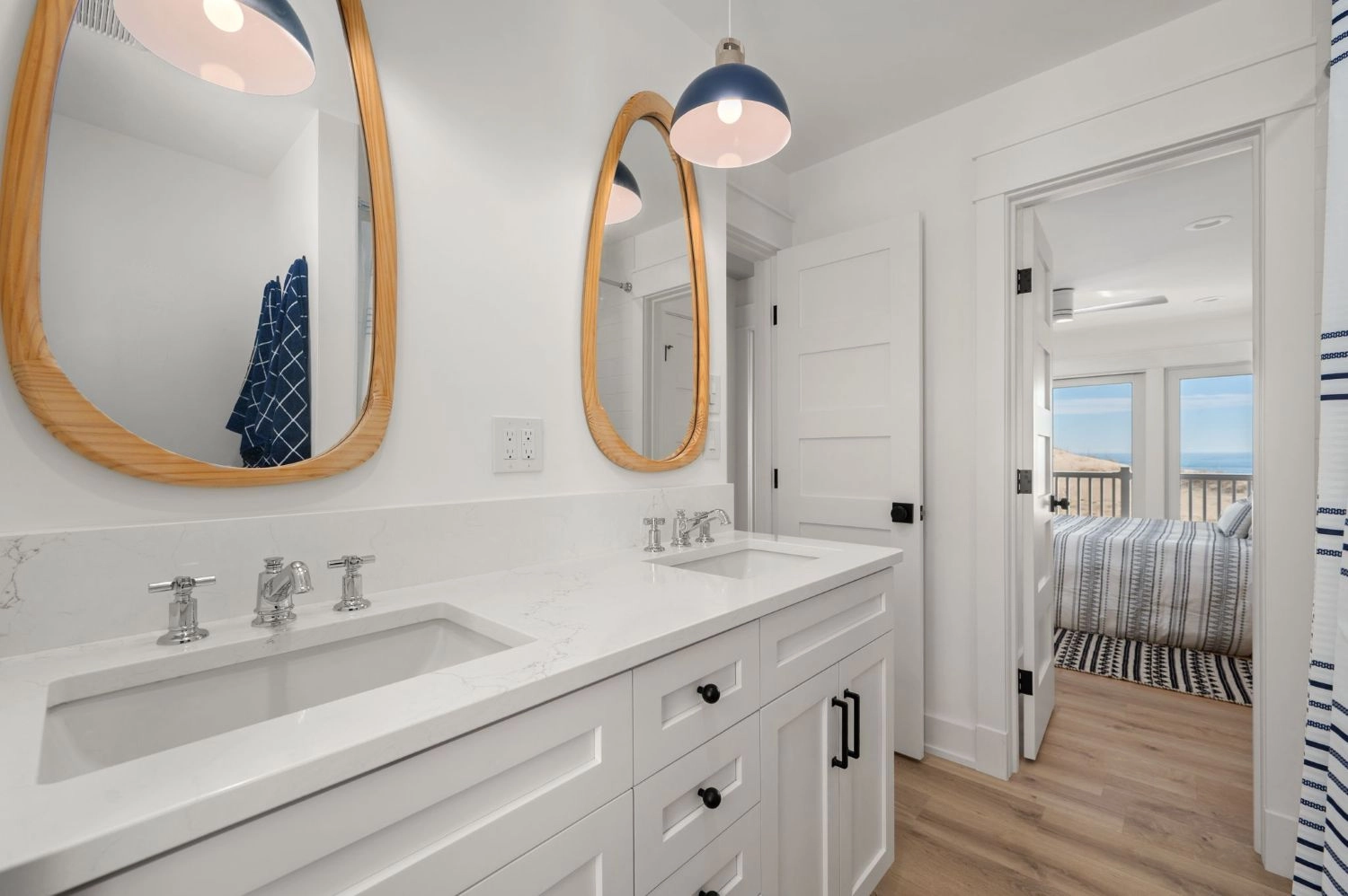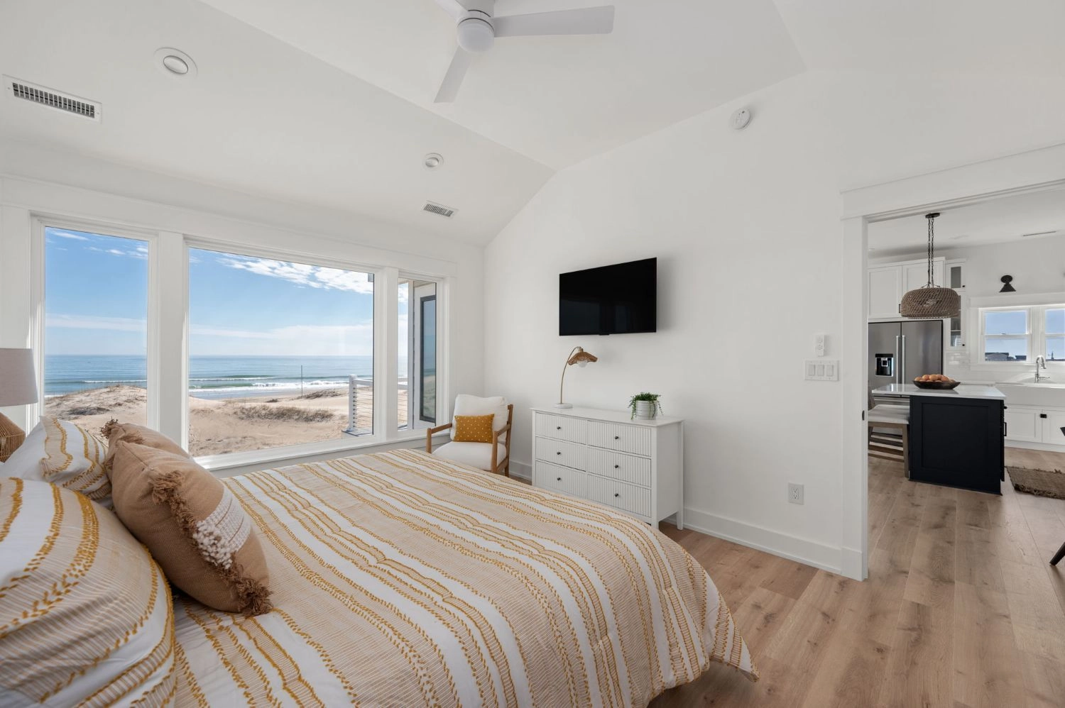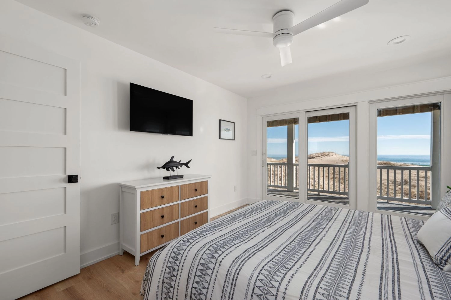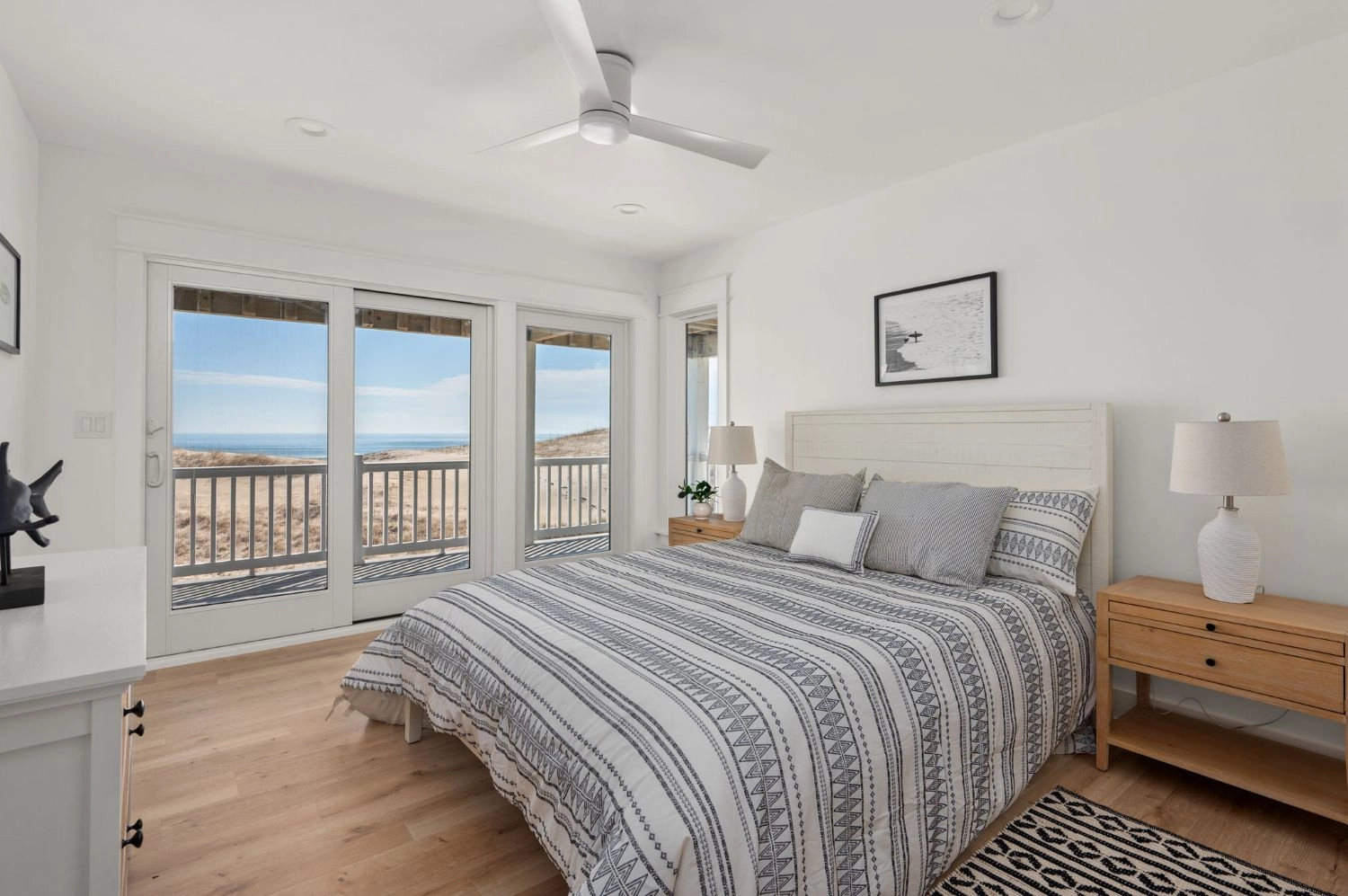Queen, Semi-private bath, Shower/tub combo, Deck access