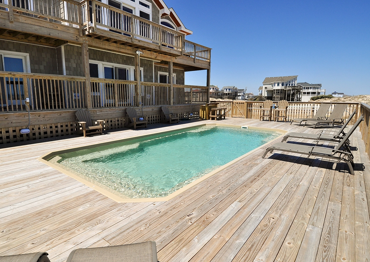 "Our group of families had an amazing week at Valhalla! We vacation together each summer all over the East Coast with our young children, and we all agreed this was the most relaxing, unplugged vacation we've ever had. We were amazed to have horses walk right by the pool deck while we swam and then to share the beach with them on a hot day while we all enjoyed the cool breeze off the water. We all watched for hours on the deck while a storm slowly descended the coast toward us. We sat on the porch each evening to watch the sunset. We loved all eating meals together in the great room with plenty of room for everyone. The house comfortably fit us all, and amenities like many bathrooms, an extra refrigerator, and a stocked kitchen made us feel at home immediately."