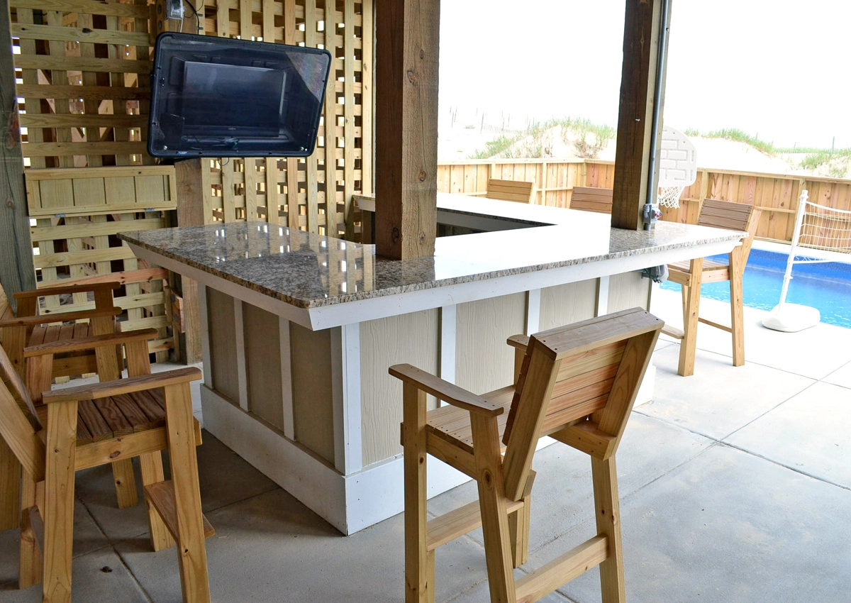 Multiple TVs, free-standing ice maker, wine cooler, Sonos inside, by the pool, outside decks and tiki bar.
