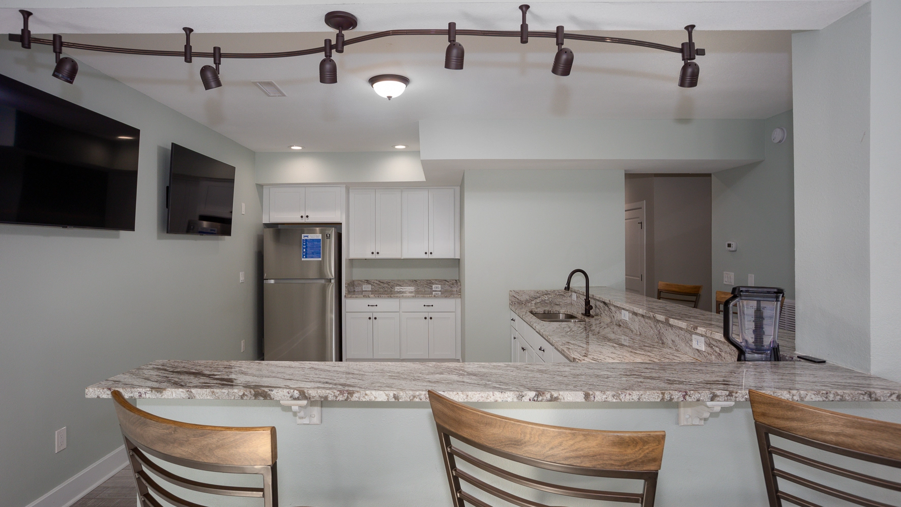 The water system is being replaced this off season with a reverse osmosis system. This will provide clean drinking water. All faucets will be replaced. The water causes corrosion. Planning for a additional closet with brooms and a vacuum. Decking is being replaced. The end of the walkway is an example of the decking going forward. Adding an outdoor bar to the pool area. Thank you for your suggestions.