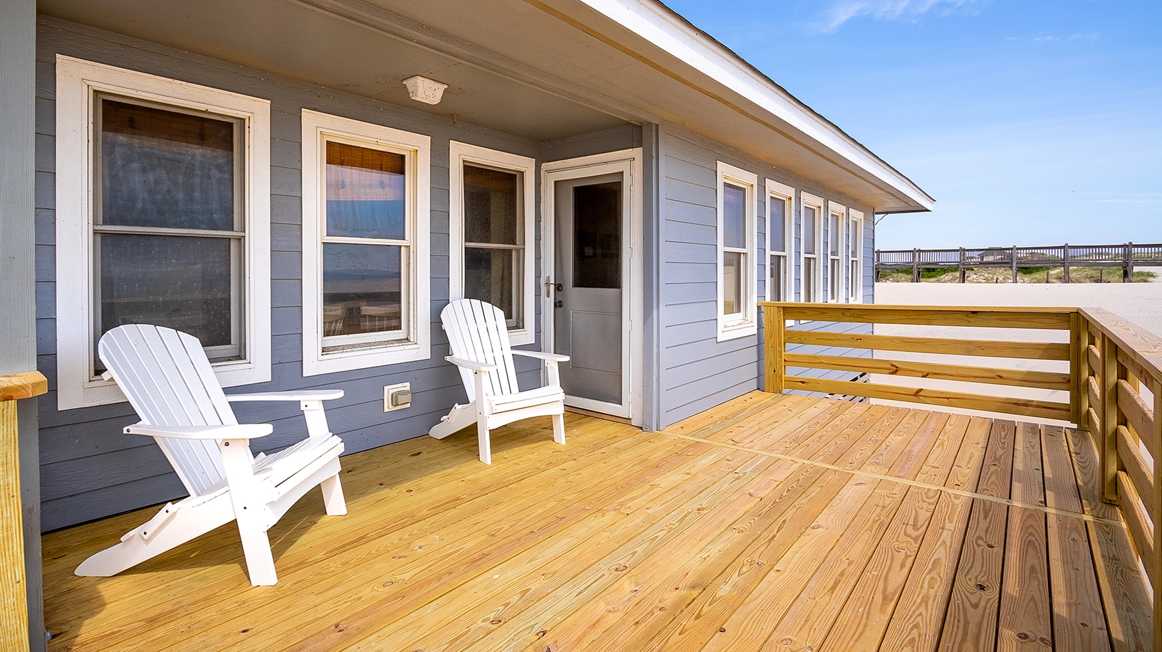 "Dog friendly! Oceanfront. Layout/open concept. Clutter free deck facing the ocean. Keyless entry."