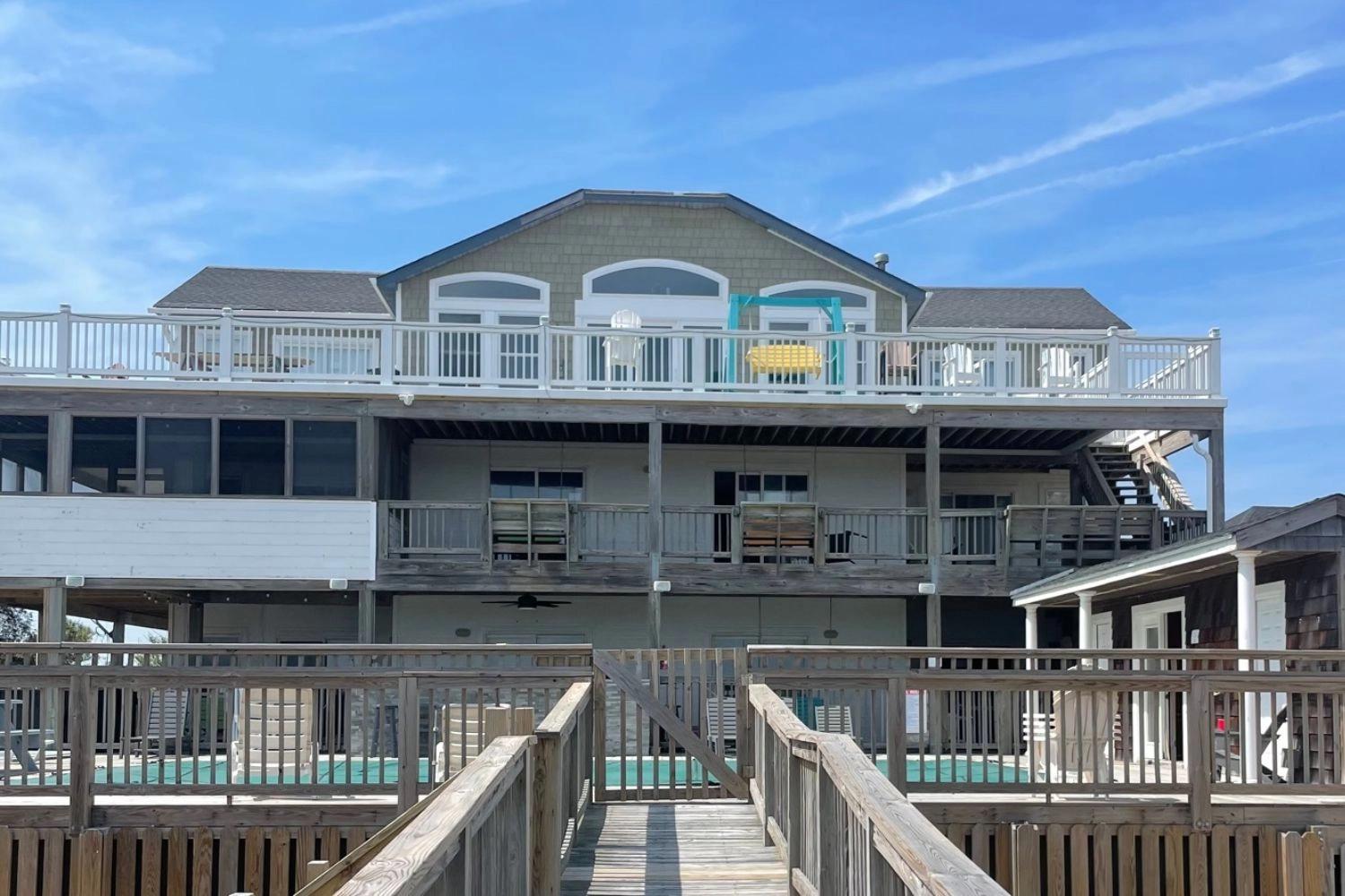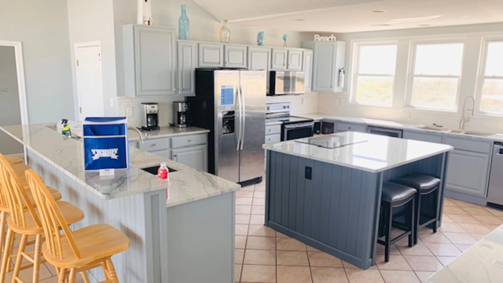 "This home is great! We were so happy to have an oceanfront home, as well as views of the sound (no homes built facing the sound). We did wish their were more garbage cans, screen doors and an update about the outdoor kitchen (no need for charcoal!)"