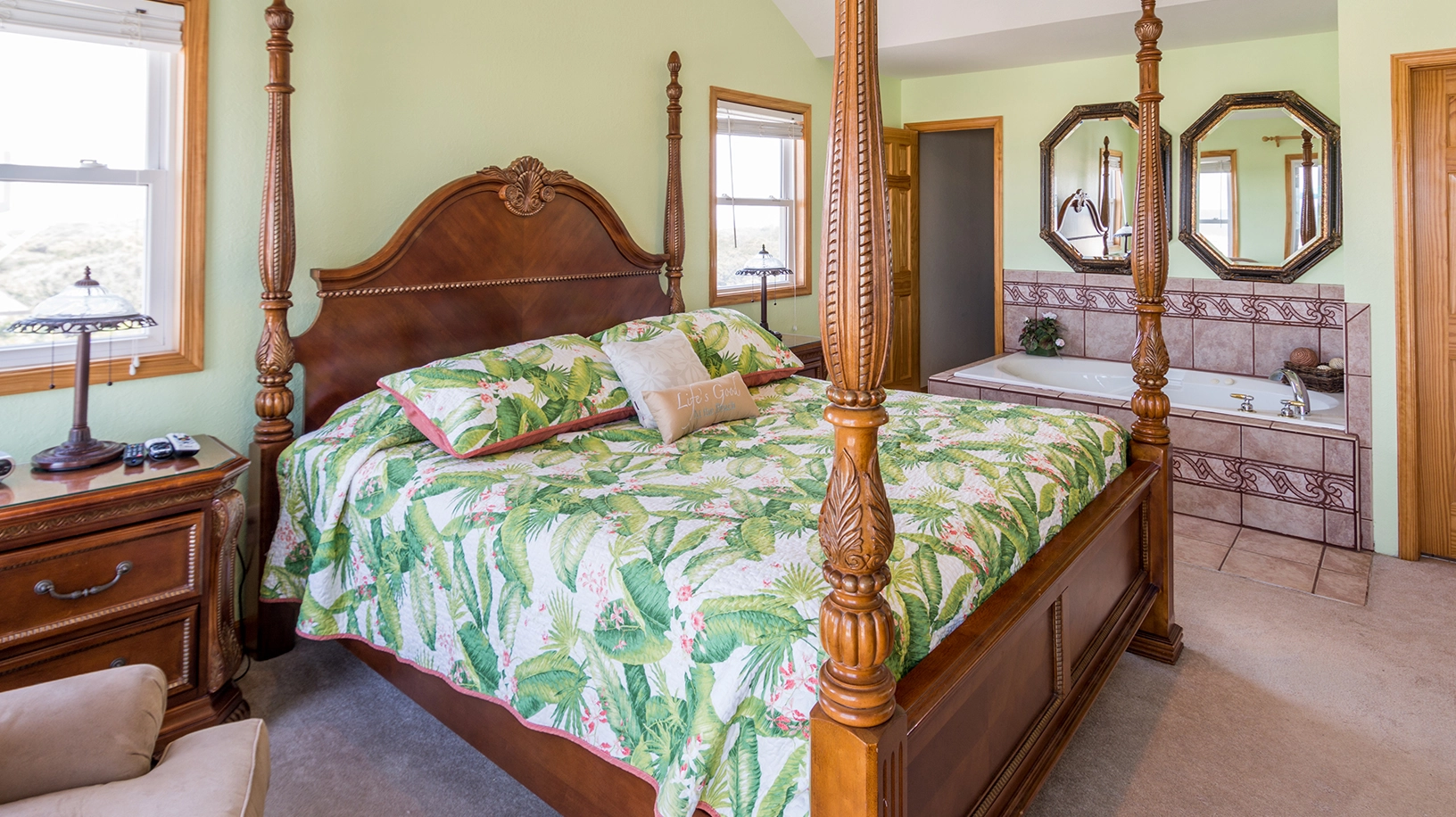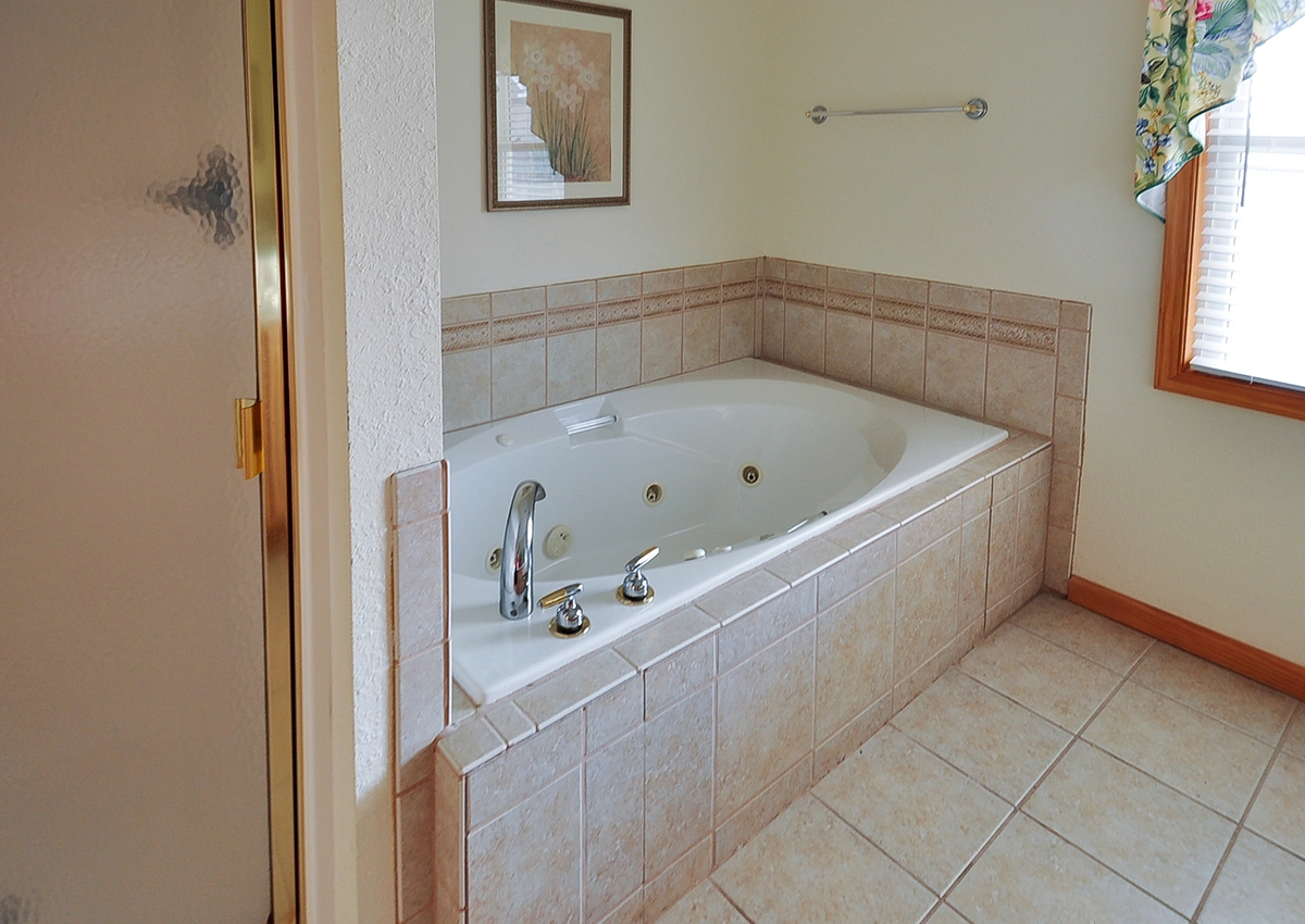 King, Semi-private bath, Standing shower, Whirlpool tub, Deck access