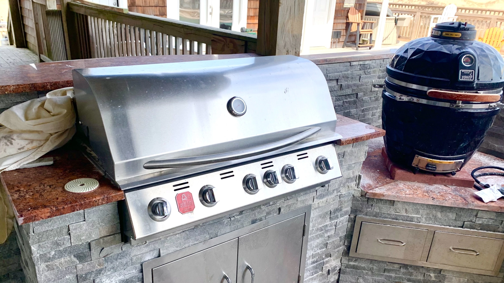 We are so happy that you enjoyed your stay. We have only owned the home for a few years and we continue to make improvements. We really appreciate your suggestions. We plan to expand and improve the grill area. Additional lighting for the grill area is a great idea. We would be happy to have you back anytime! Thank you!