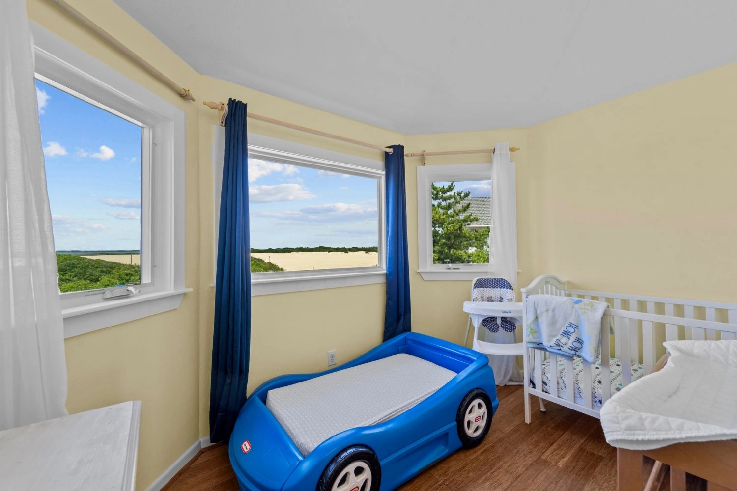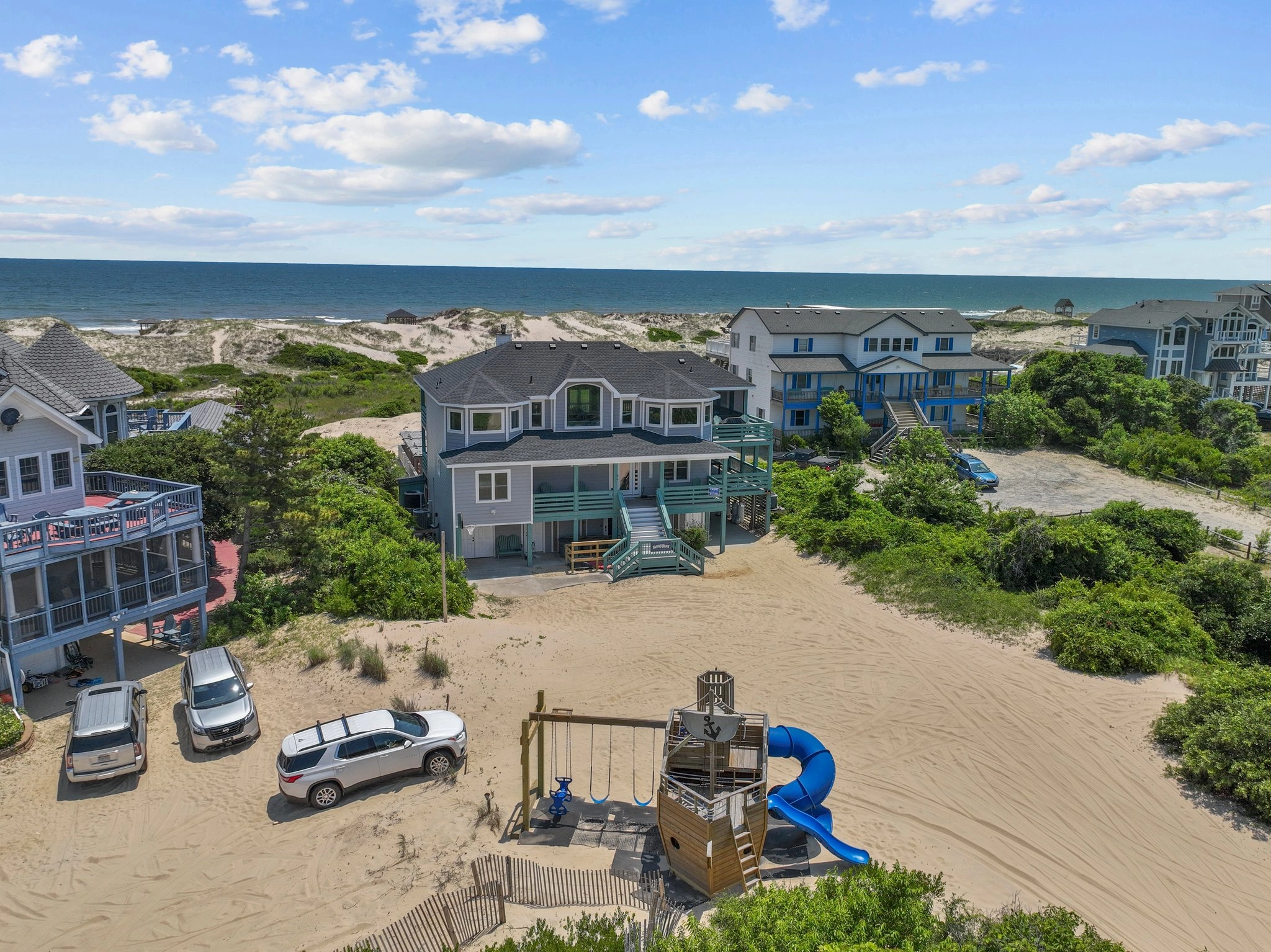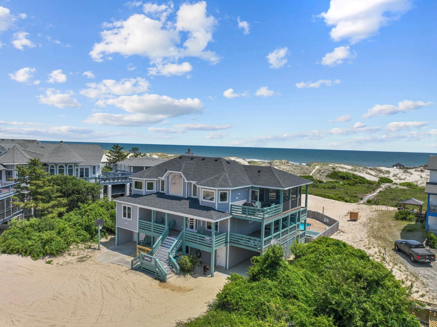 "We love Sunny Buns. We have stayed 2 years in a row now and we hope to go back next year. The owner made many improvements in the last year and they were very nice. The bathrooms are beautiful. The view of the ocean and sound are gorgeous and we really enjoy watching the sunrise and sunset from the decks. The only improvements that would be nice are more comfortable mattresses and a new coffee maker. These are not things, however, that would keep us from coming back. It’s a beautiful home and great location on the 4x4 beach."