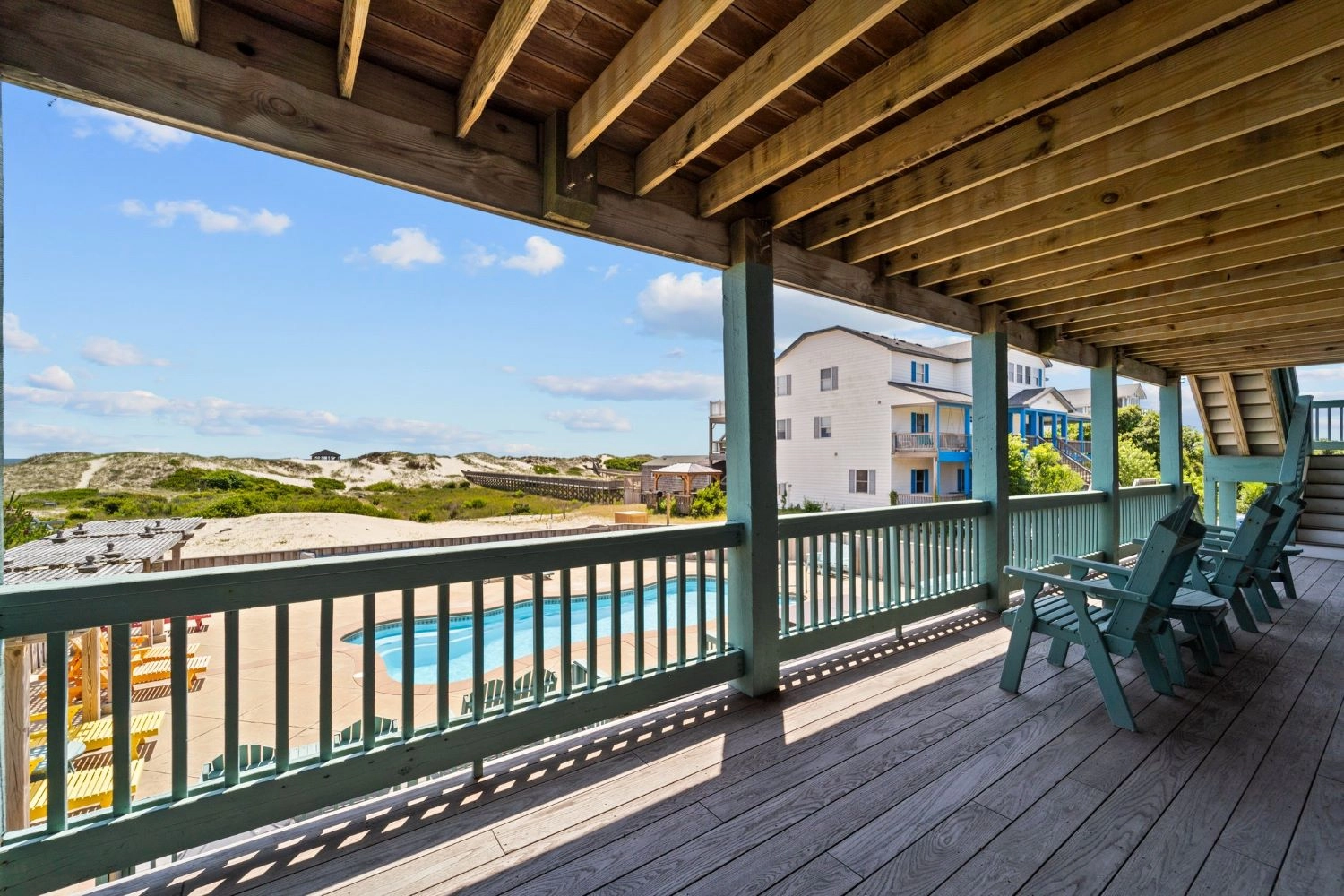 "Large living spaces on 3rd floor. Large deck and pool. Close proximity to the beach."