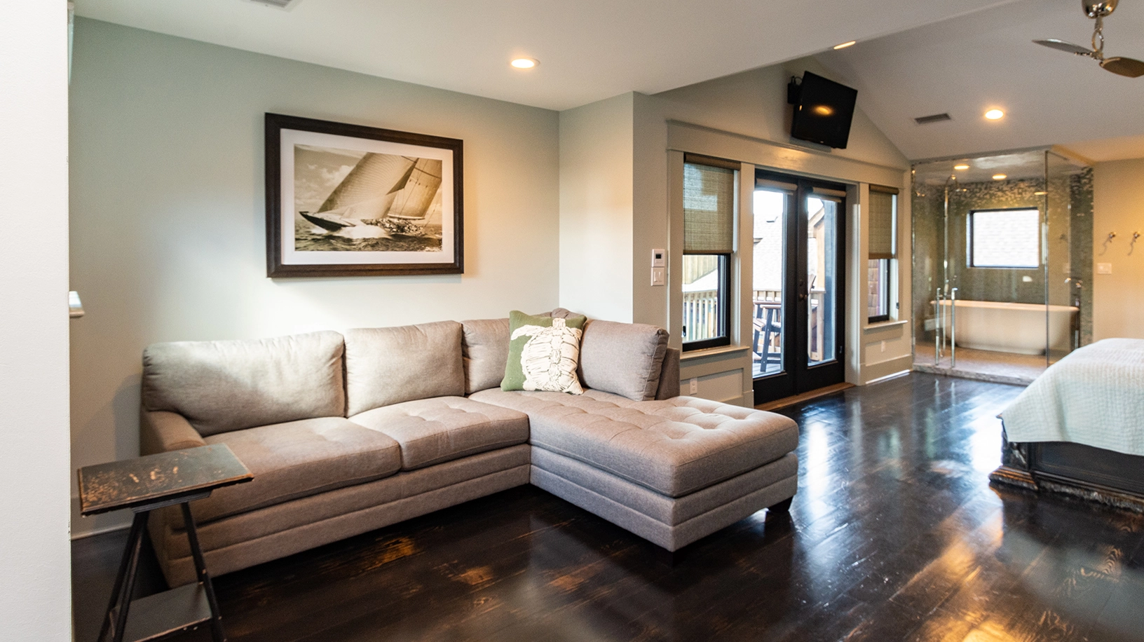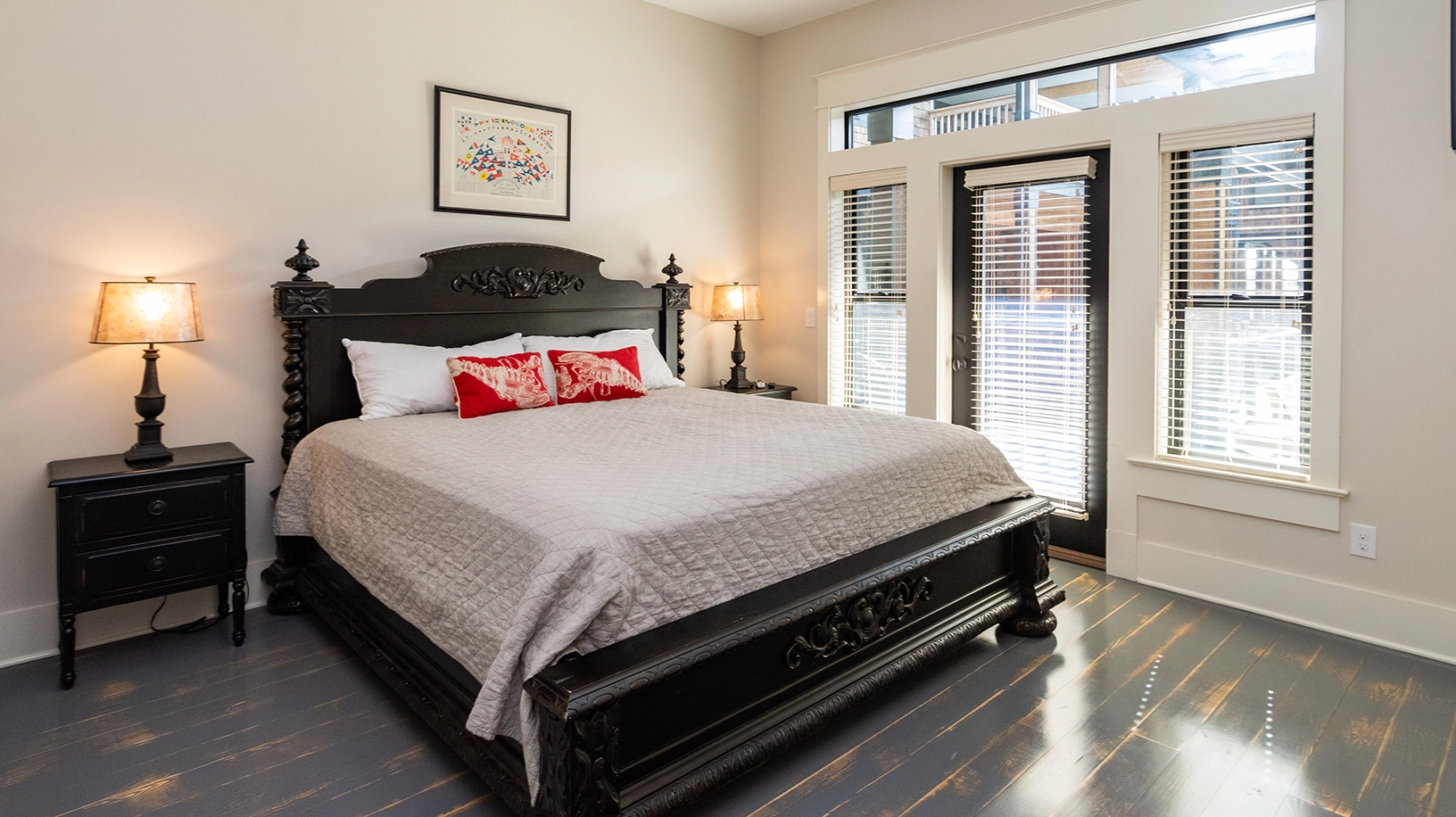 Private honeymoon grand MBR suite, which is the only bedroom in the main house, and has a balcony overlooking the pool complex.