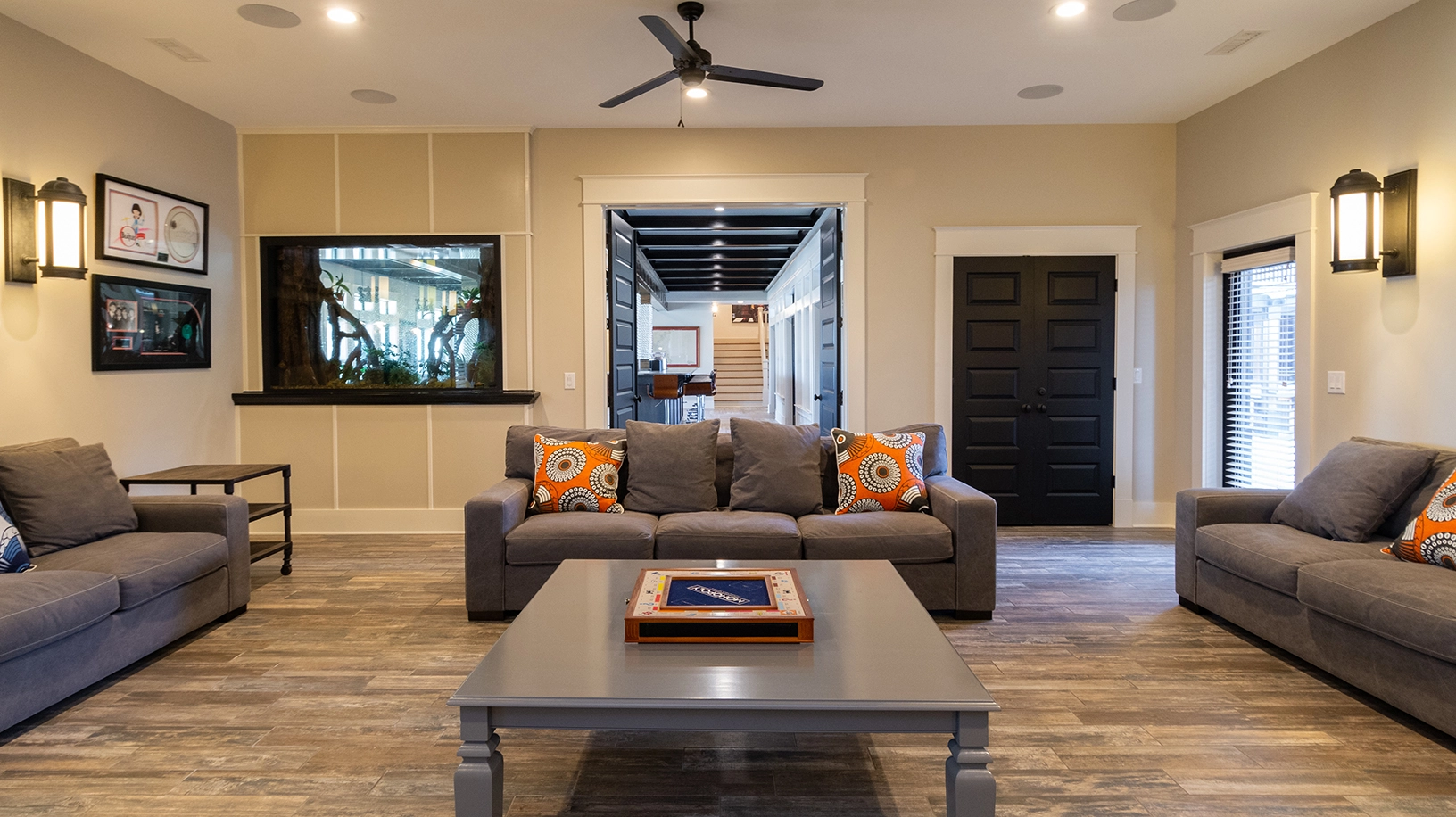 High-quality water filtration system, whole house air purifying system, elevator and dart board, Kegerator available (CO2 cartridges are provided), cornhole boards, homeowner provides starter toilet paper, soap, shampoo and conditioner for each bathroom.