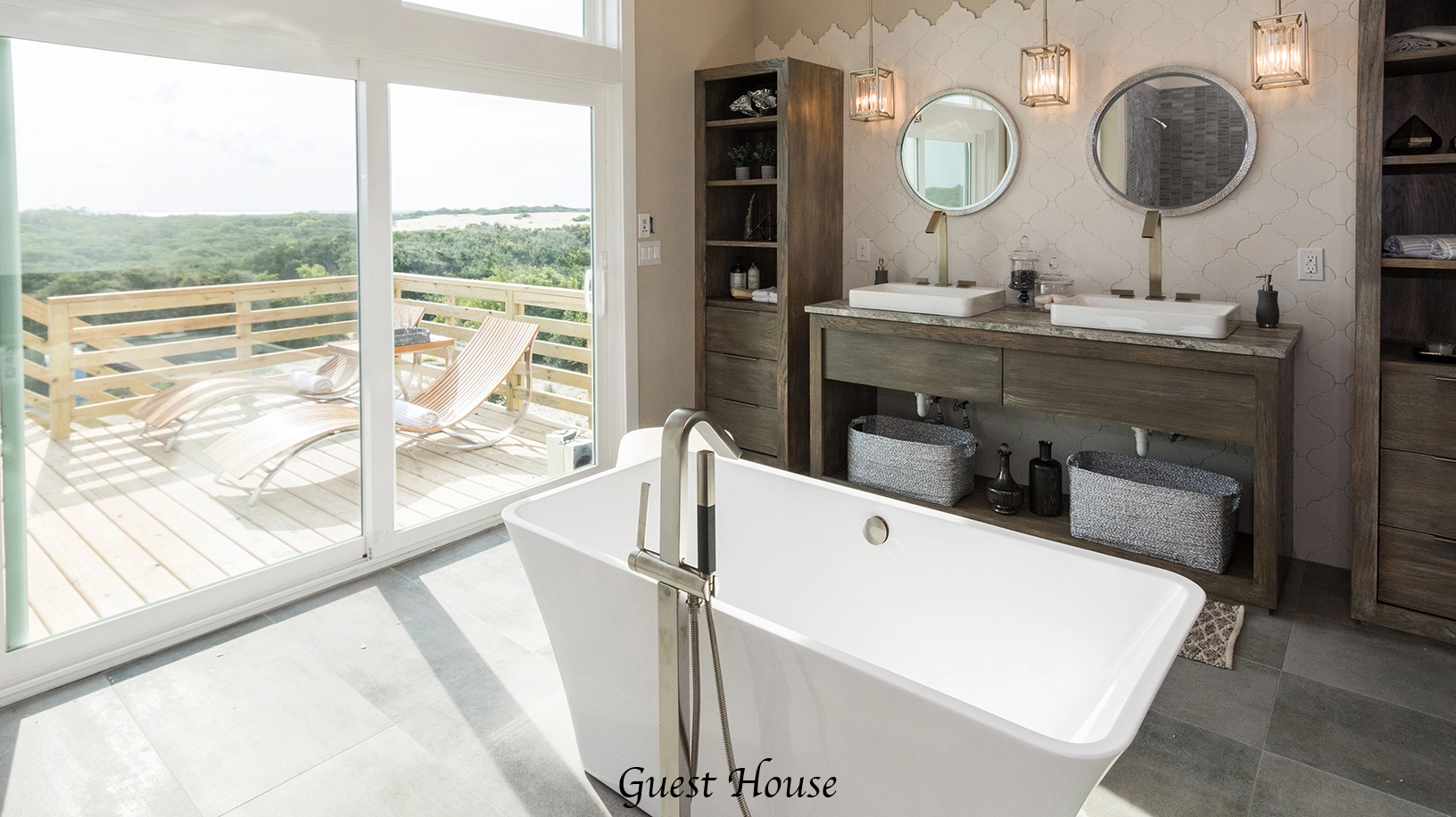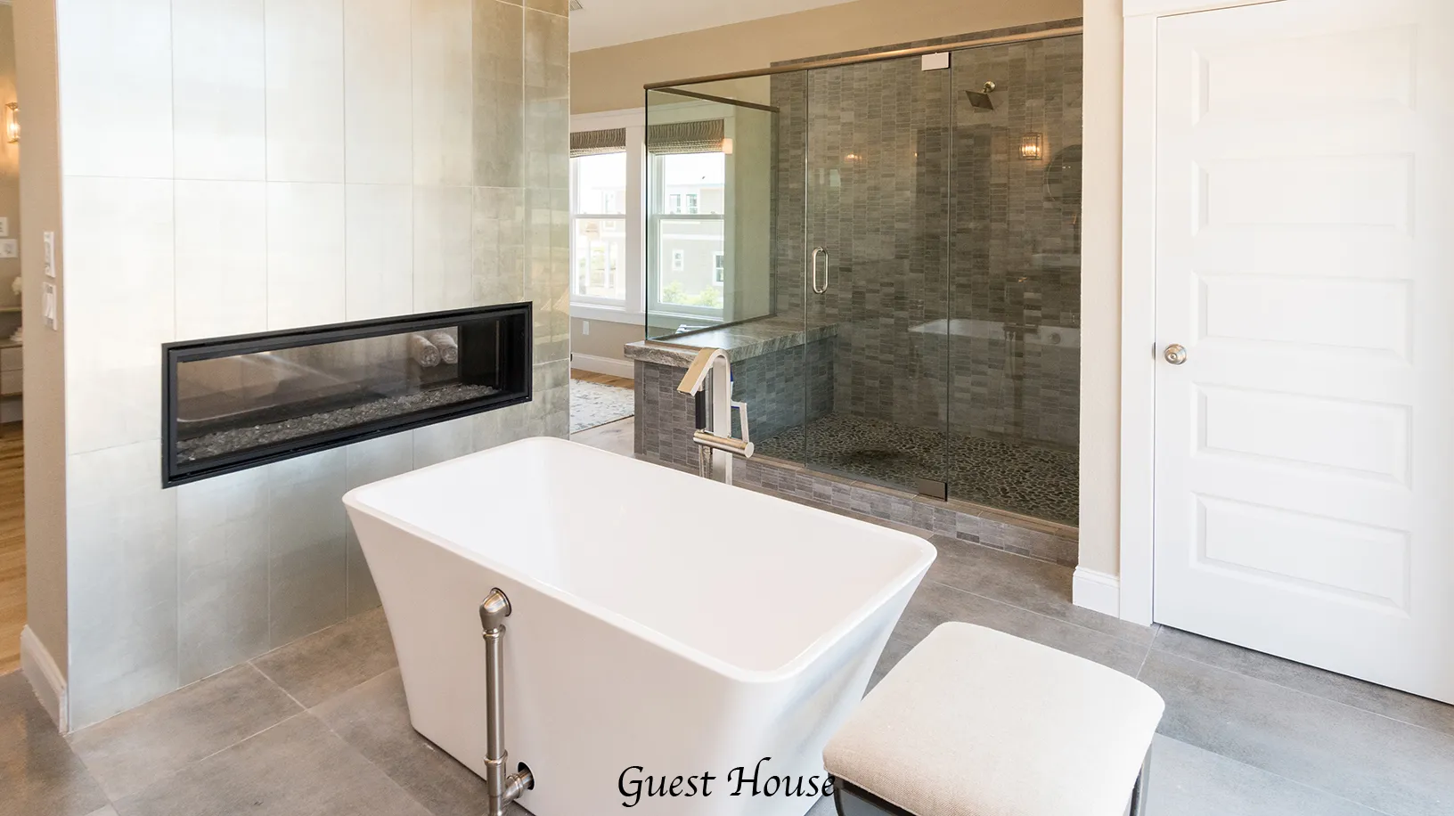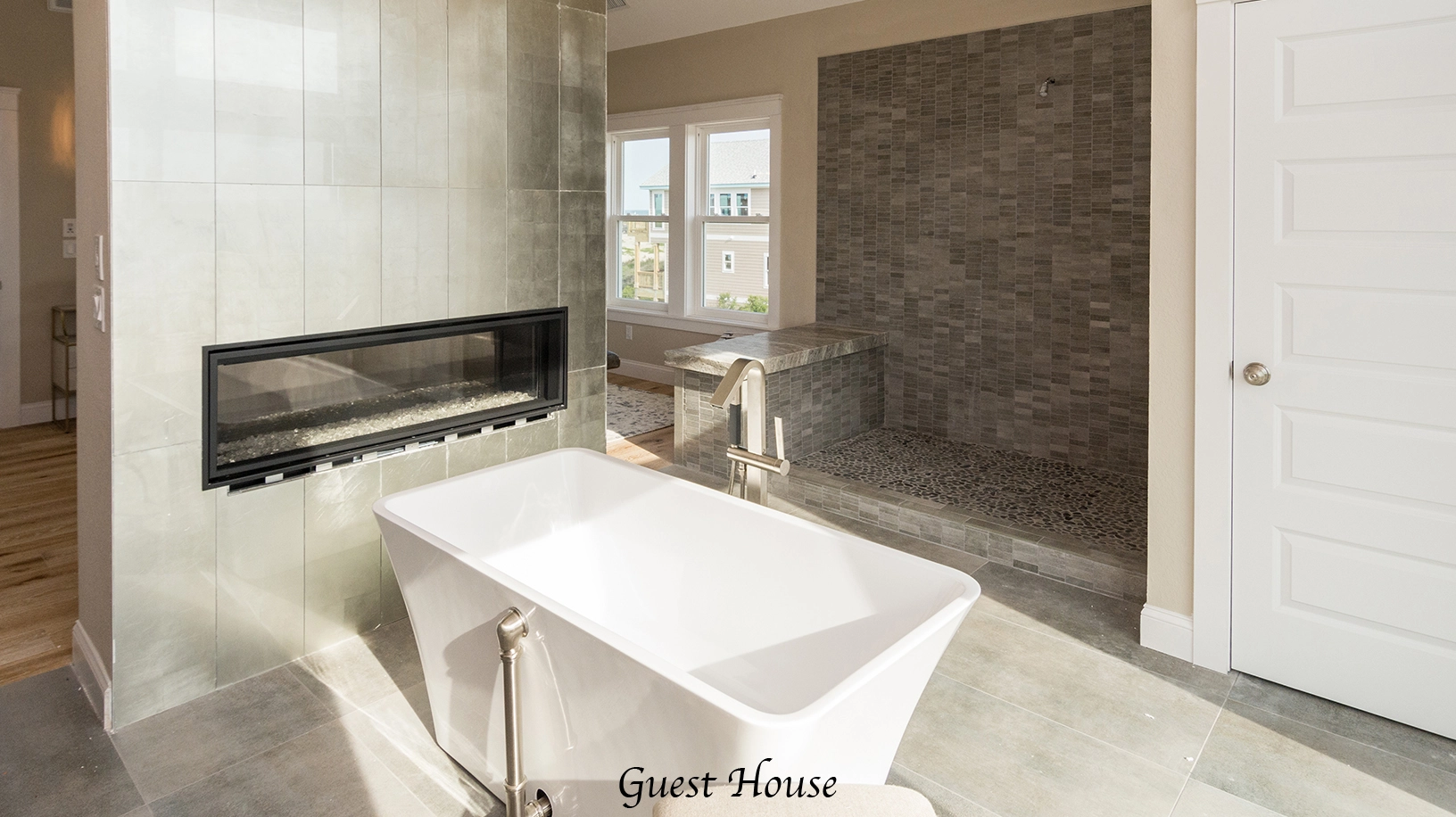 King, Standing shower, Soaking tub, Deck access, Gas Fireplace