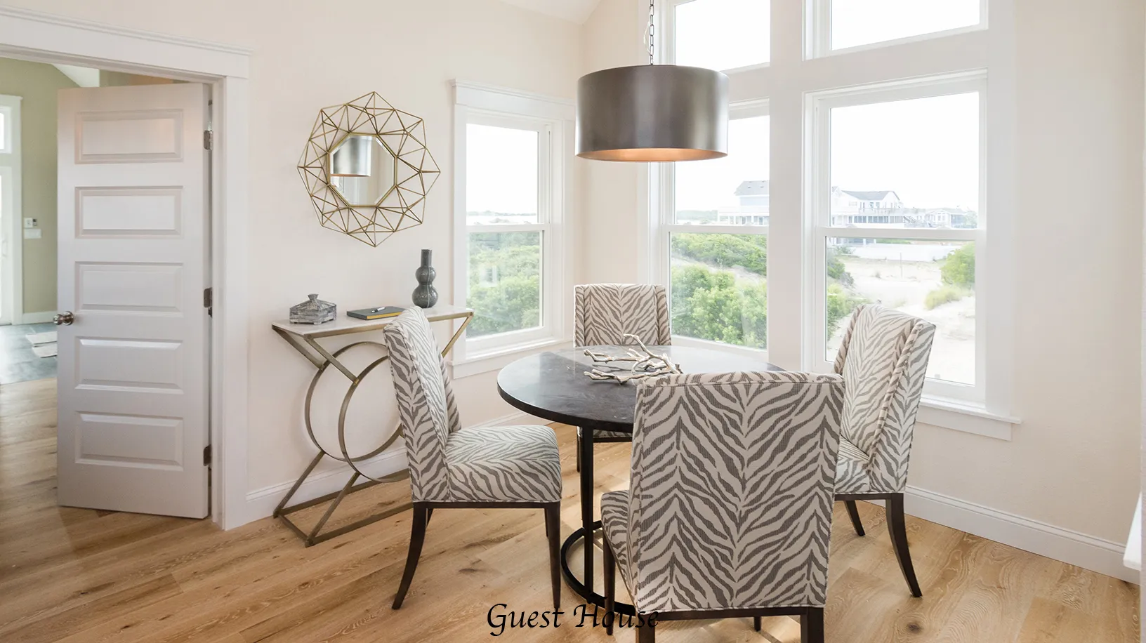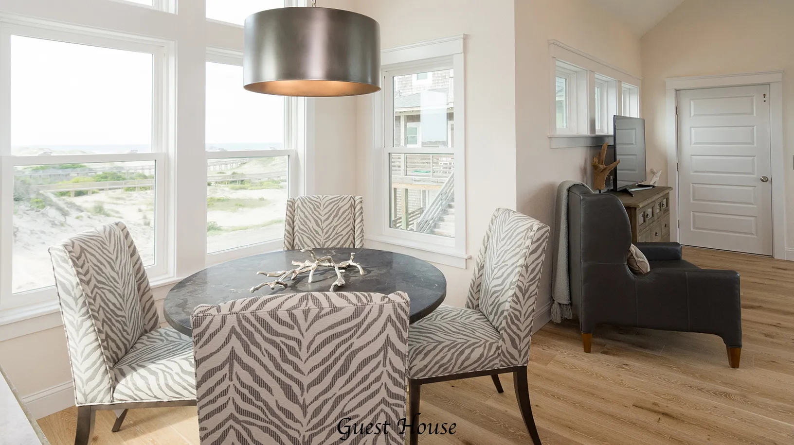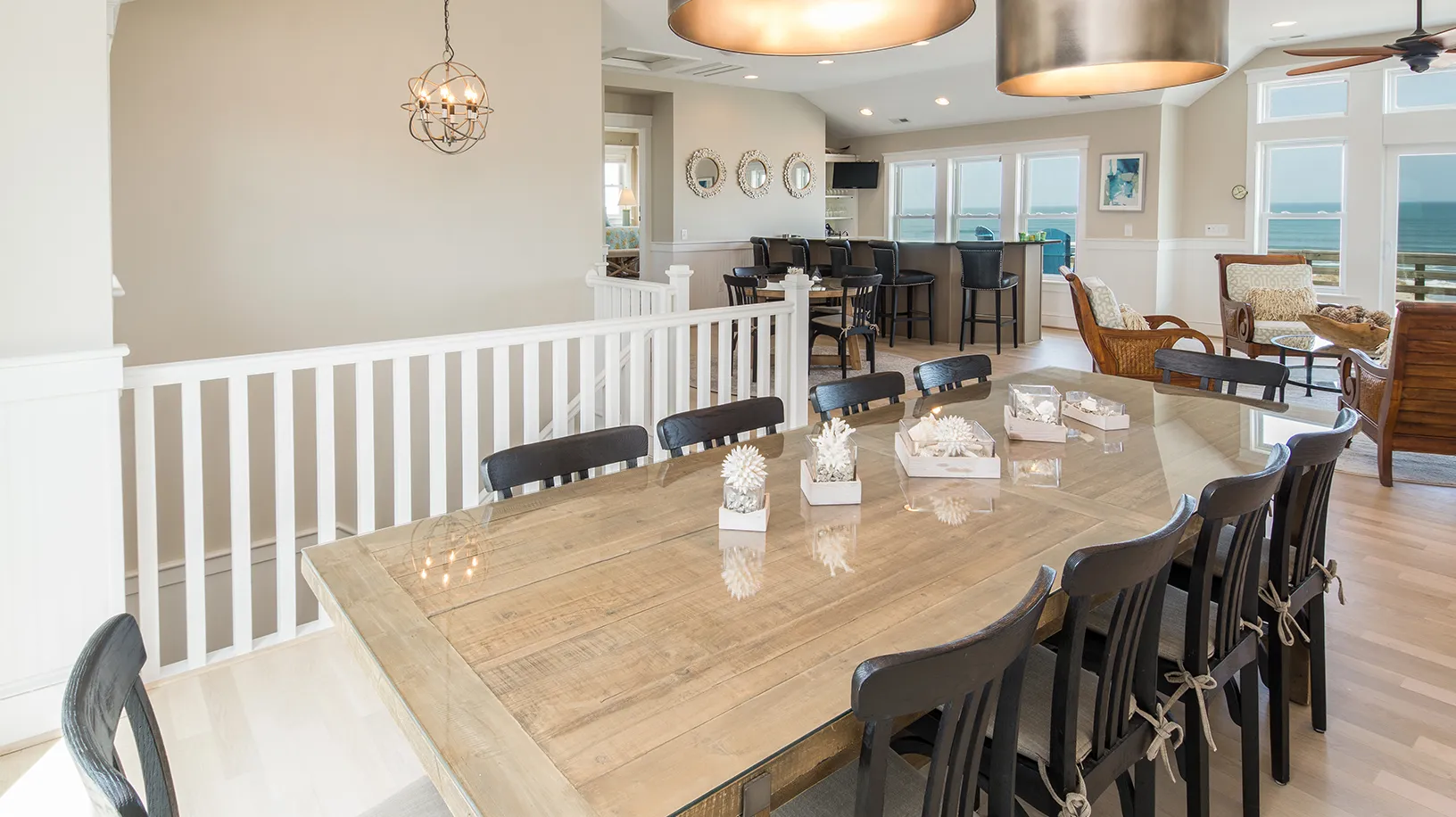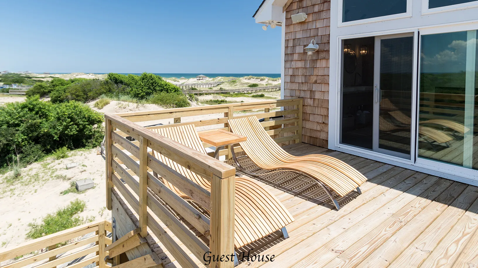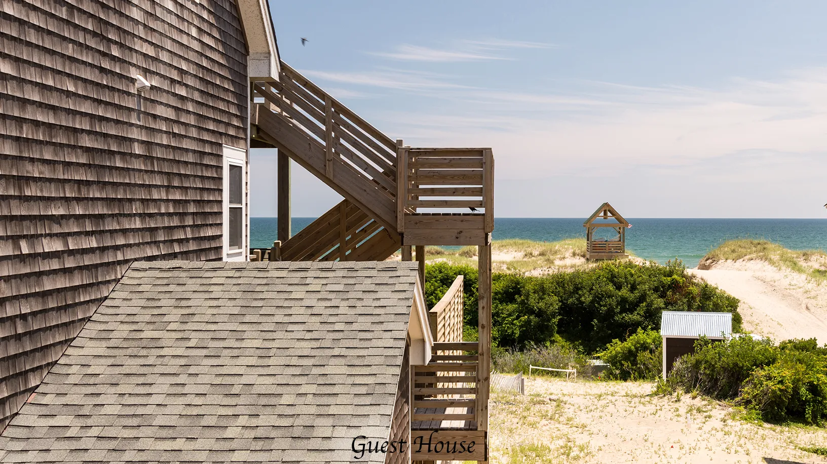 "Location was perfect! Enough Bedrooms to accommodate family and friends as each had their own private bathrooms except one. The kitchen was also perfect for few people prepping and cooking same time. But the best was part was 2 refrigerators in kitchen, 2 diswashers as also double ovens. But the overall best part was the views of the sound and the ocean from inside the home! The surprise of the horses that came to visit was what made our vacation one of the best we ever had at the OBX! As said by our family who also said the same thing. My favorite part was the guest house! As getting to have our little space my husband and I appreciated the (hide away) of the quiet and relaxing and so beautiful guest house!!"