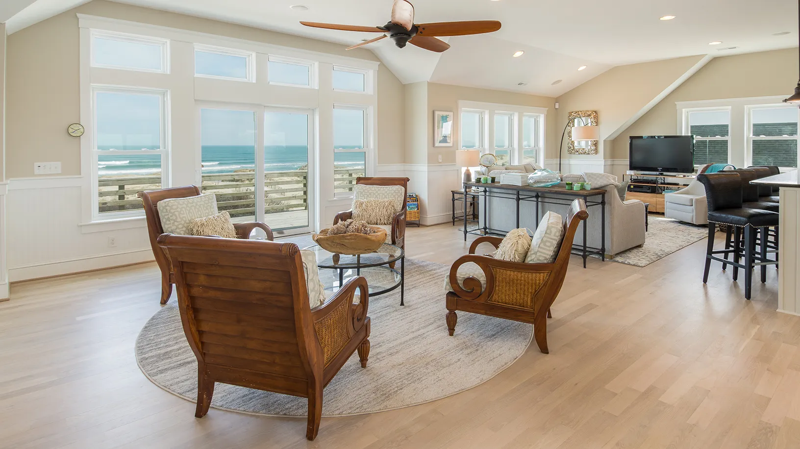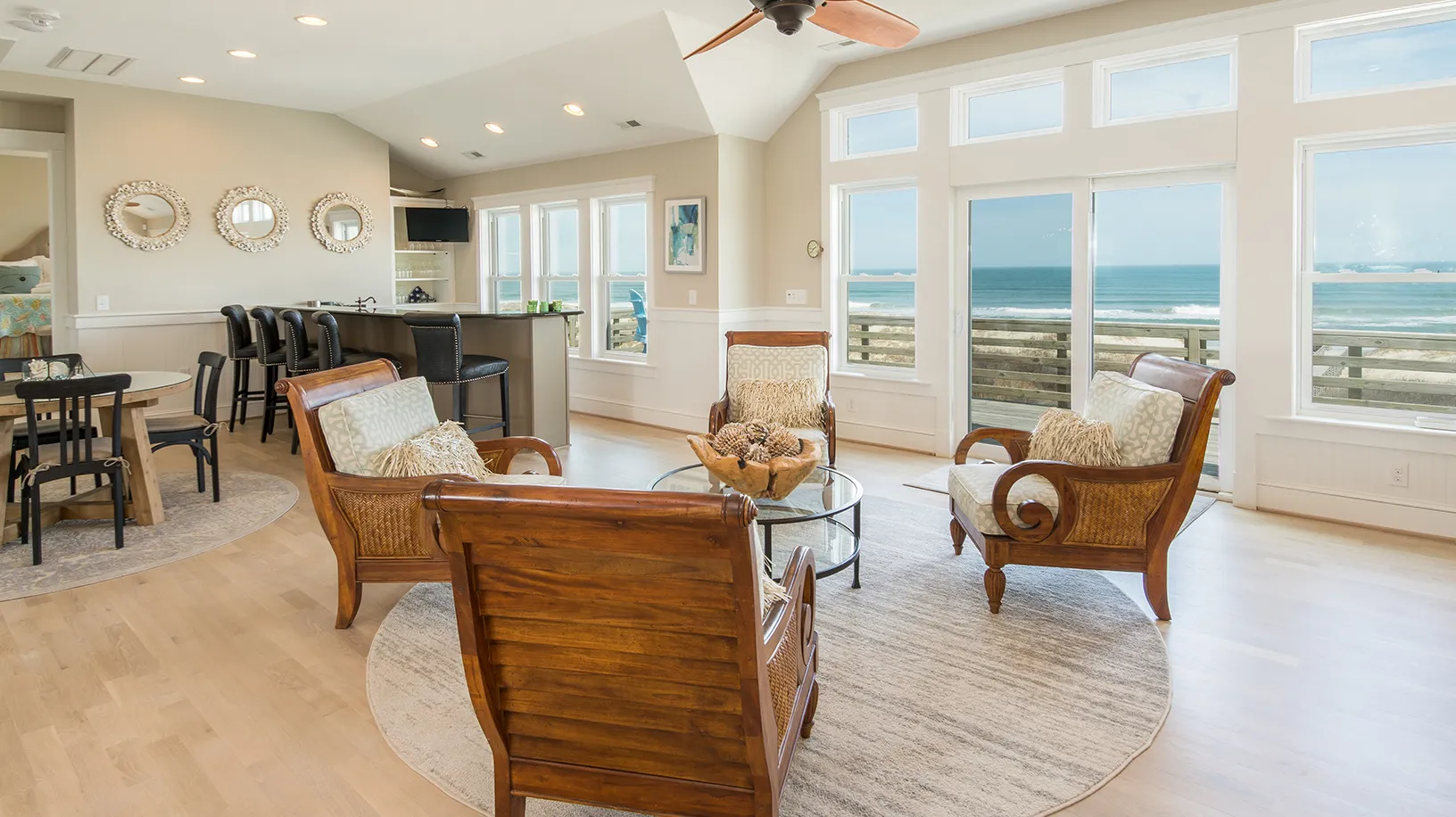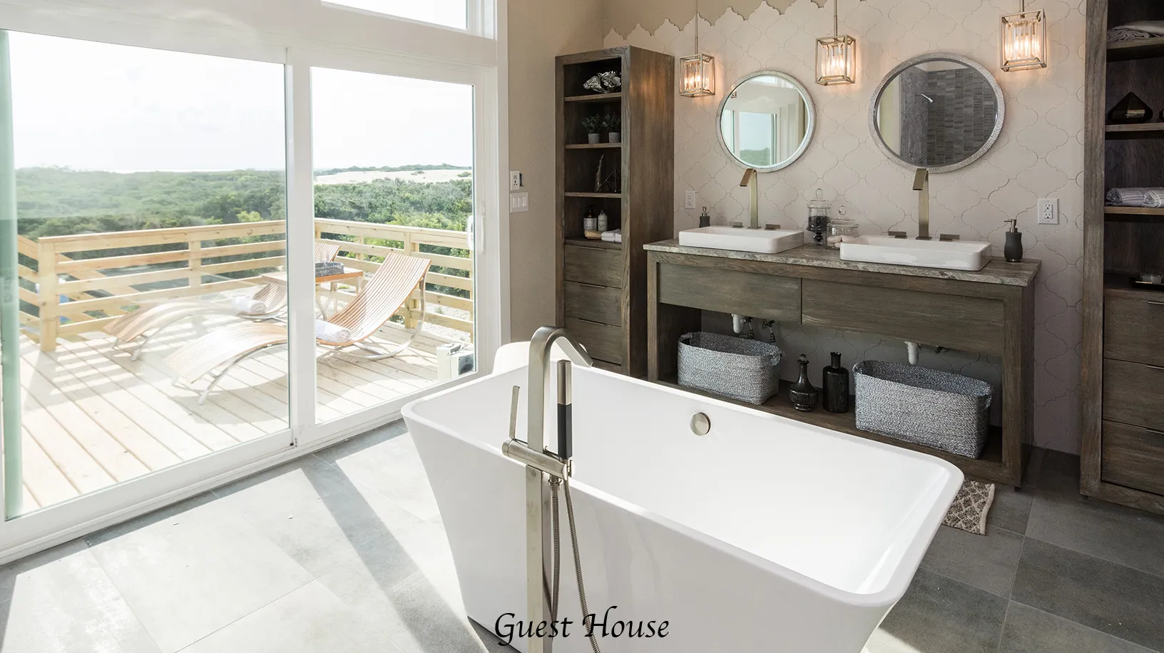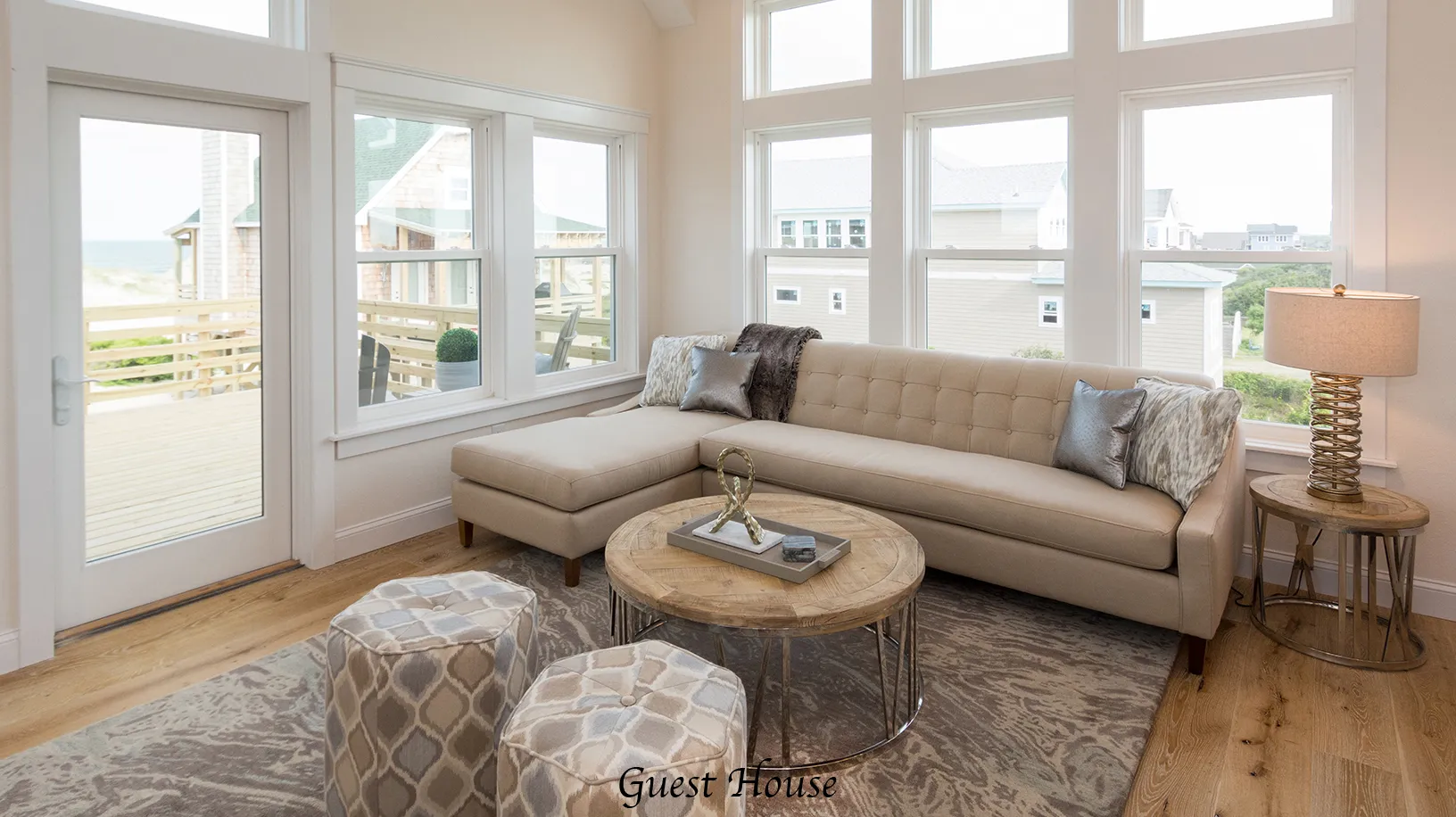 "Location was perfect! Enough Bedrooms to accommodate family and friends as each had their own private bathrooms except one. The kitchen was also perfect for few people prepping and cooking same time. But the best was part was 2 refrigerators in kitchen, 2 diswashers as also double ovens. But the overall best part was the views of the sound and the ocean from inside the home! The surprise of the horses that came to visit was what made our vacation one of the best we ever had at the OBX! As said by our family who also said the same thing. My favorite part was the guest house! As getting to have our little space my husband and I appreciated the (hide away) of the quiet and relaxing and so beautiful guest house!!"