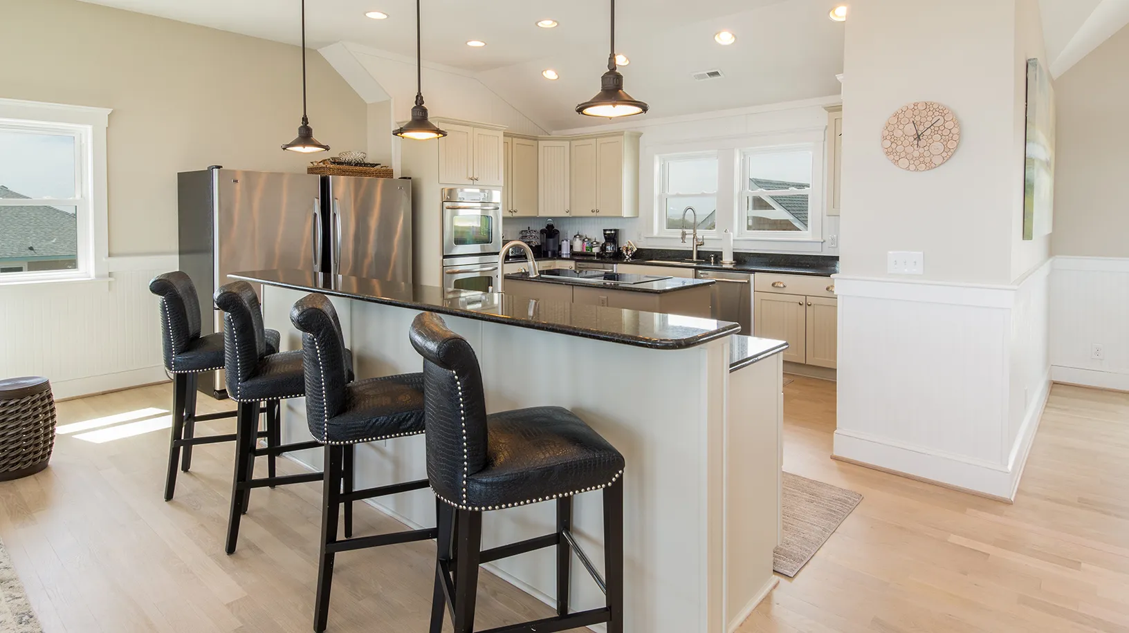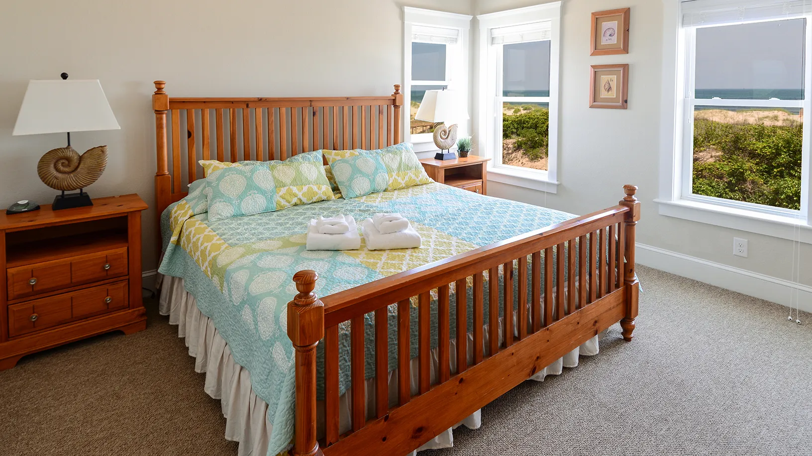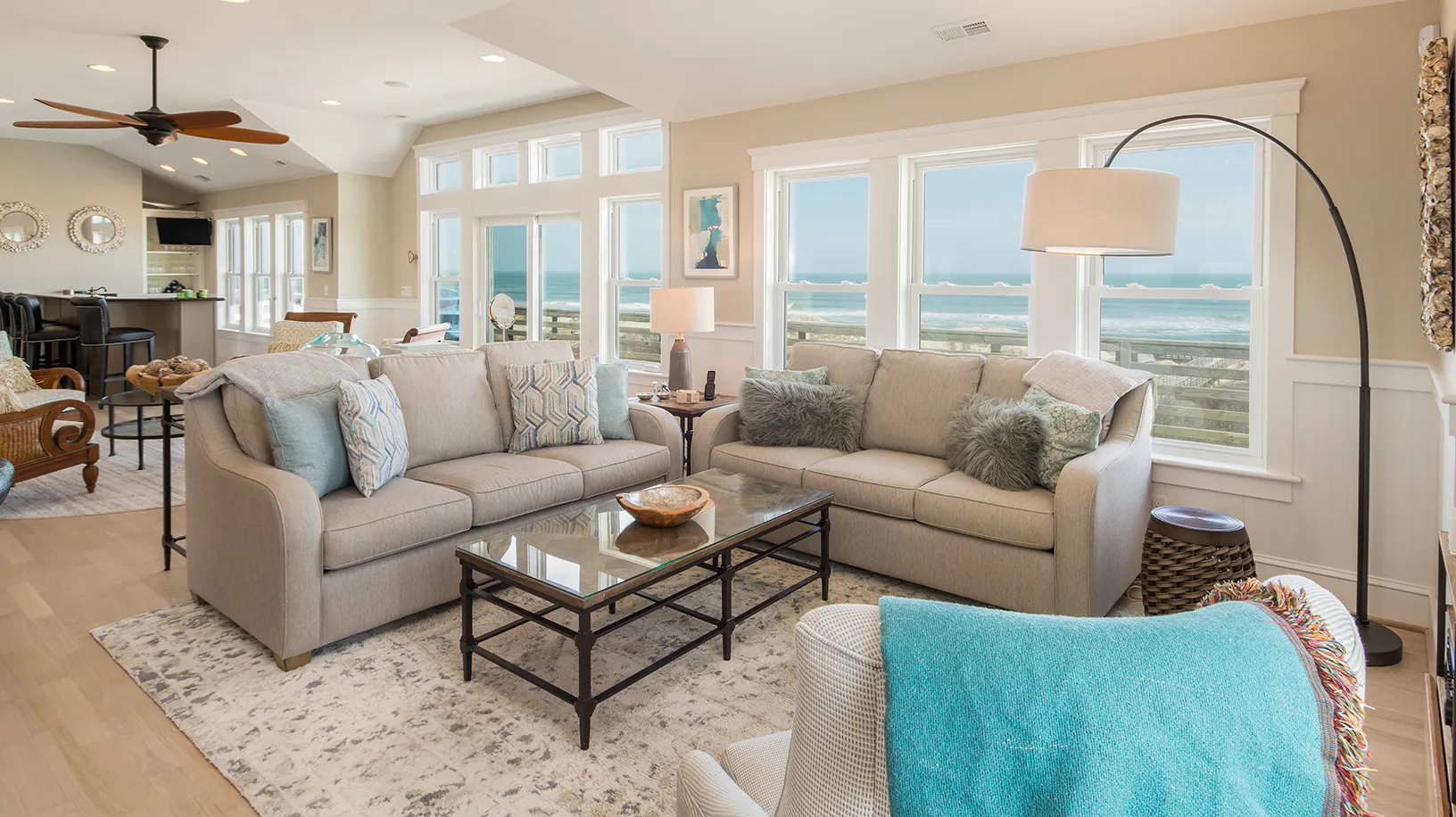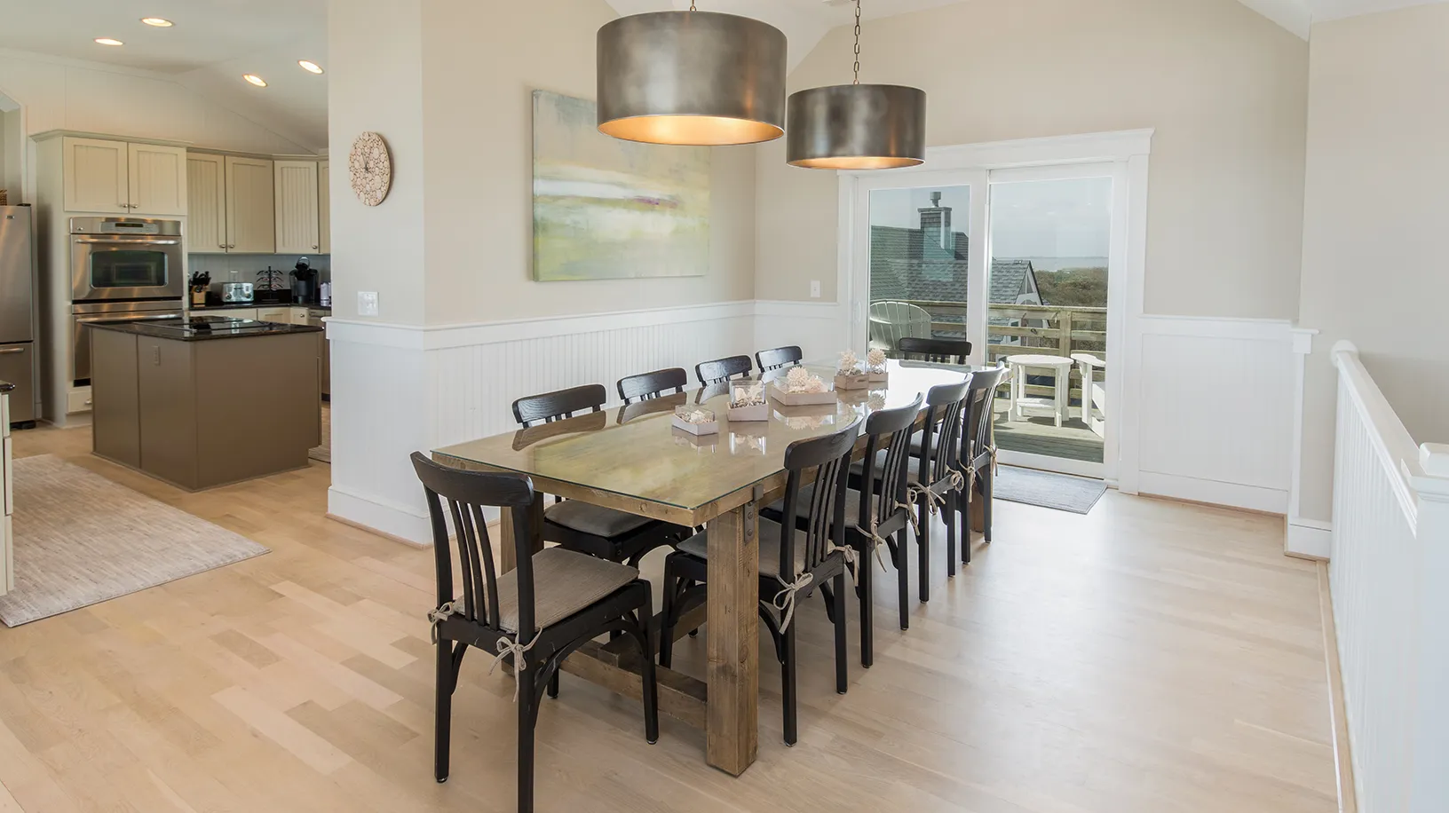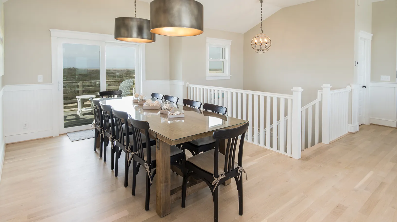 "Location was perfect! Enough Bedrooms to accommodate family and friends as each had their own private bathrooms except one. The kitchen was also perfect for few people prepping and cooking same time. But the best was part was 2 refrigerators in kitchen, 2 diswashers as also double ovens. But the overall best part was the views of the sound and the ocean from inside the home! The surprise of the horses that came to visit was what made our vacation one of the best we ever had at the OBX! As said by our family who also said the same thing. My favorite part was the guest house! As getting to have our little space my husband and I appreciated the (hide away) of the quiet and relaxing and so beautiful guest house!!"
