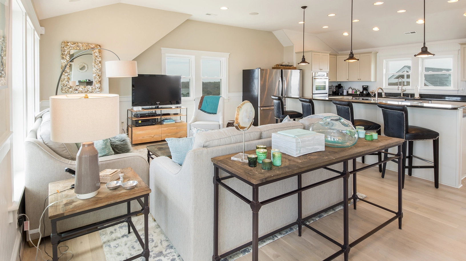 Great room; kitchen; dining area.