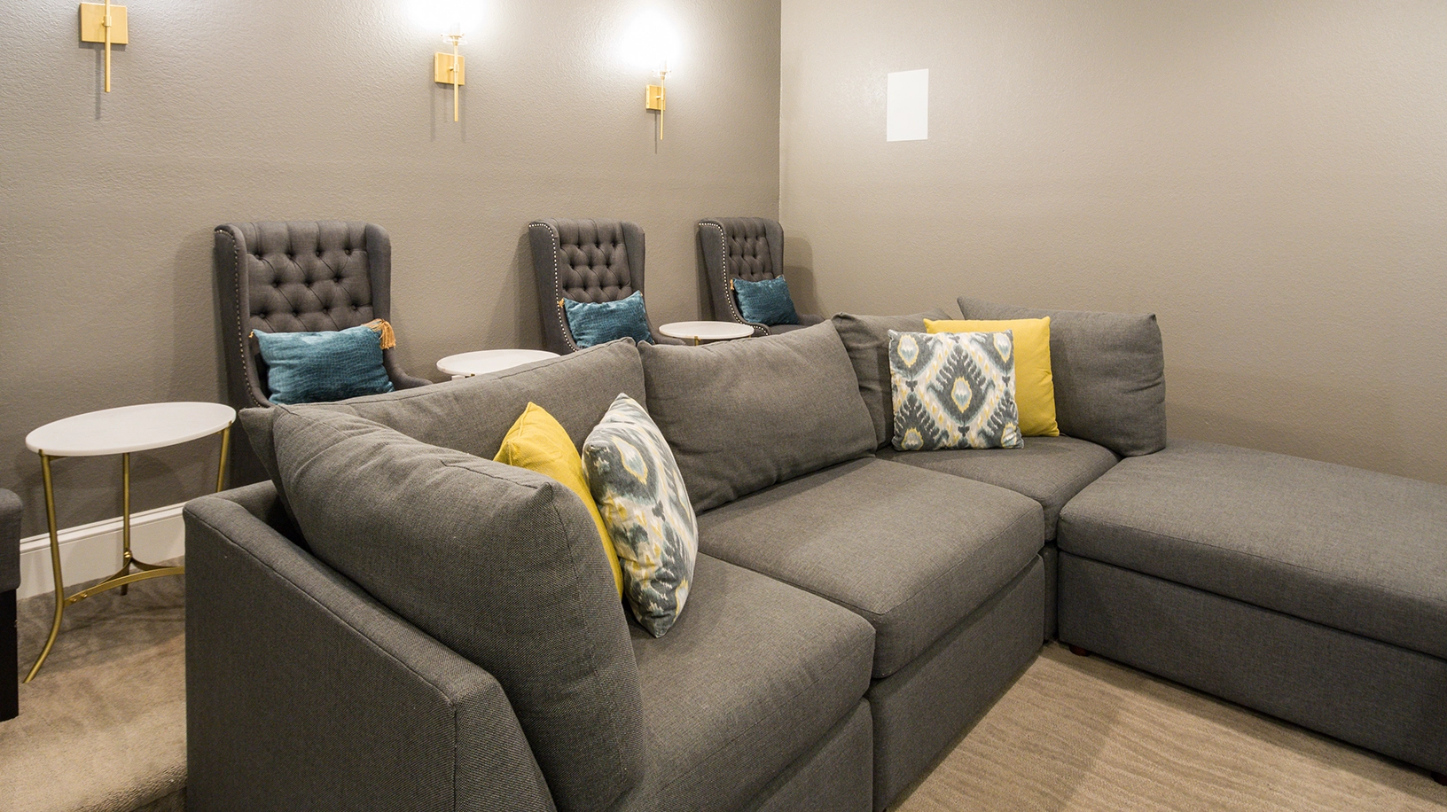 Rec room with wet bar; theater room.