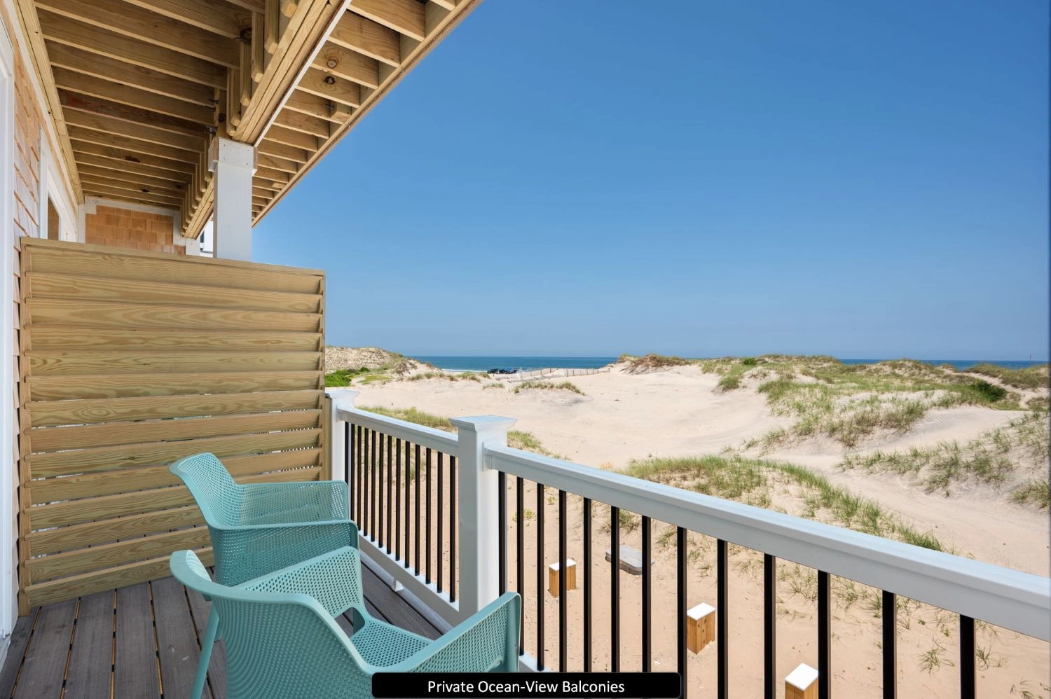 King, Private indoor and outdoor standing showers, Private balcony with ocean and sound views